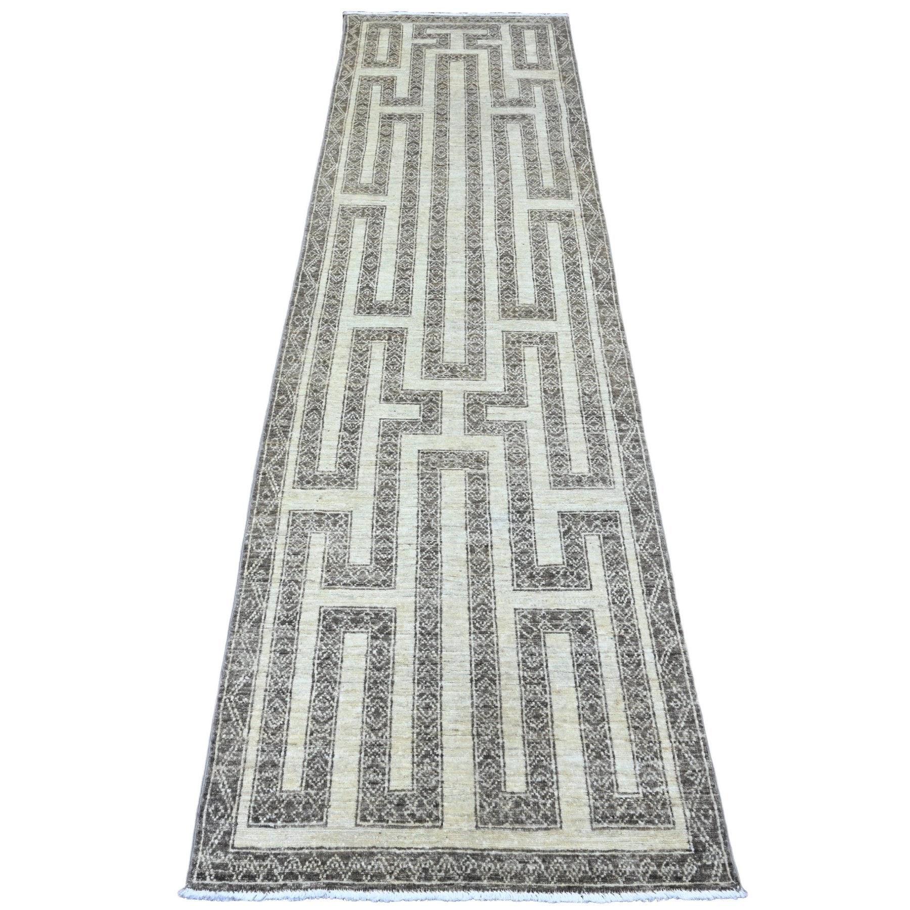 2'7"x9'5" Cedar Brown, Moroccan Berber Influence With Maze Design, Geometric Pattern, Denser Weave, High Mountain Wool, Hand Knotted, Runner, Oriental Rug FWR125640