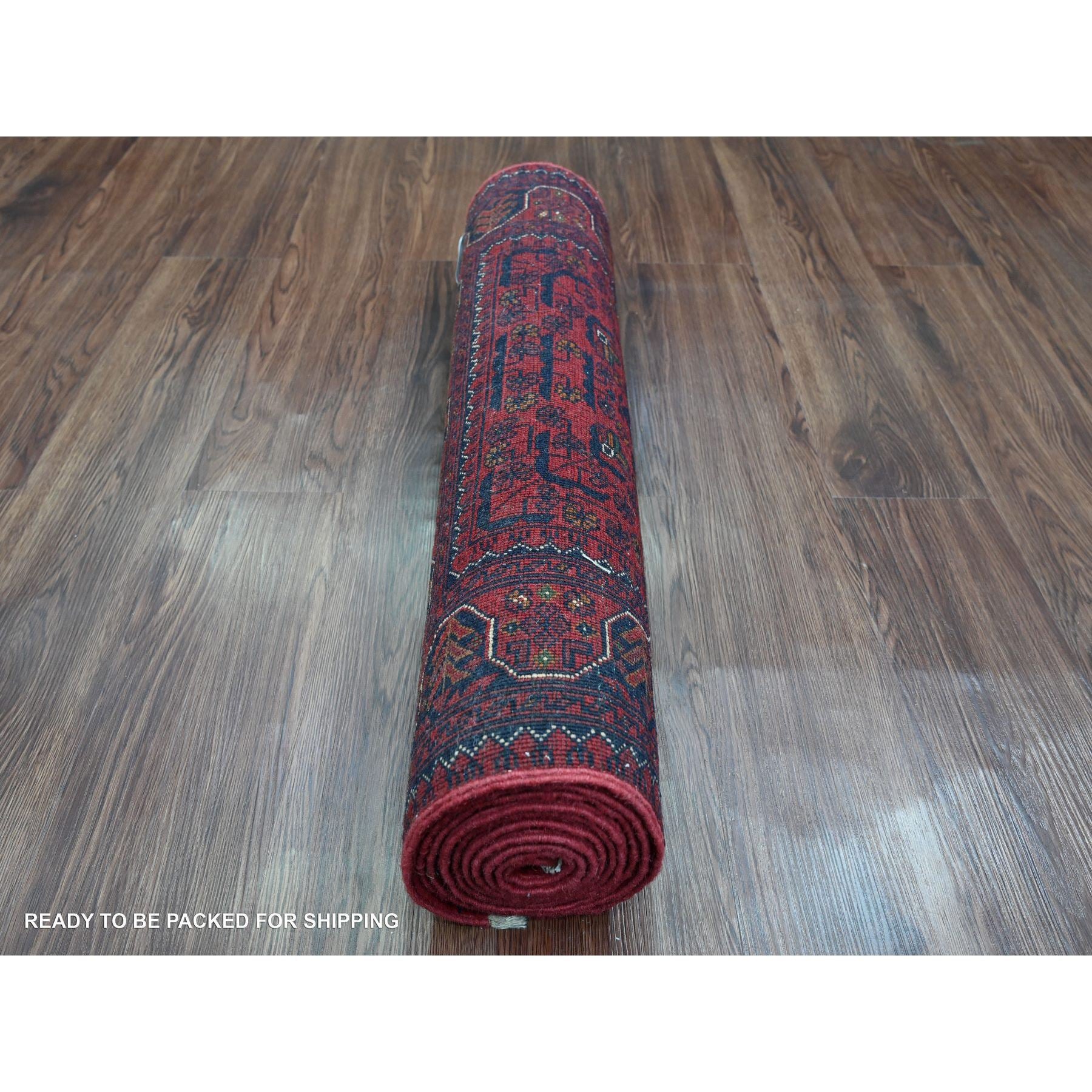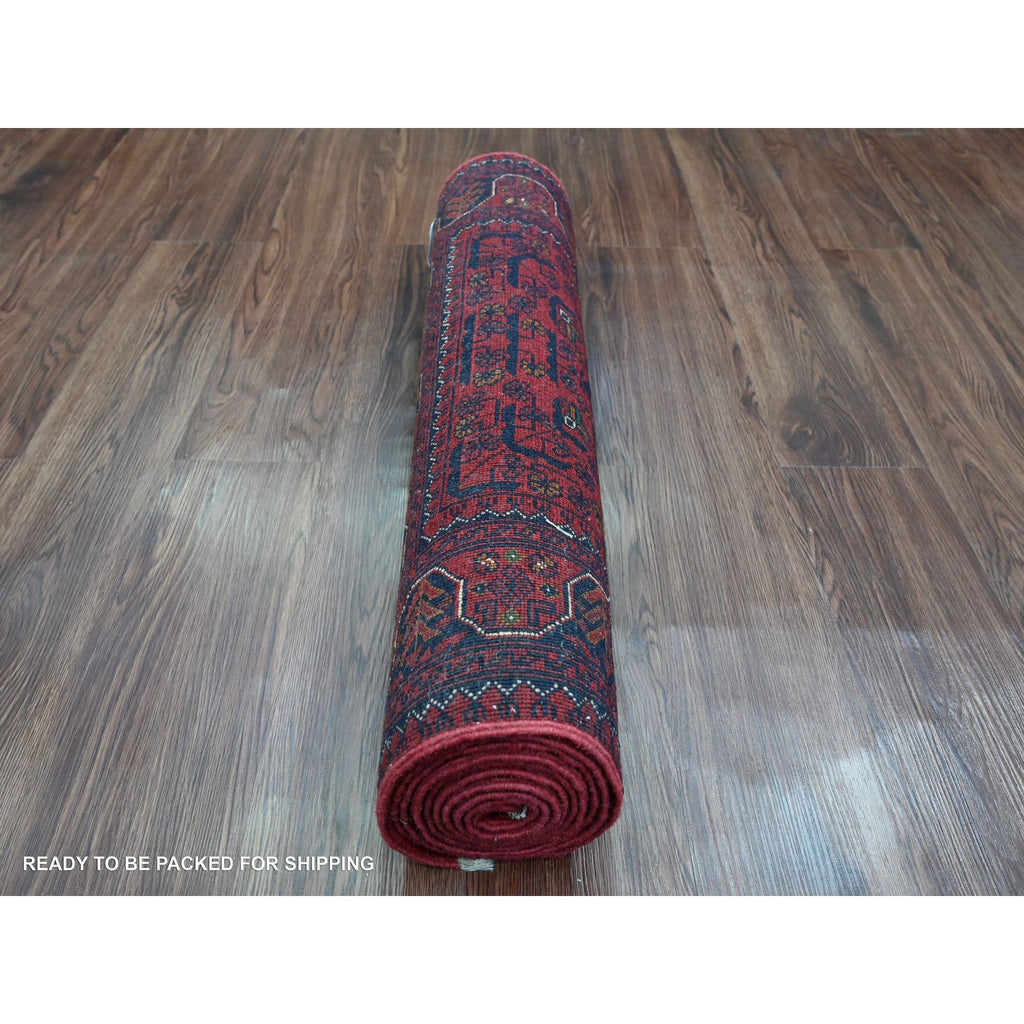 2'7"x9'5" Rich Red, Afghan Khamyab With Geometric Pattern, Soft Wool, Hand Knotted, Runner, Oriental Rug FWR120150