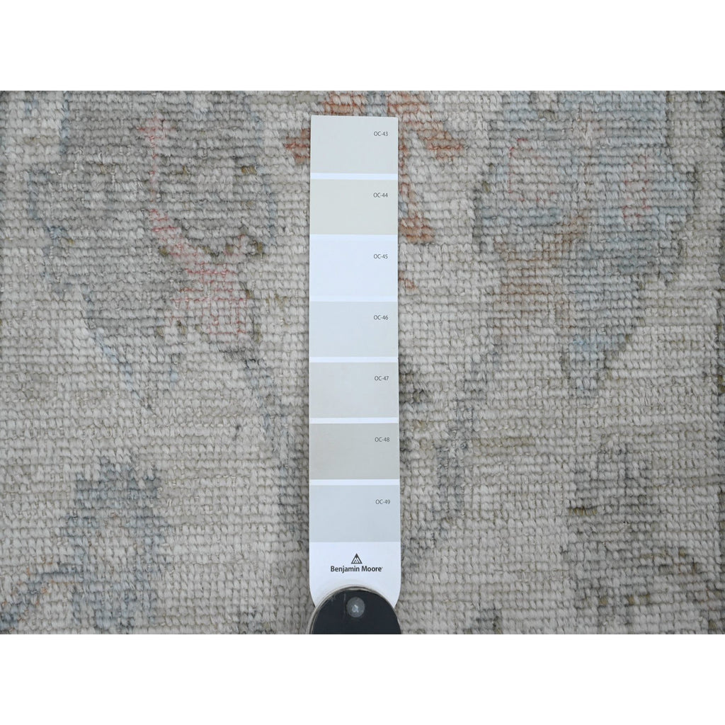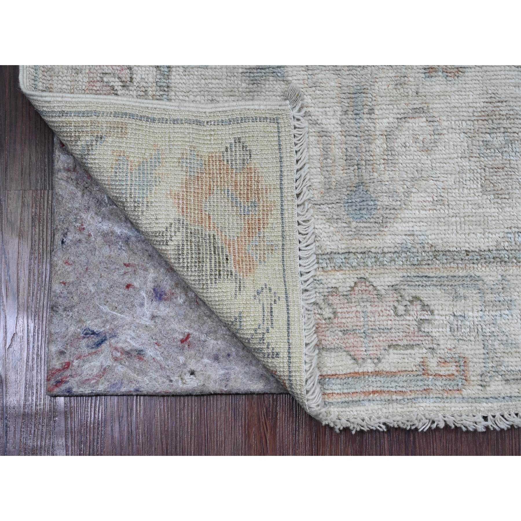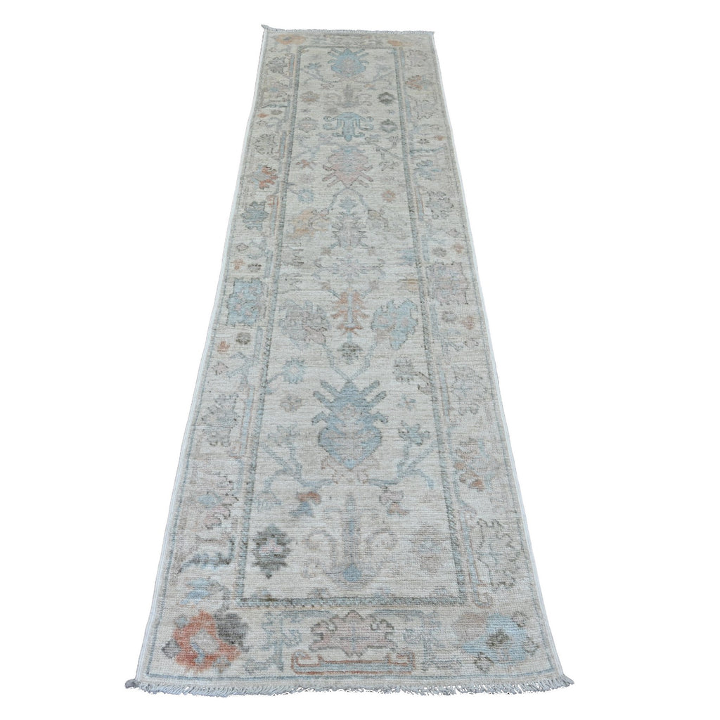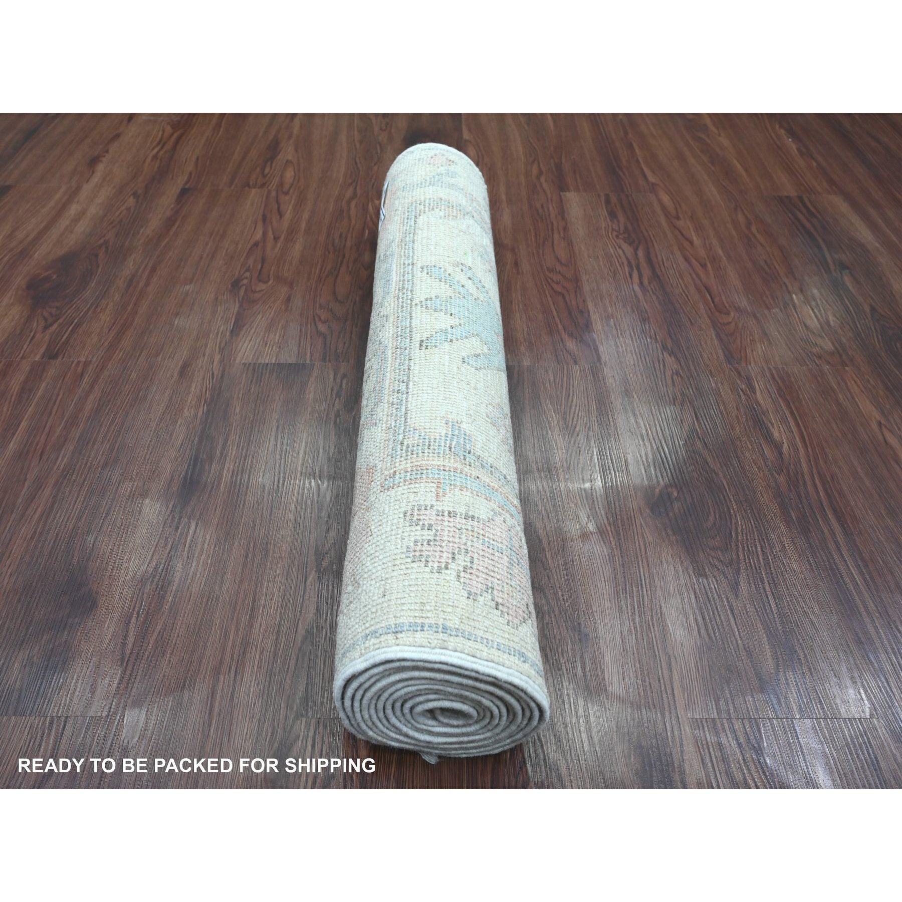 2'7"x9'6" Pearl White, Afghan Angora Oushak With All Over Pattern, Hand Knotted, Veggie Dyes, 100% Wool, Runner, Oriental Rug FWR124878
