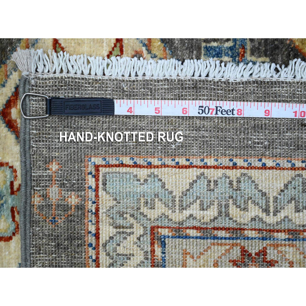 2'7"x9'6" Zombie Gray, Vegetable Dyes, Fine Aryana With Animal And Human Figurines, Shiny Wool, Hand Knotted, Runner Oriental Rug FWR537624