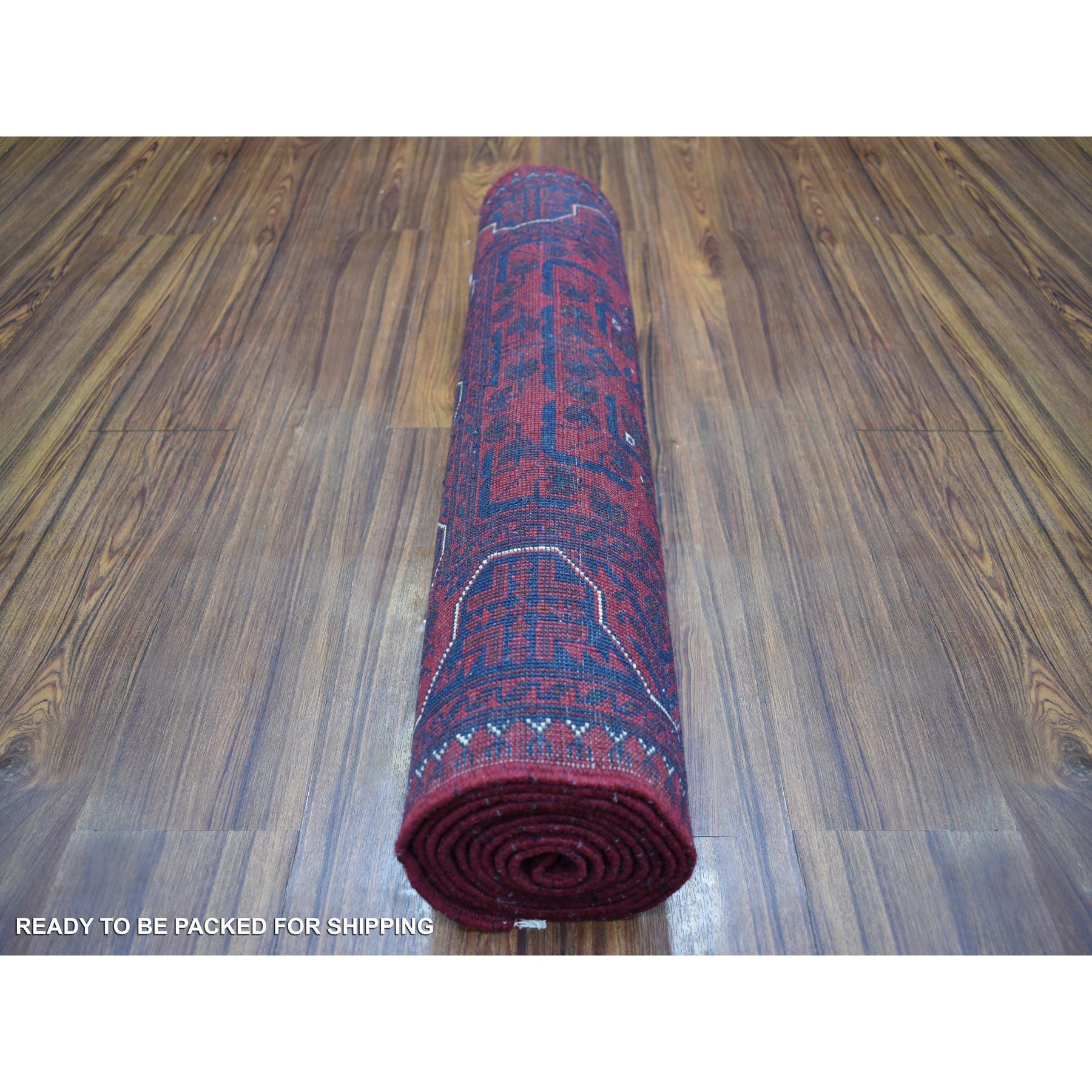 2'7"x9'7" Deep And Saturated Red, Hand Knotted Afghan Khamyab With Geometric Design, Velvety Wool, Runner Oriental Rug FWR428238