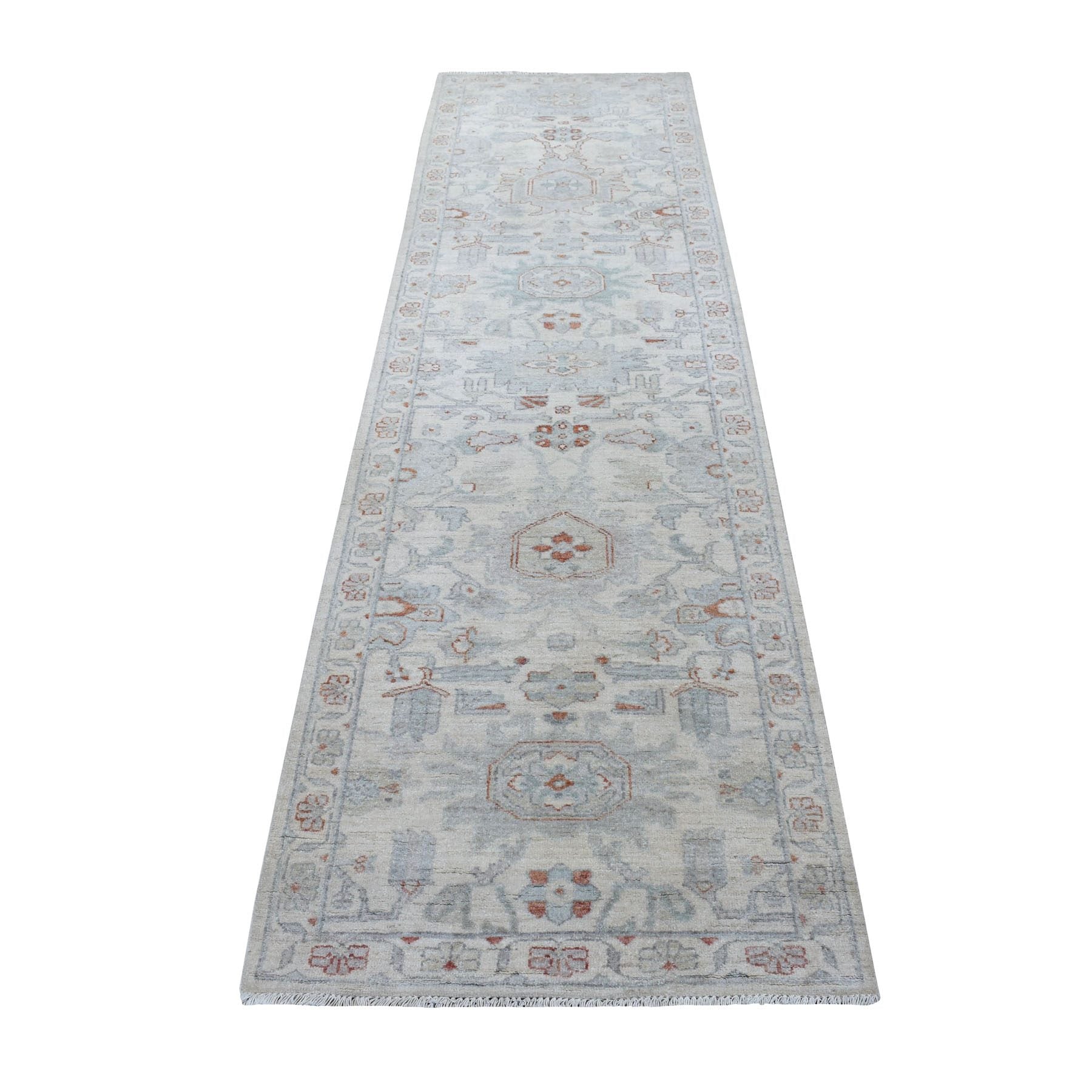 2'7"x9'7" Ivory Washed Out Peshawar Organic Wool Hand Knotted Runner Oriental Rug FWR330156