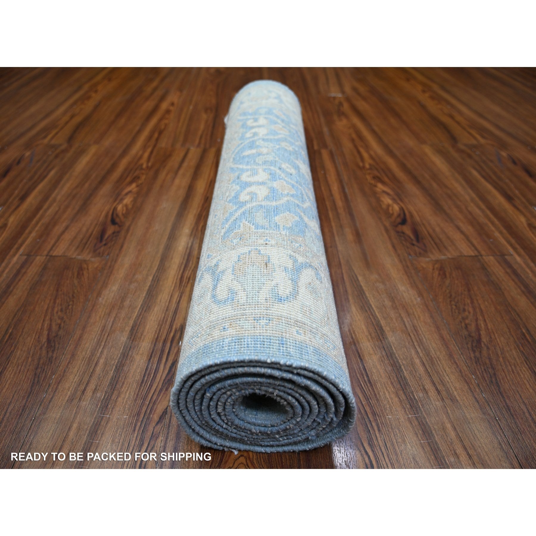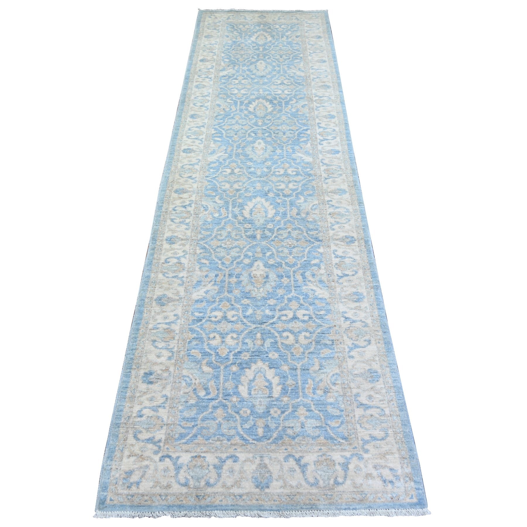 2'7"x9'8" Beau Blue, Natural Dyes Finer Peshawar With Soft Colors, 100% Wool Hand Knotted, Runner Oriental Rug FWR442128