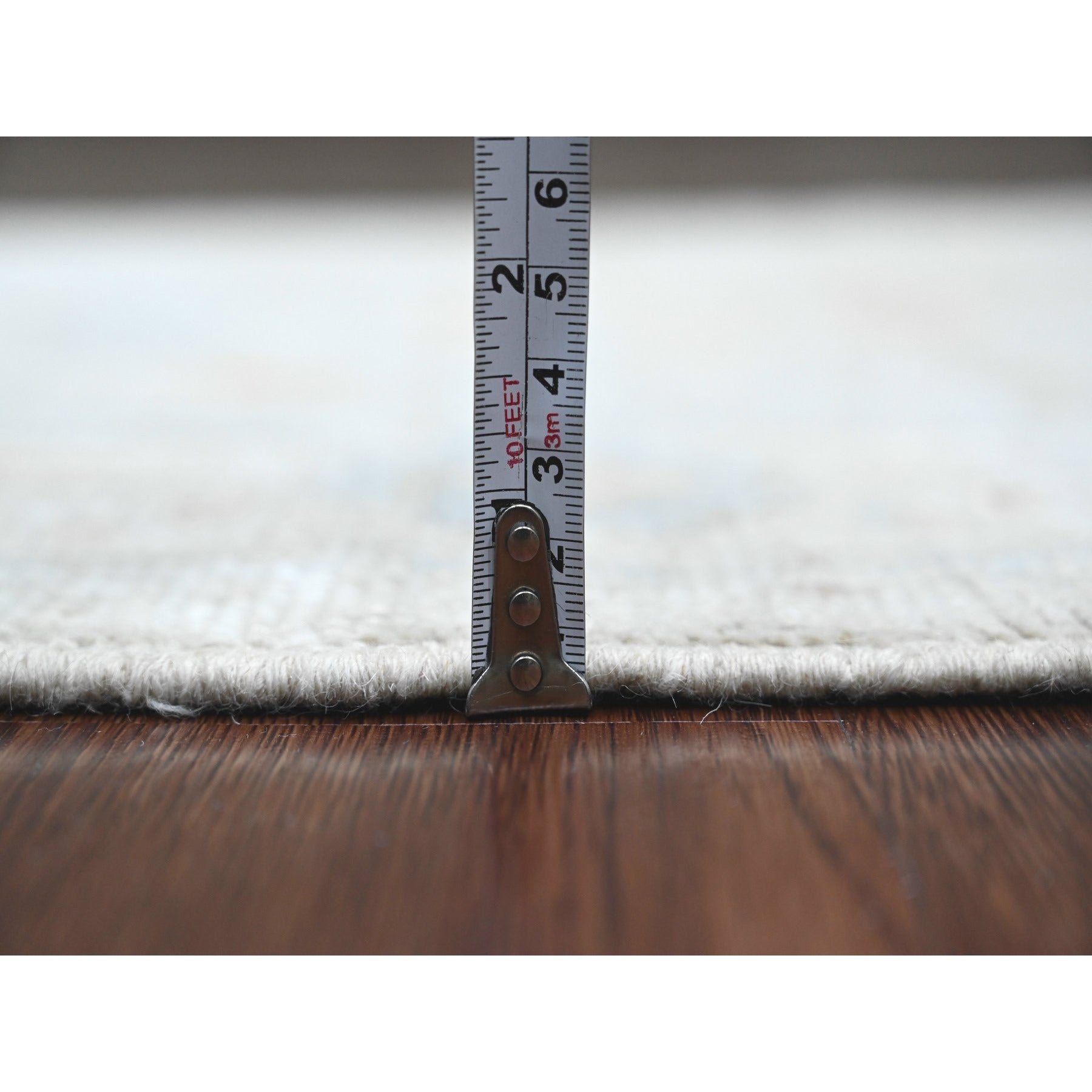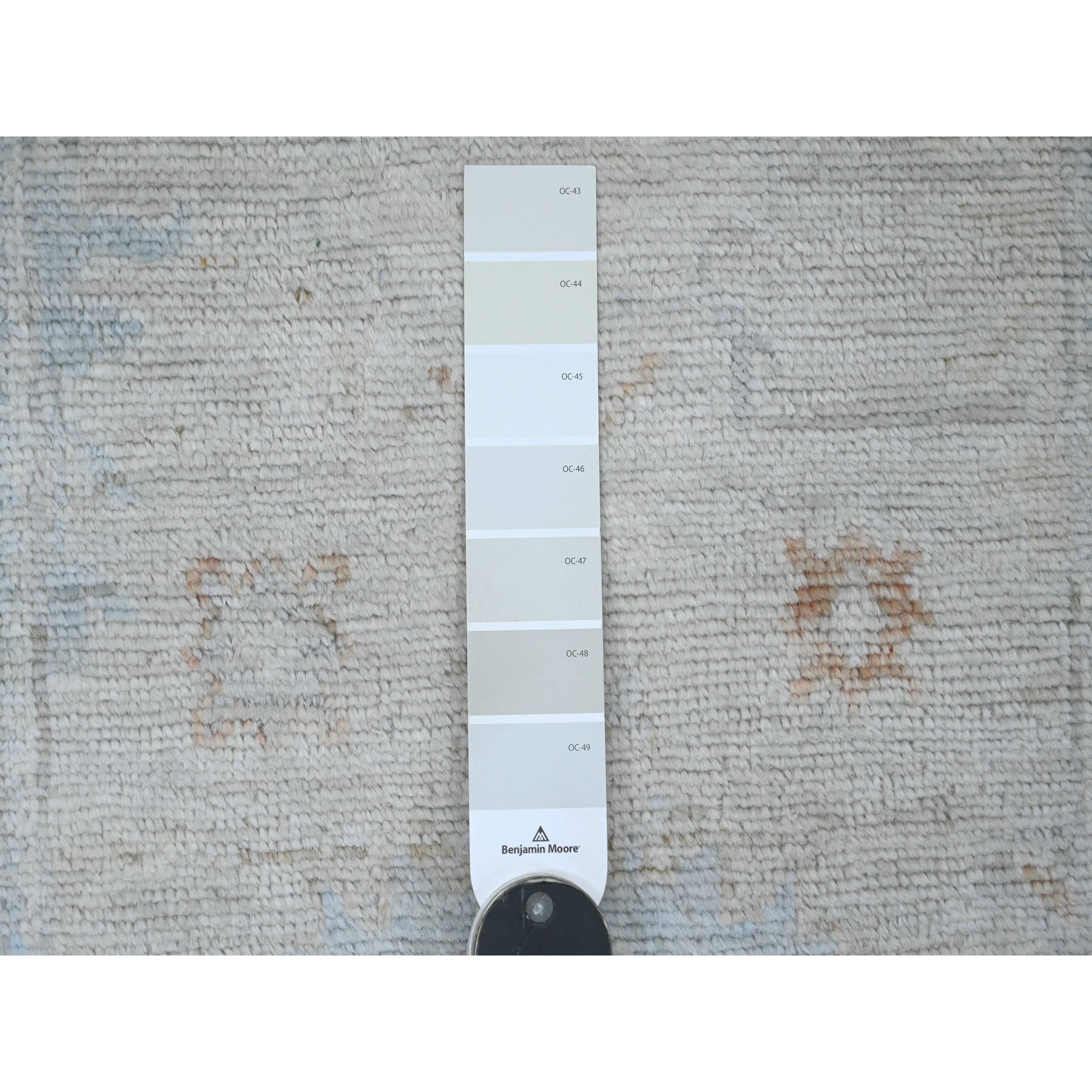 2'7"x9'8" Snow White, Hand Knotted, Afghan Angora Oushak With Floral Pattern, Veggie Dyes, 100% Wool, Runner, Oriental Rug FWR124758