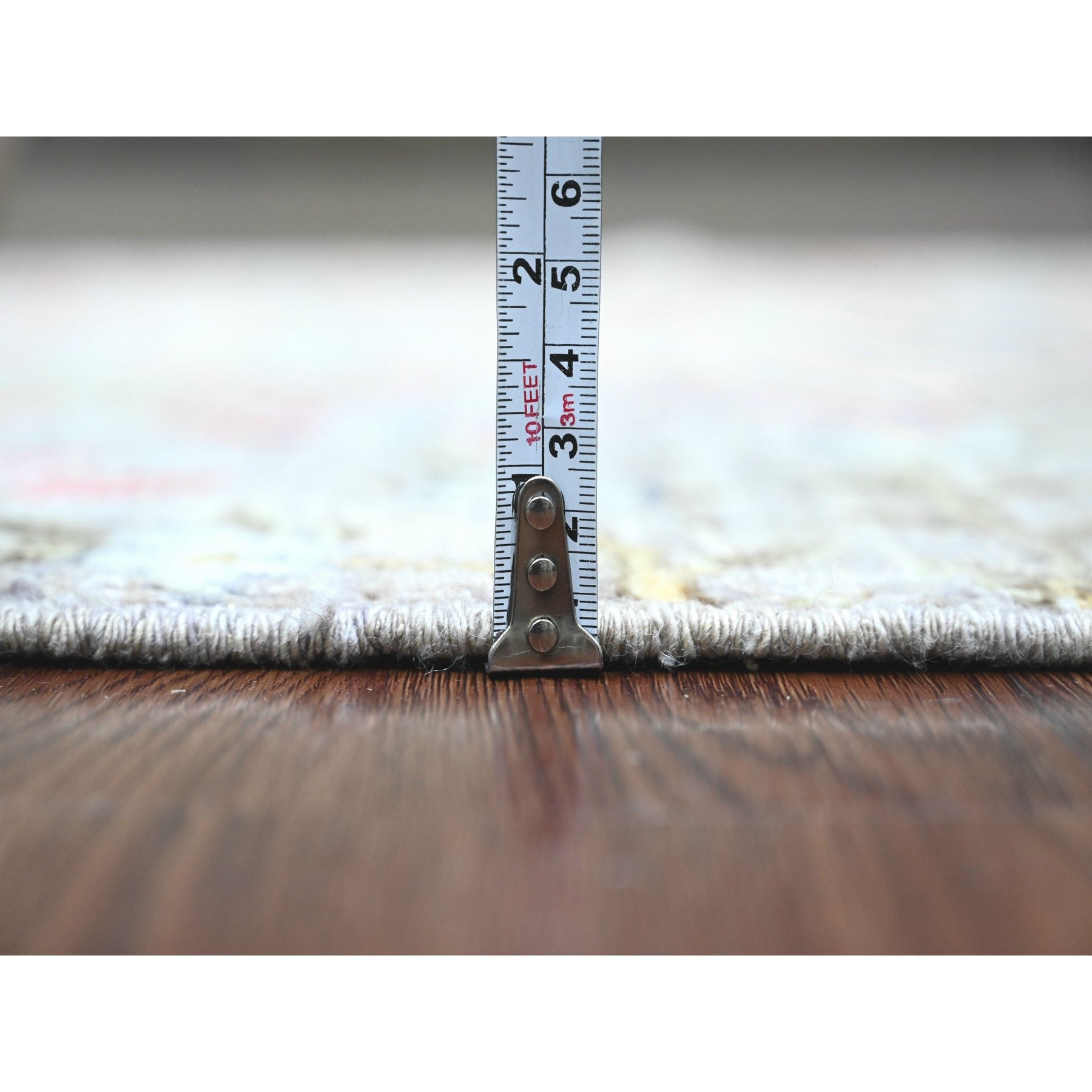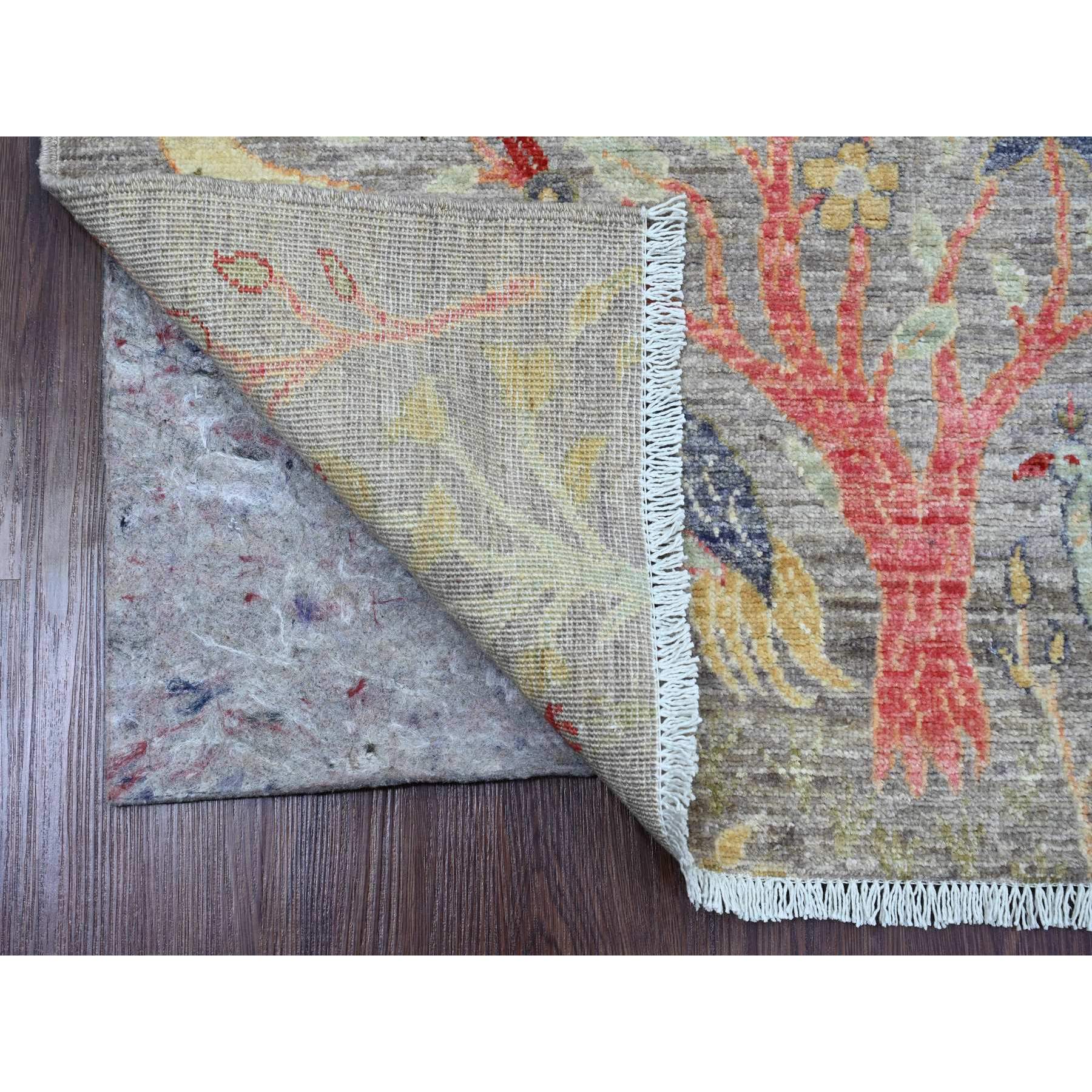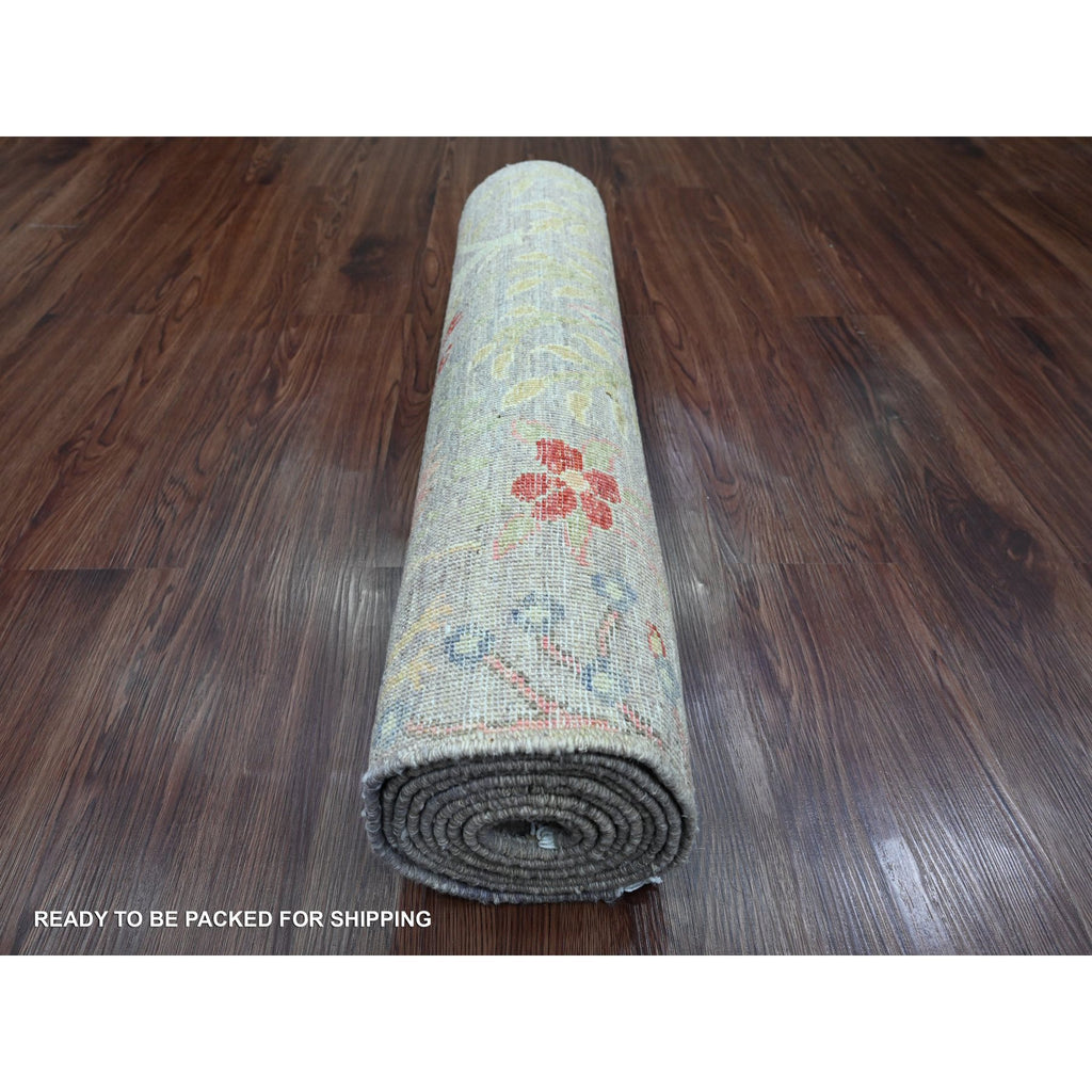 2'7"x9'9" Cloud Gray, Afghan Peshawar With Birds Of Paradise Design, Pure Wool, Hand Knotted, Veggie Dyes, Runner, Oriental Rug FWR122556