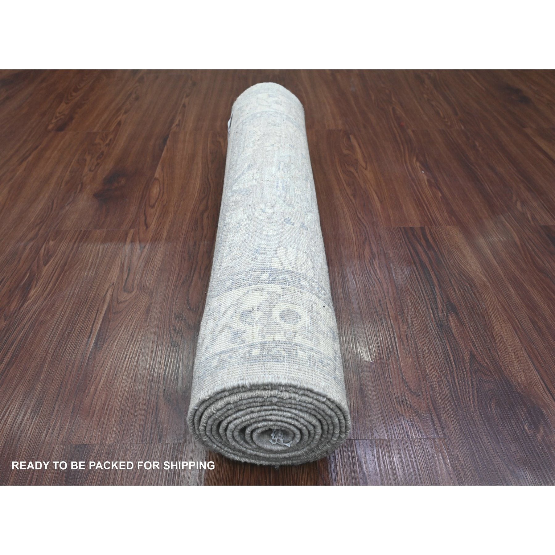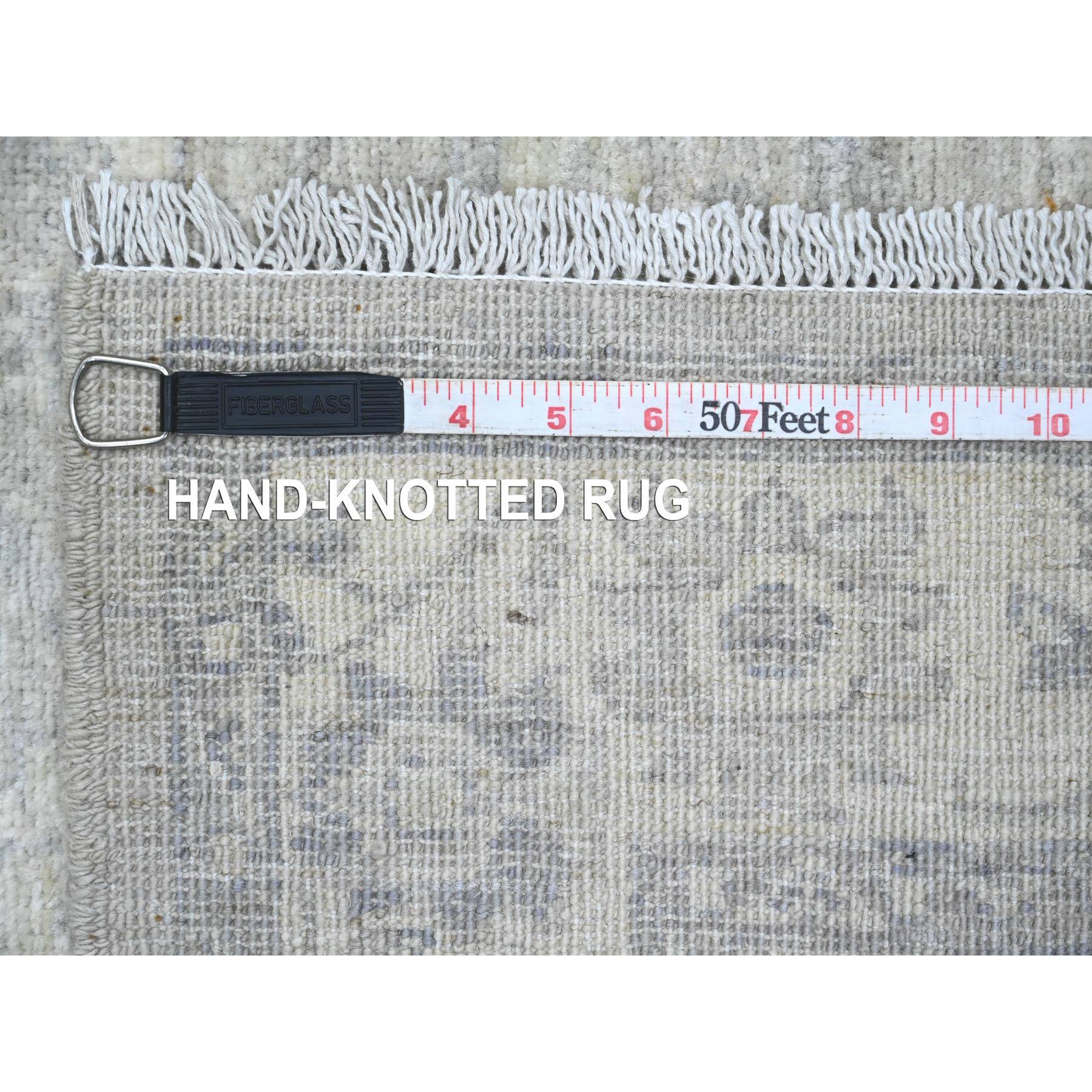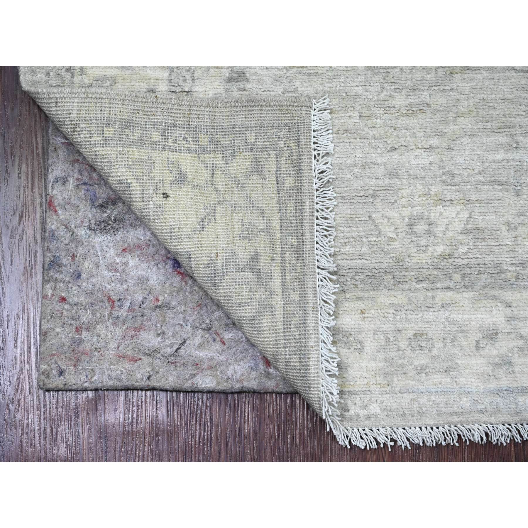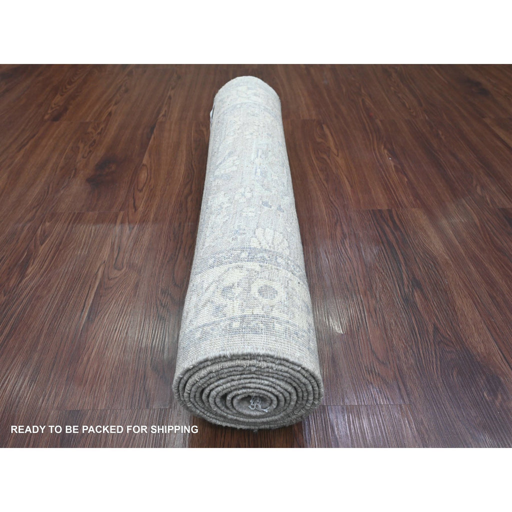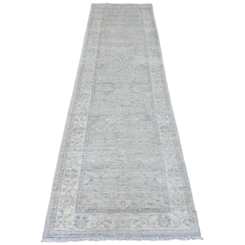 2'8"x10' Cloud Gray, Washed Out Peshawar With Heriz All Over Design, High Mountain Wool, Densely Woven, Hand Knotted, Runner, Oriental Rug FWR123894