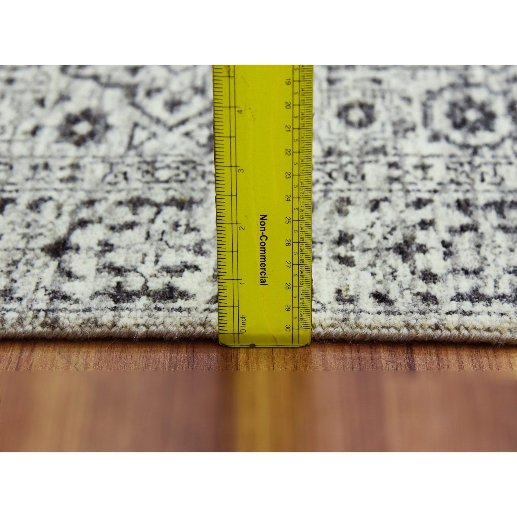 2'8"x10' Harp White, Hand Knotted, Mamluk Dynasty, Tone On Tone Design, Undyed Luxurious Wool, Runner Oriental Rug FWR478110