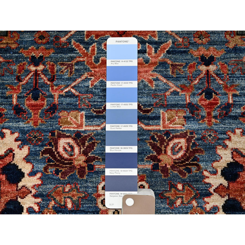 2'8"x10' Horizon Blue, Heriz All Over Design, Aryana Collection, Vegetable Dyes, High Mountain Wool, Hand Knotted, Soft Pile, Densely Woven, Runner, Oriental Rug FWR6642