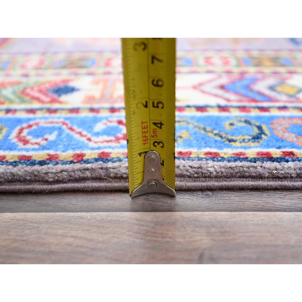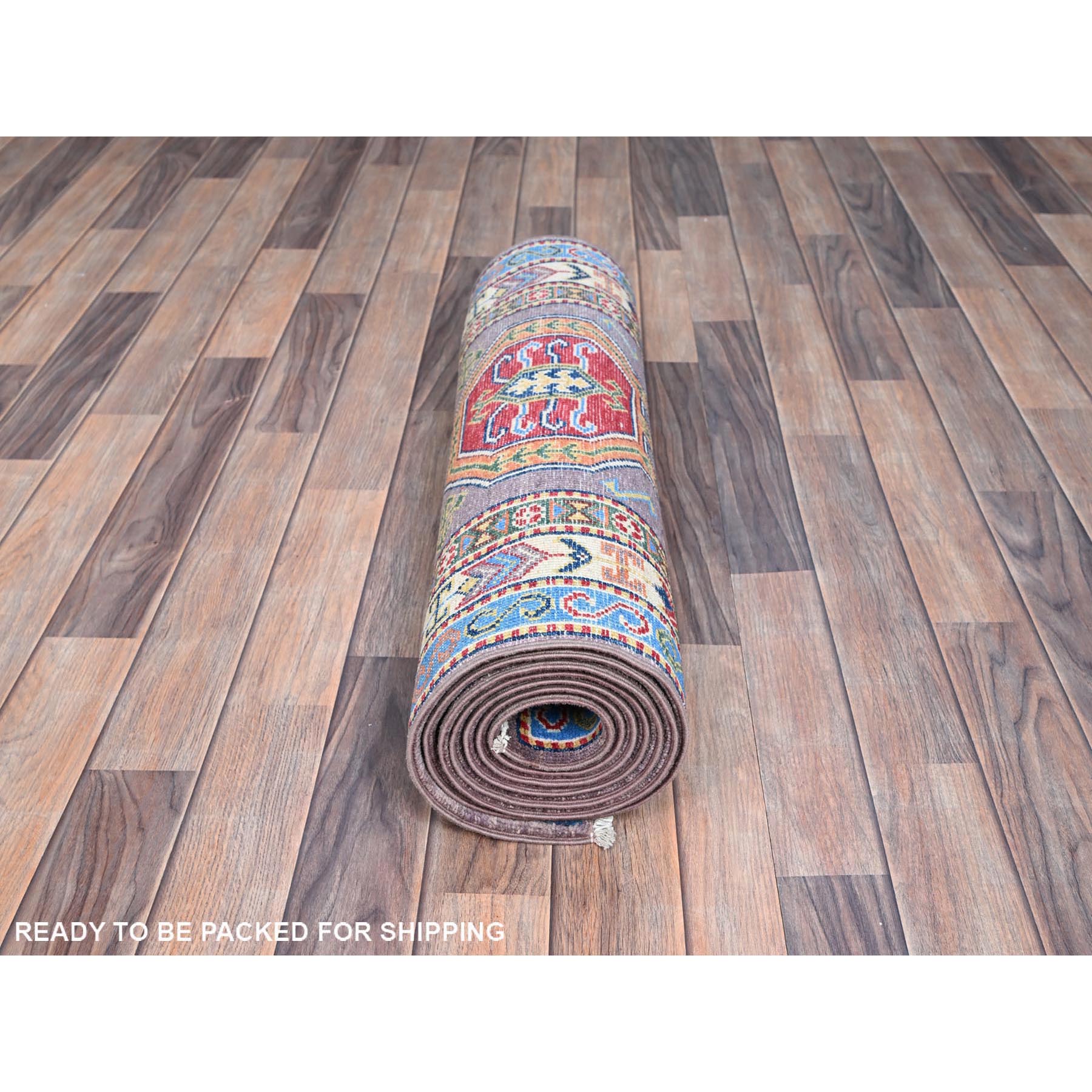 2'8"x10'moonscape Gray With Daisy White Border, Kazak, Natural Dyes, Organic Wool, Densely Woven, Tribal Patterns, Oriental Runner Hand Knotted Rug FWR521106