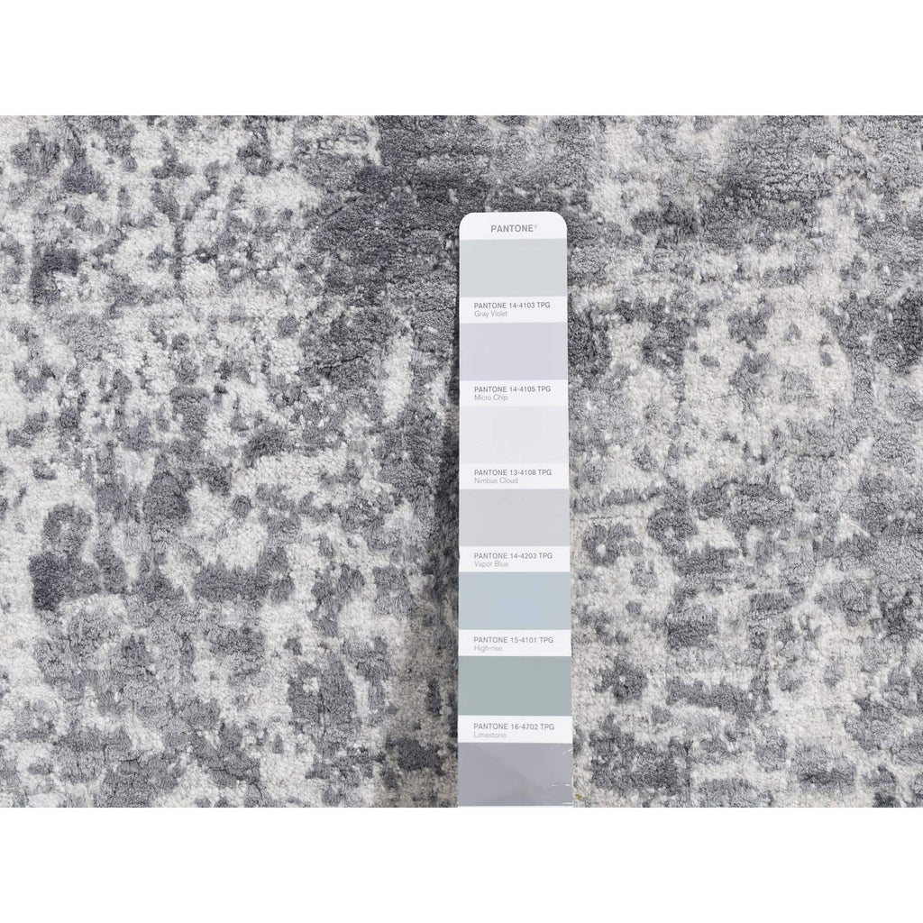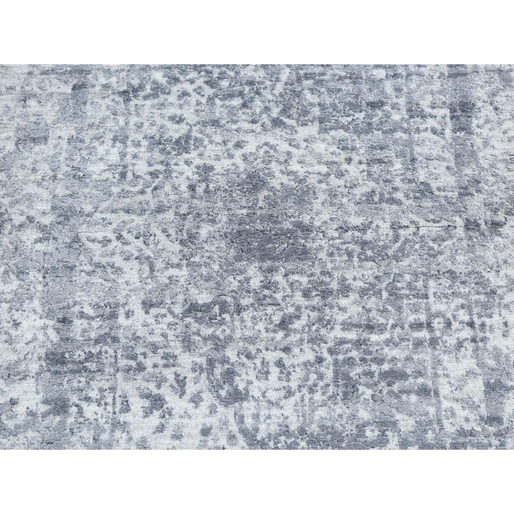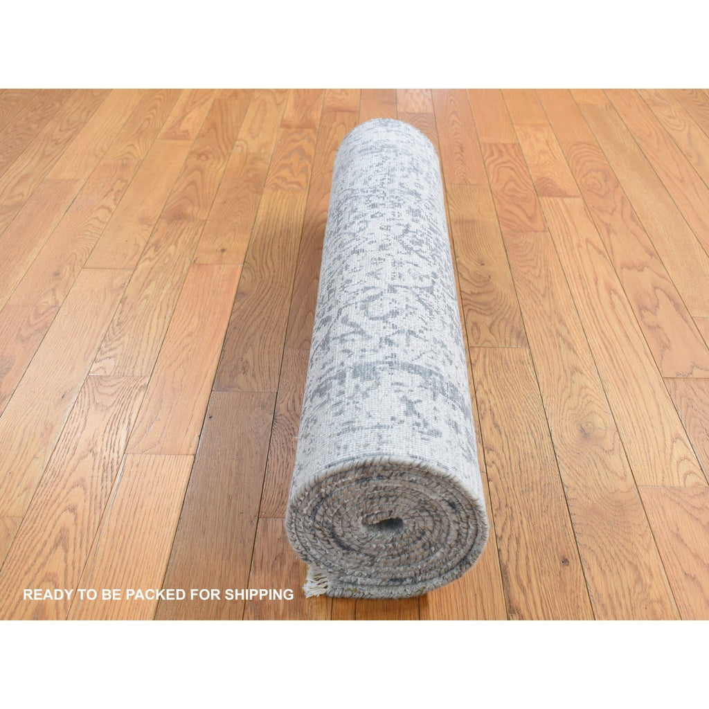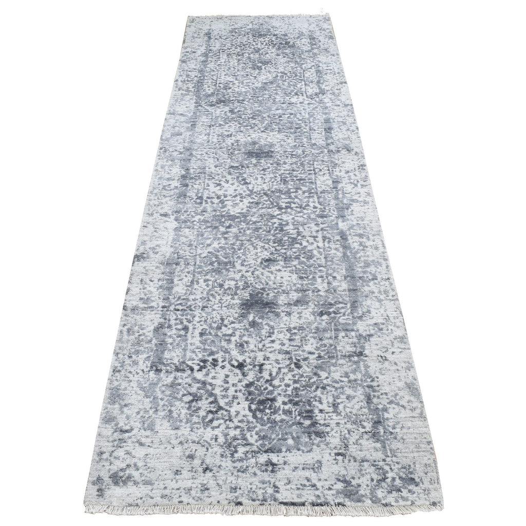 2'8"x10' Slate Gray, Wool And Pure Real Silk, Hand Knotted, Broken And Erased Persian Design, Runner Oriental Rug FWR523620