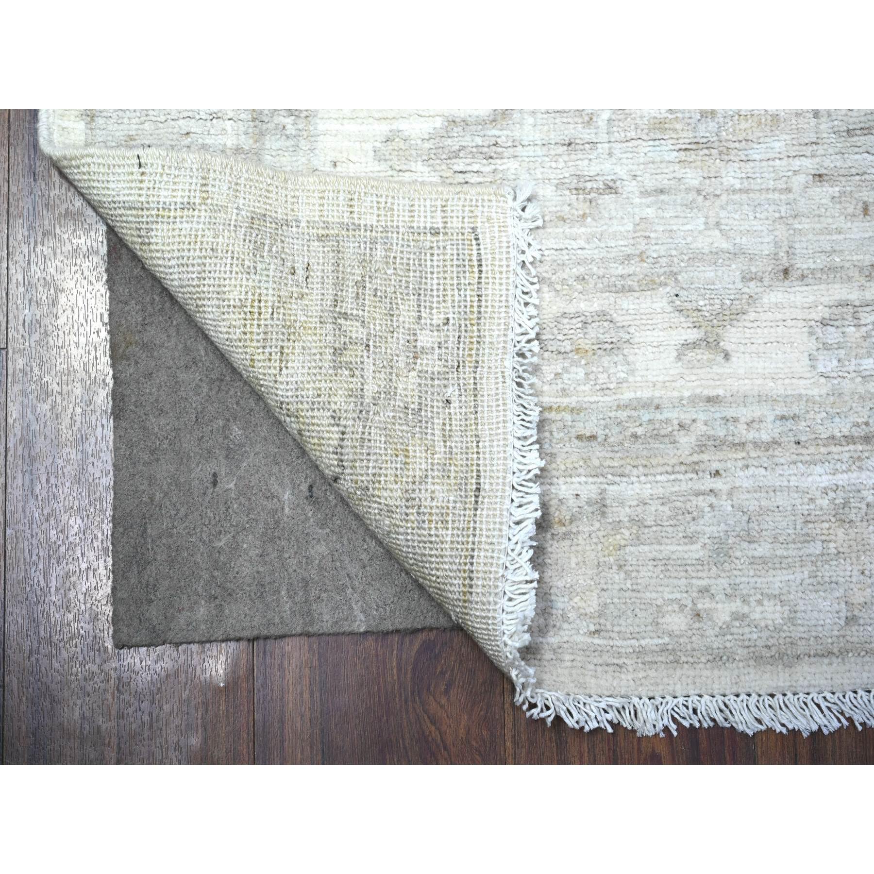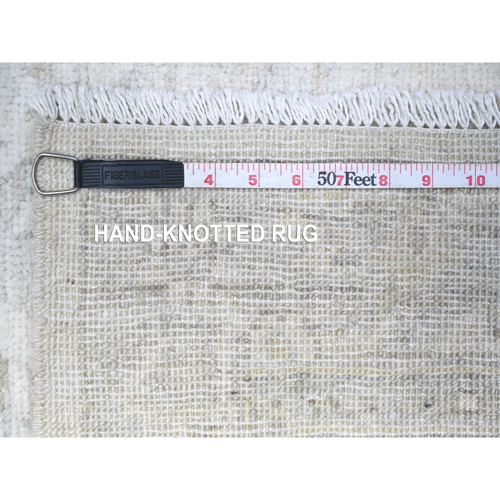 2'8"x11'3" High Reflective White, Distressed White Wash Peshawar, Hand Knotted, 100% Wool, Runner Oriental Rug FWR531312