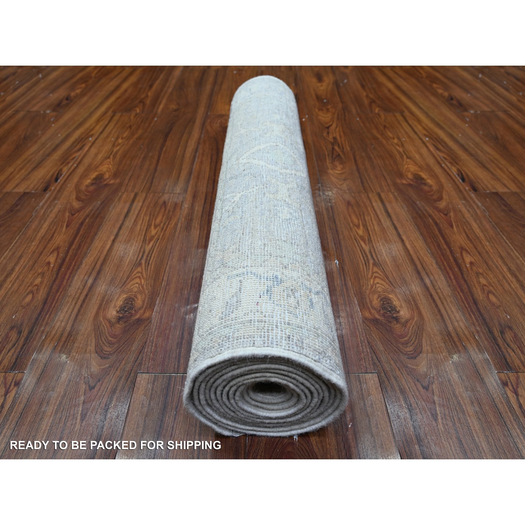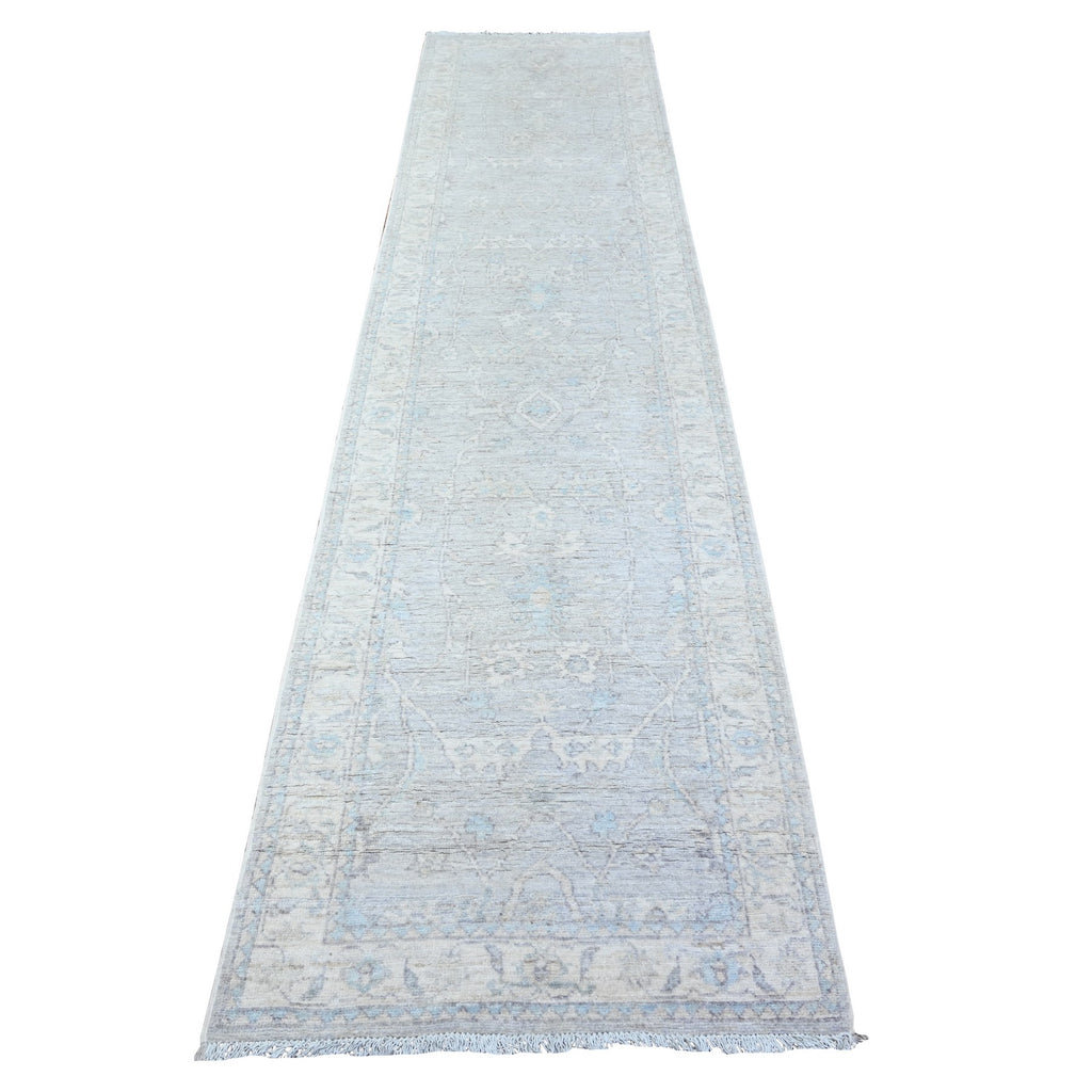 2'8"x11'6" Gainsboro Gray, Natural Wool, White Wash Peshawar, Hand Knotted, Vegetable Dyes, Runner Oriental Rug FWR531324