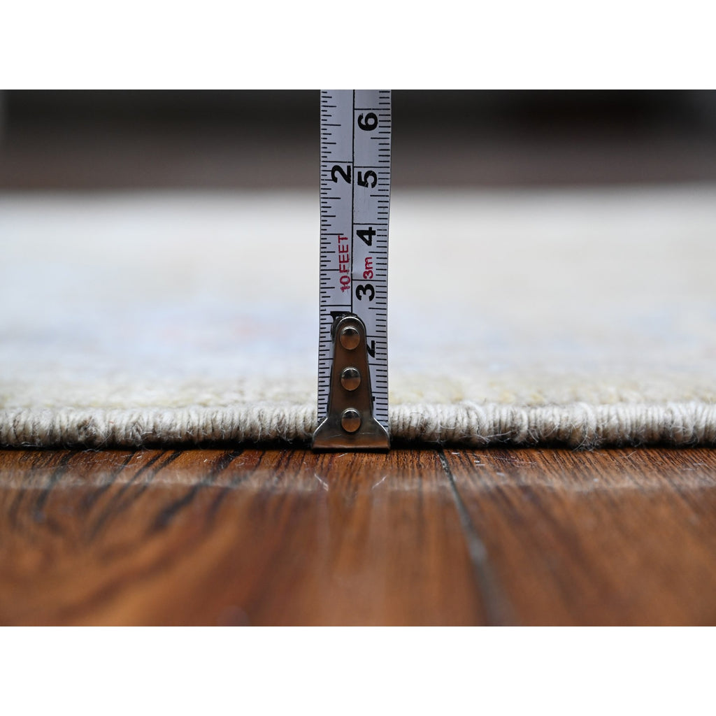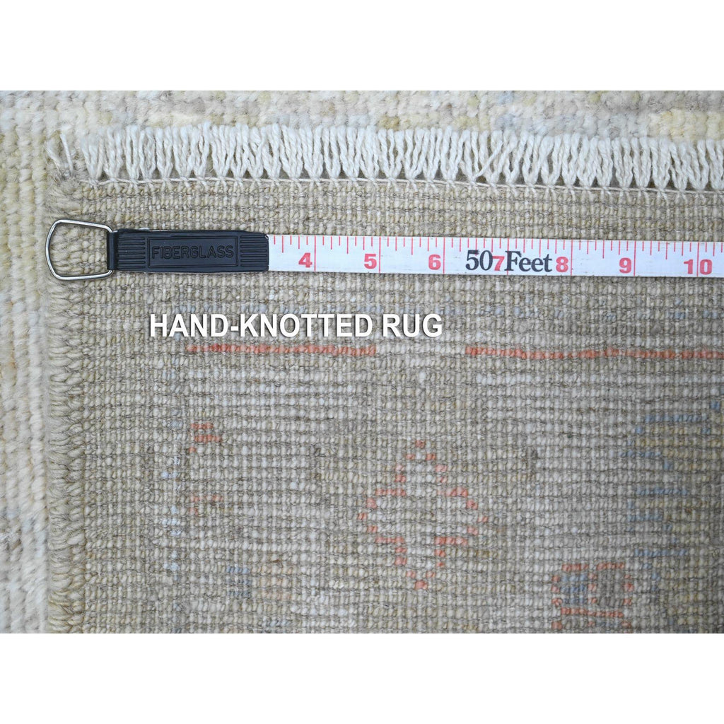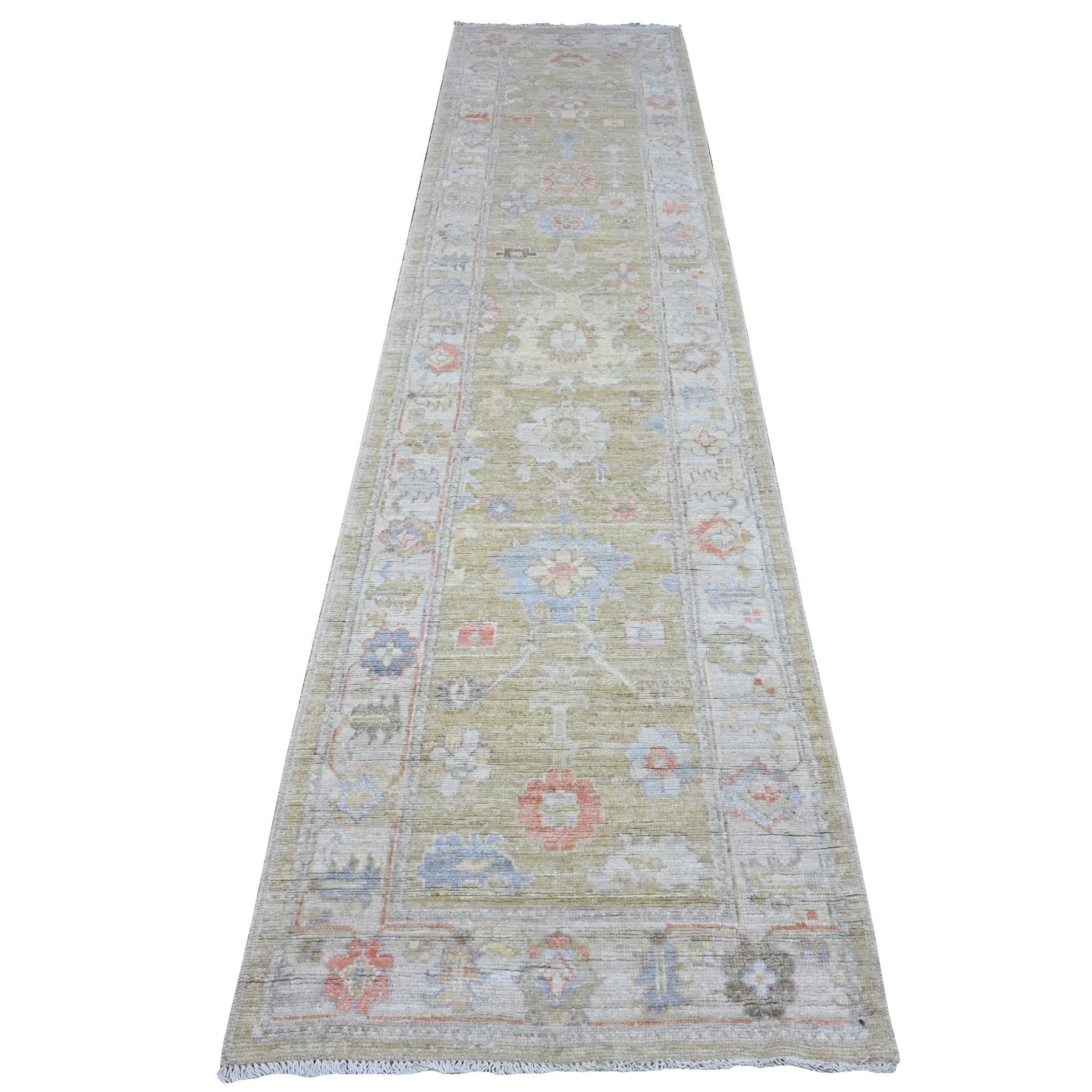 2'8"x11'6" Old Moss Green, Wool Weft With Natural Dyes, Soft Pile, Hand Knotted, Rural Flower And Leaf Design, Afghan Angora Oushak, Oriental Runner Rug FWR537600