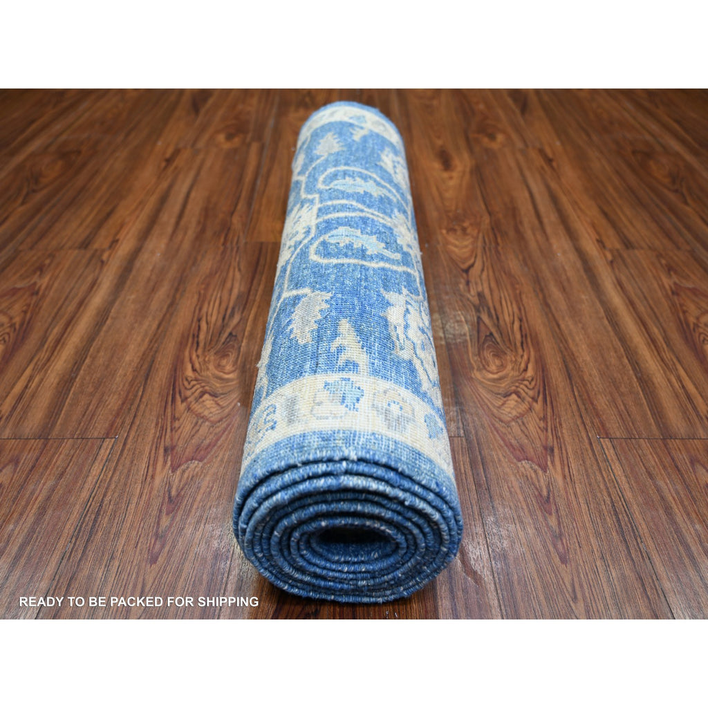 2'8"x11'8" Bayern Blue, Soft Wool Hand Knotted, Finer Peshawar With Mahal Design, Densely Woven Natural Dyes, Runner Oriental Rug FWR440472