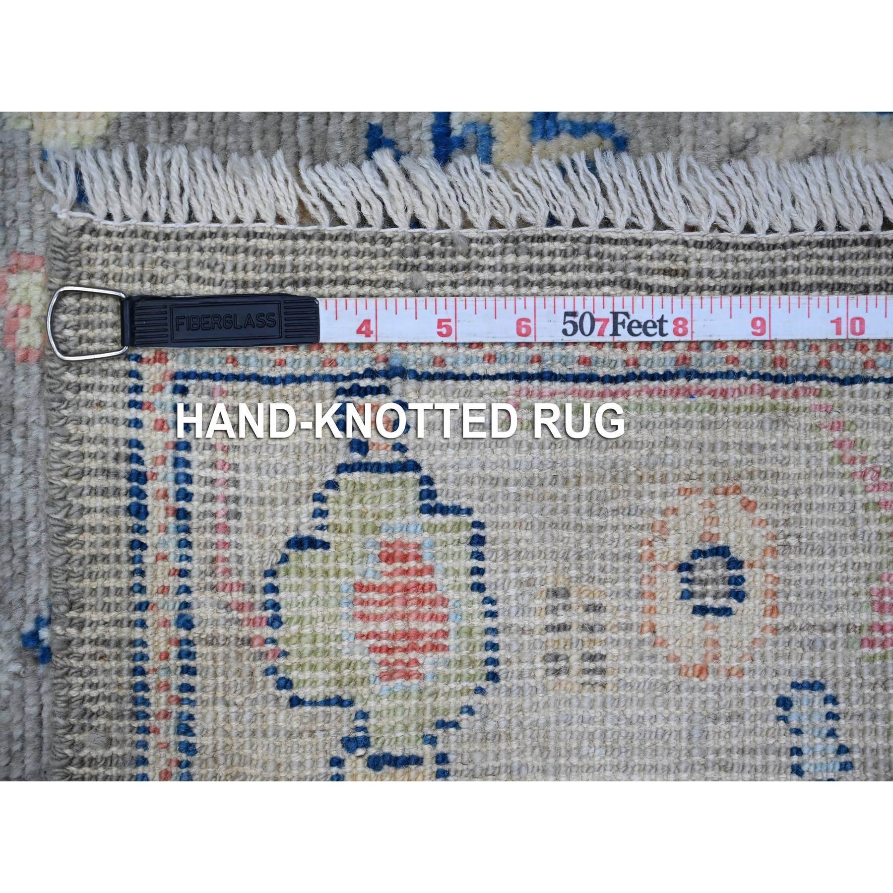 2'8"x11'9" Ash Gray, Afghan Angora Oushak, Wool Weft, Tribal Elements Design, Vegetable Dyes, Hand Knotted, Runner Oriental Rug FWR534150