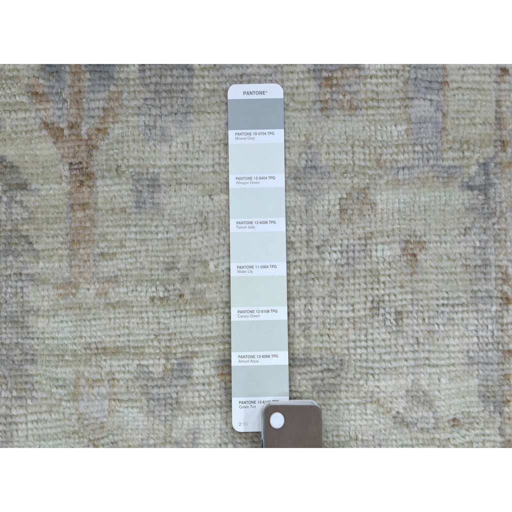 2'8"x11'9" Extra Soft Wool Hand Knotted Silver Angora Oushak With Faded Out Cypress And Willow Tree Design Oriental Runner Rug FWR419358