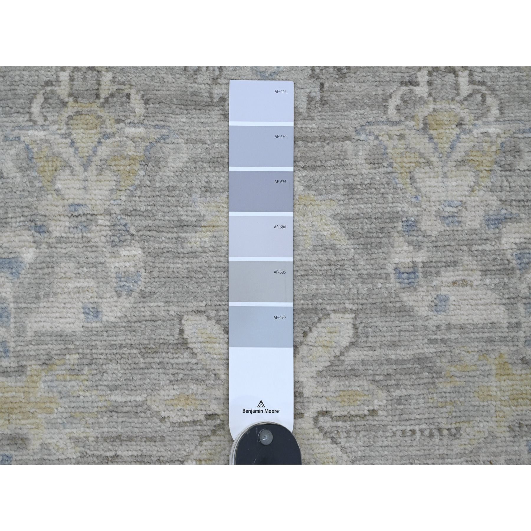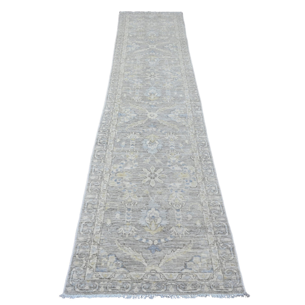 2'8"x11'9" Stone Gray, Washed Out Peshawar With Floral Pattern, Hand Knotted, Vegetable Dyes, 100% Wool, Runner, Oriental Rug FWR123024