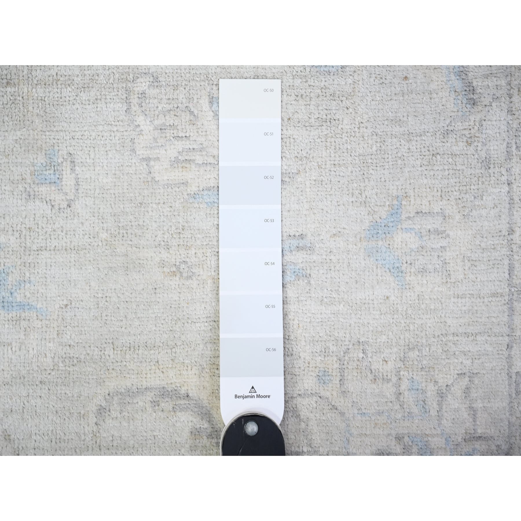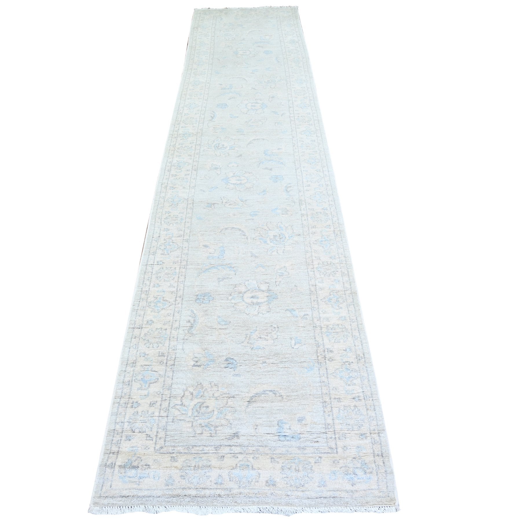 2'8"x12'2" Ice Gray, Vegetable Dyes, Peshawar Washed Out Faded Designs, Organic Wool, Hand Knotted, Runner Oriental Rug FWR448668