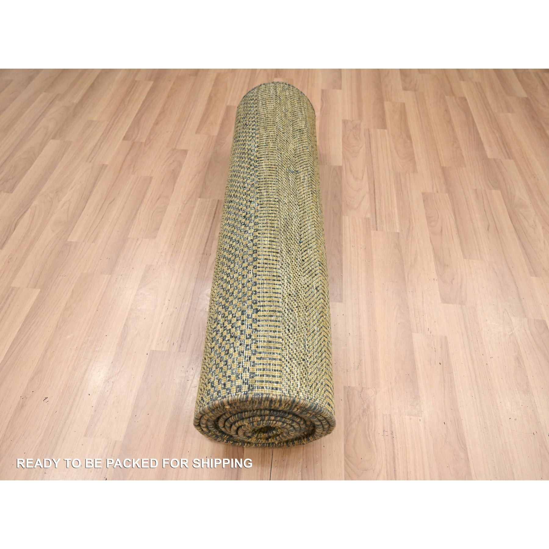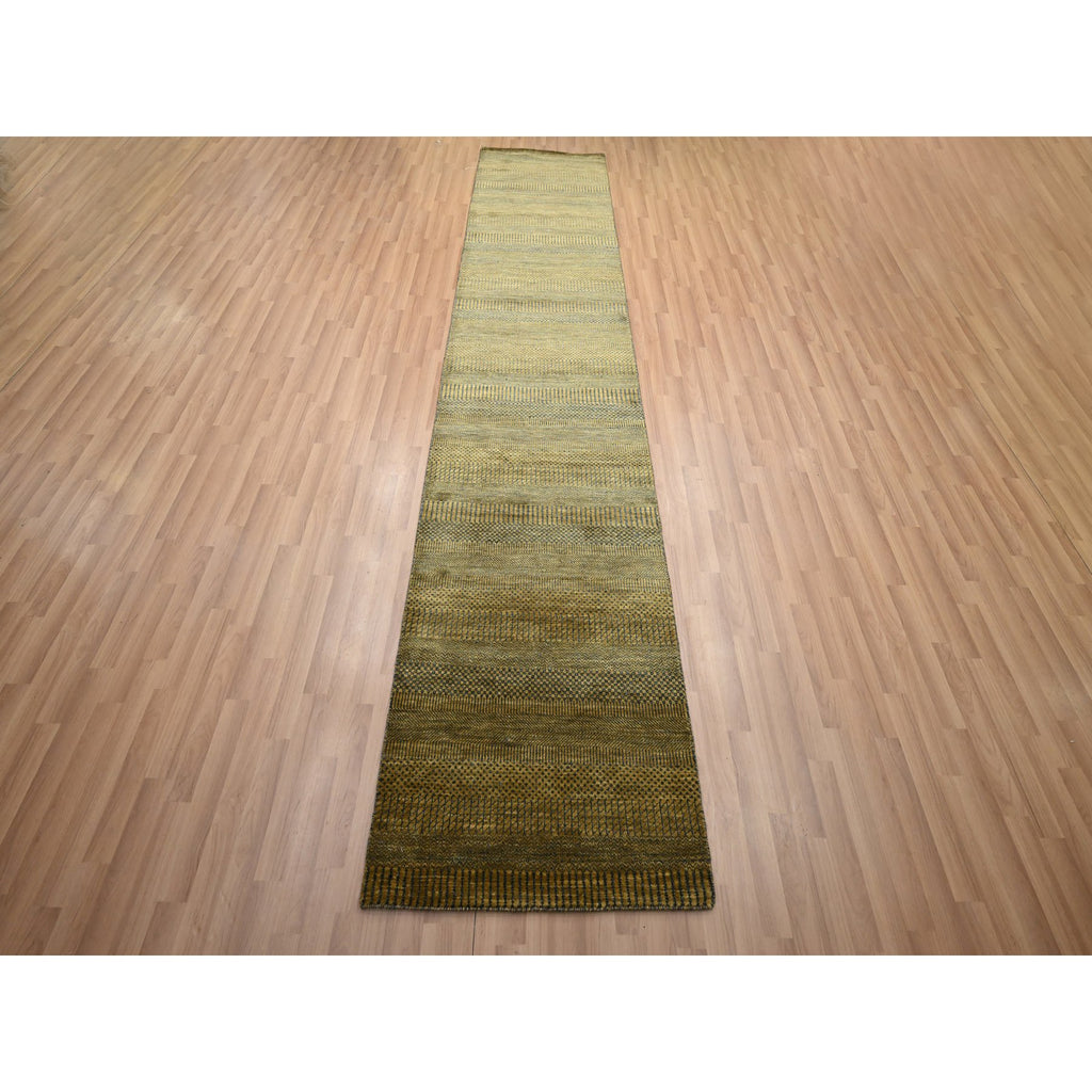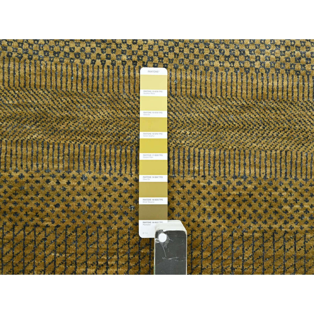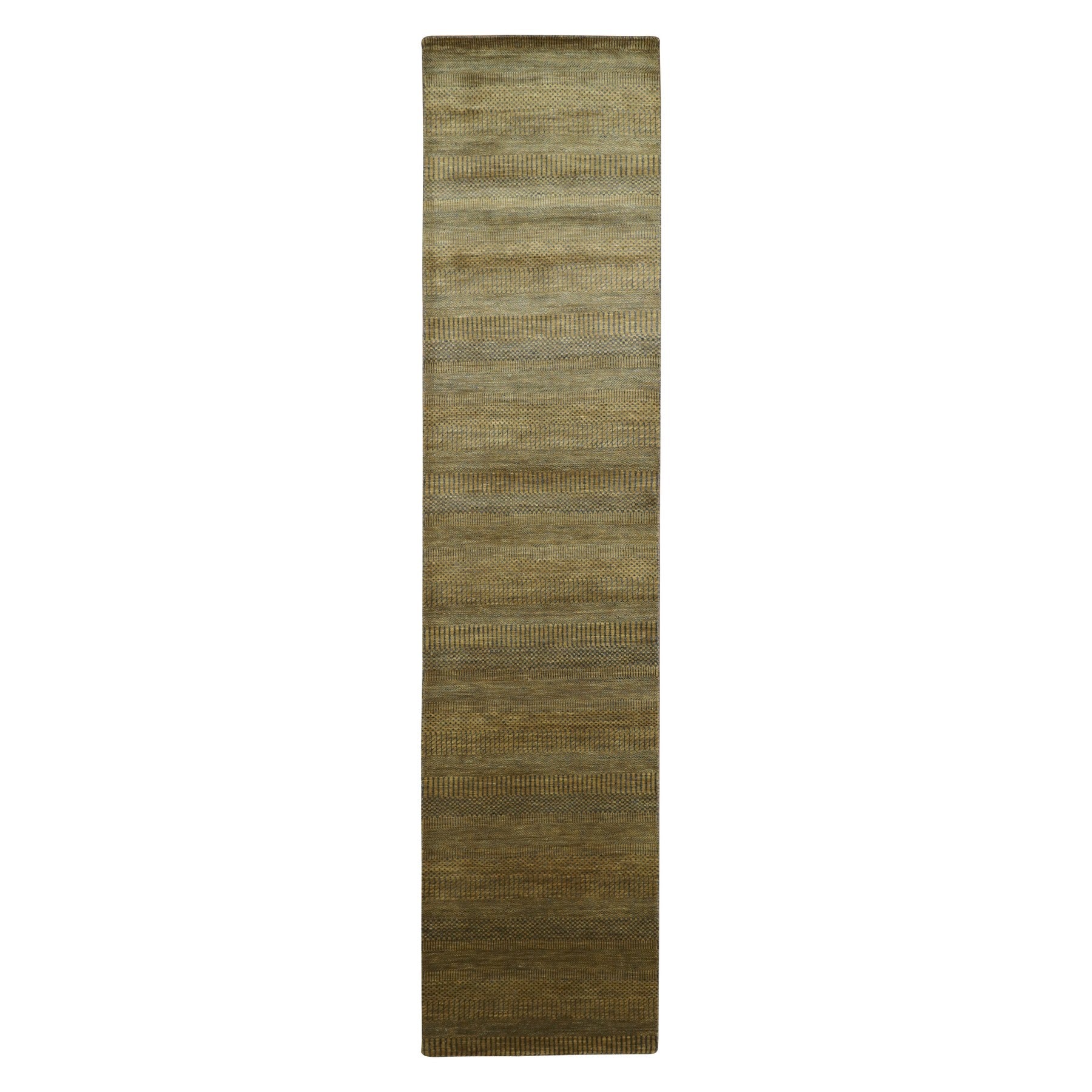 2'8"x12'3" Golden Brown, Modern Grass Design, Hand Knotted, Denser Weave, Wool And Silk, Soft To The Touch, Runner, Oriental Rug FWR499356