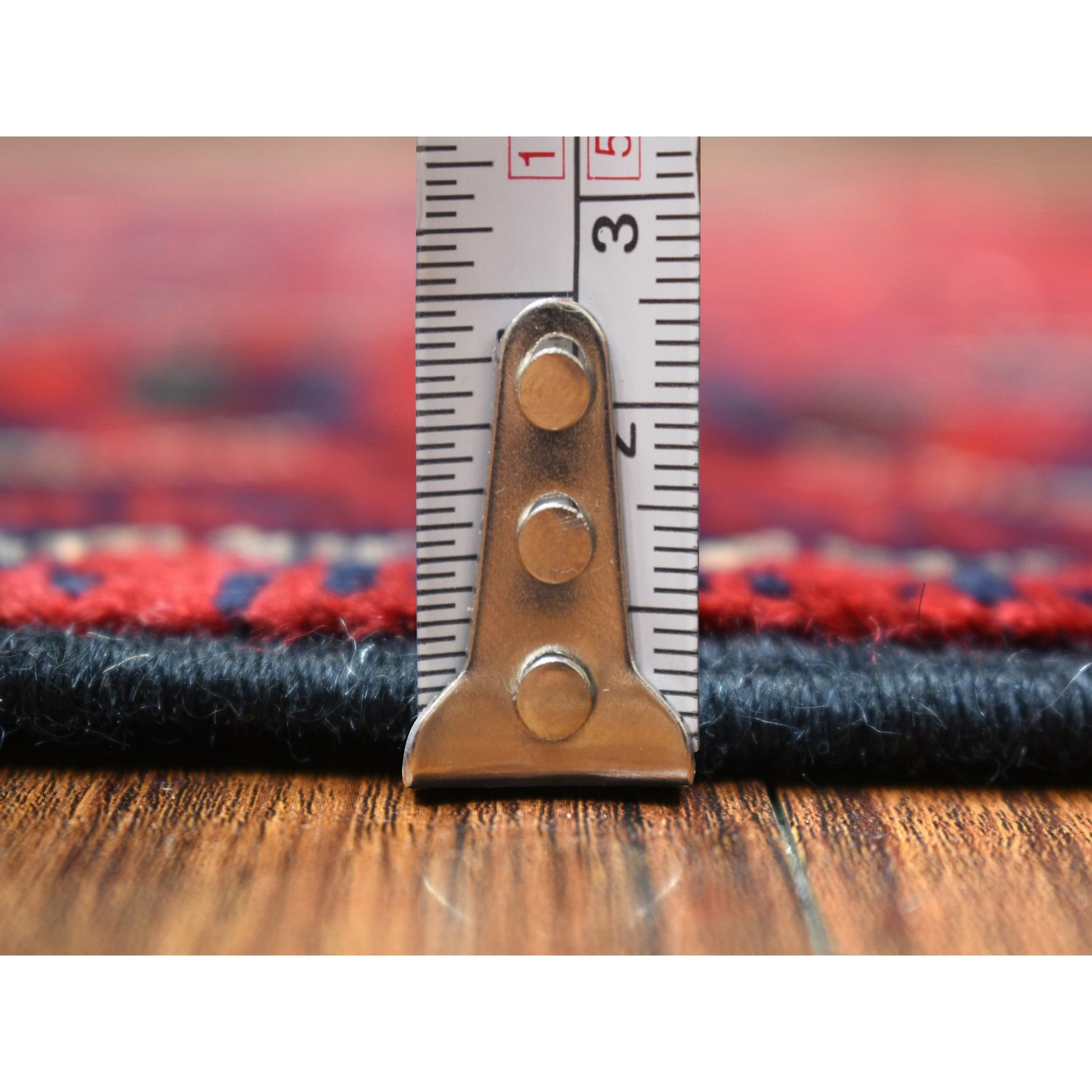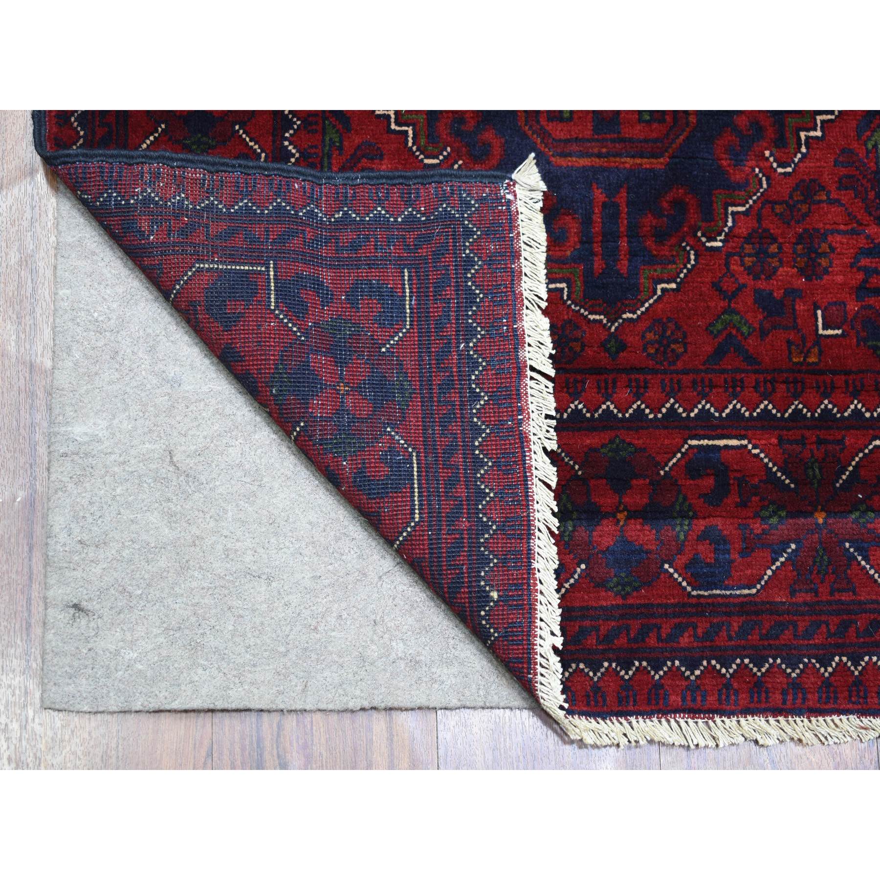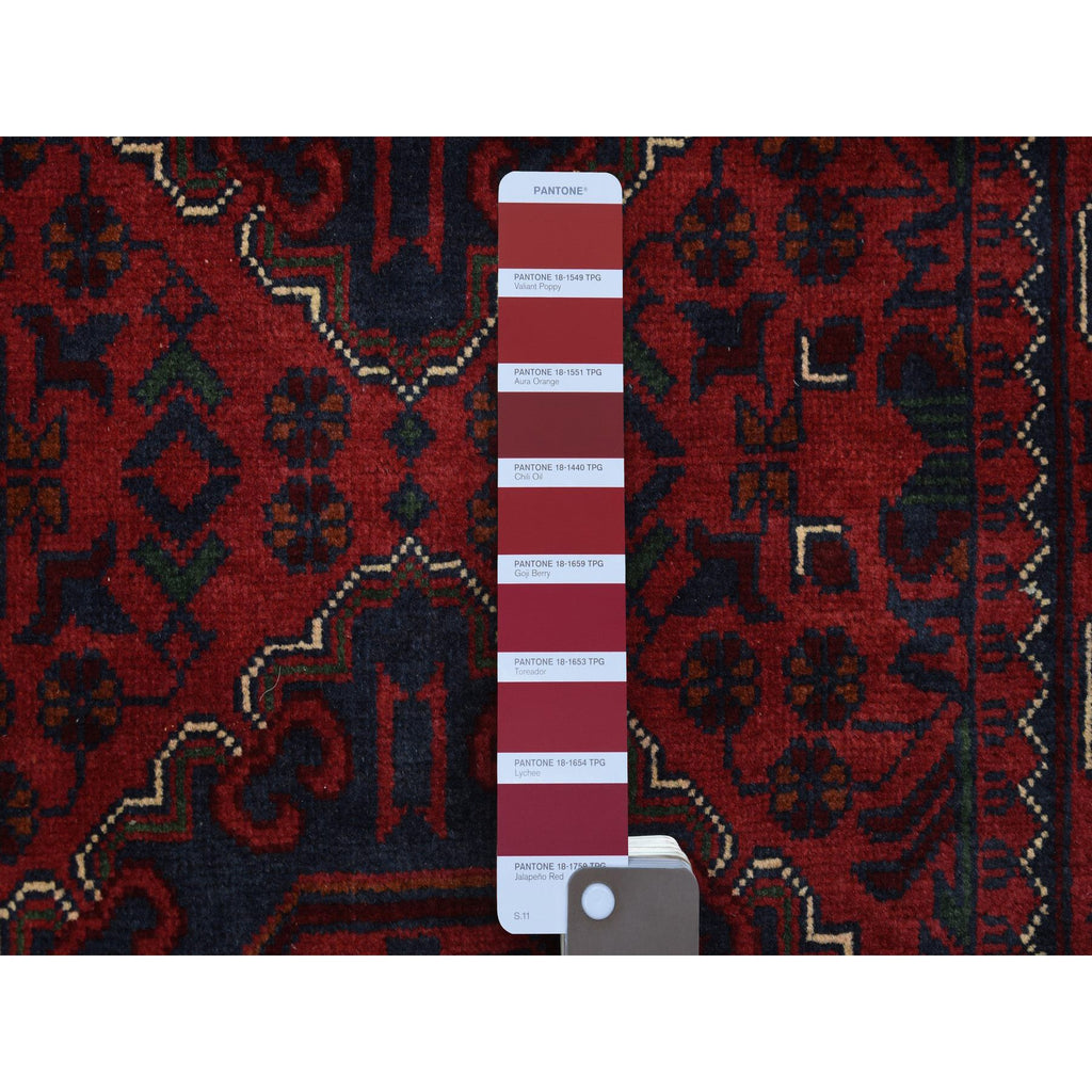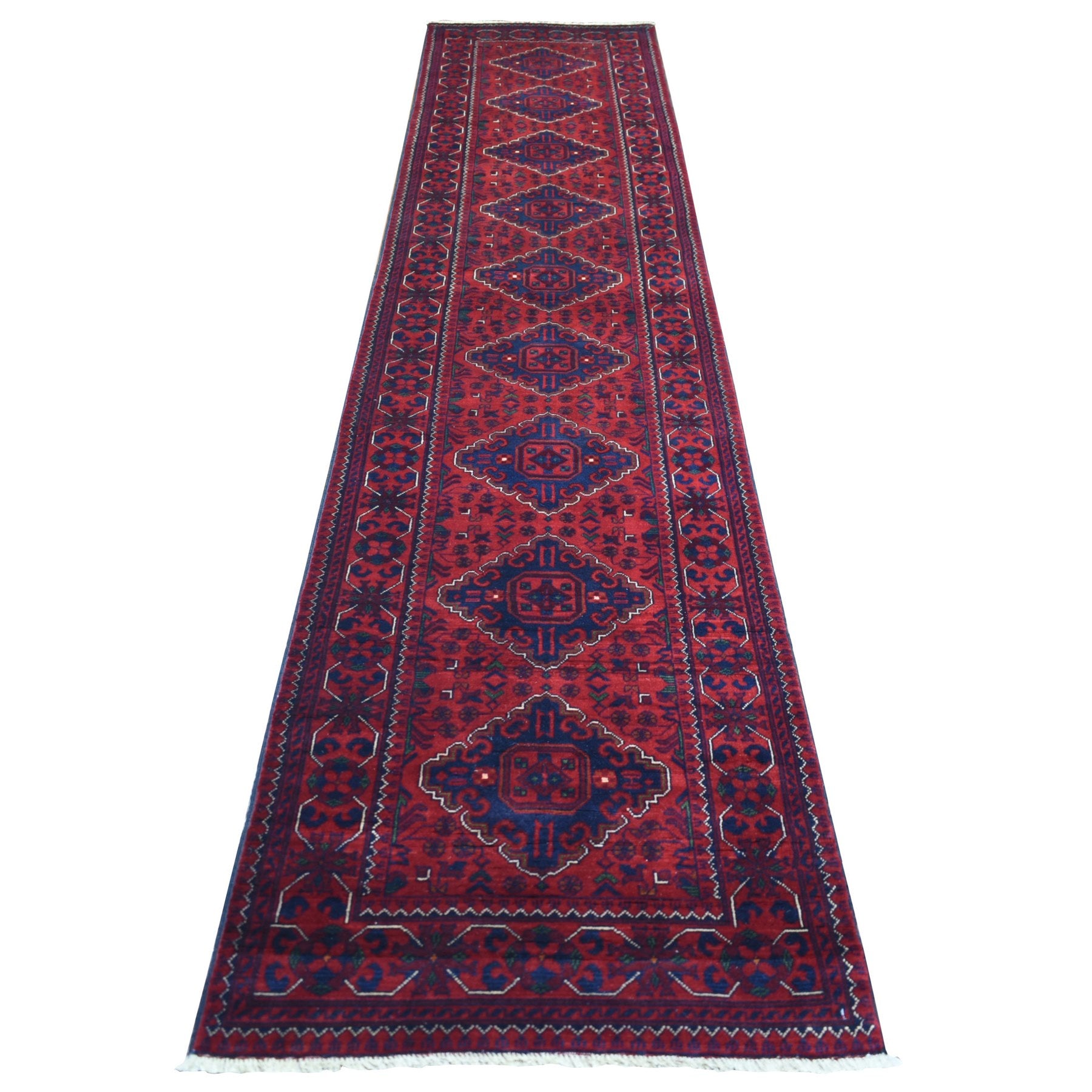 2'8"x12'9" Deep And Saturated Red Natural Dyes Afghan Khamyab, Pure Wool With Geometric Design Hand Knotted Runner Oriental Rug FWR432144
