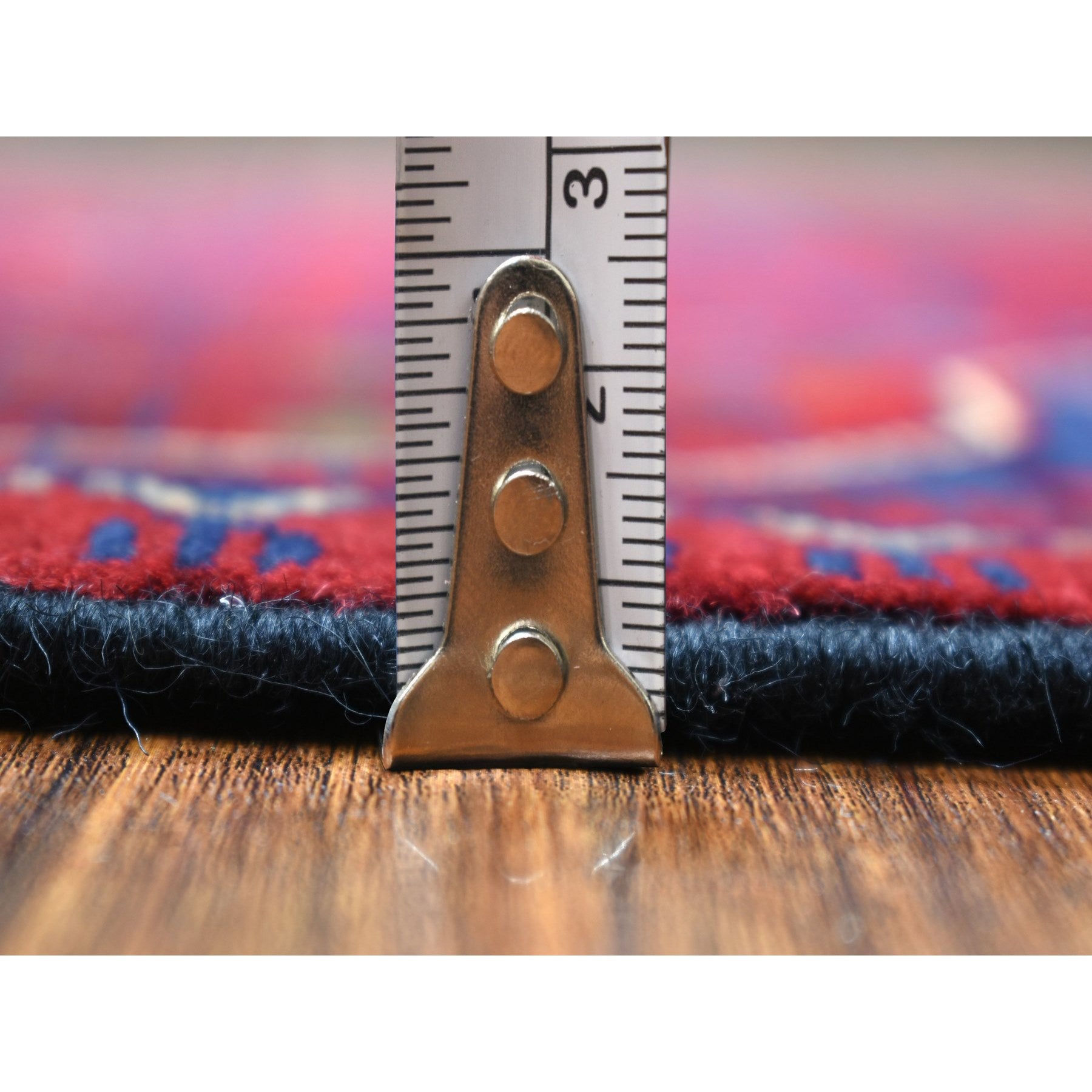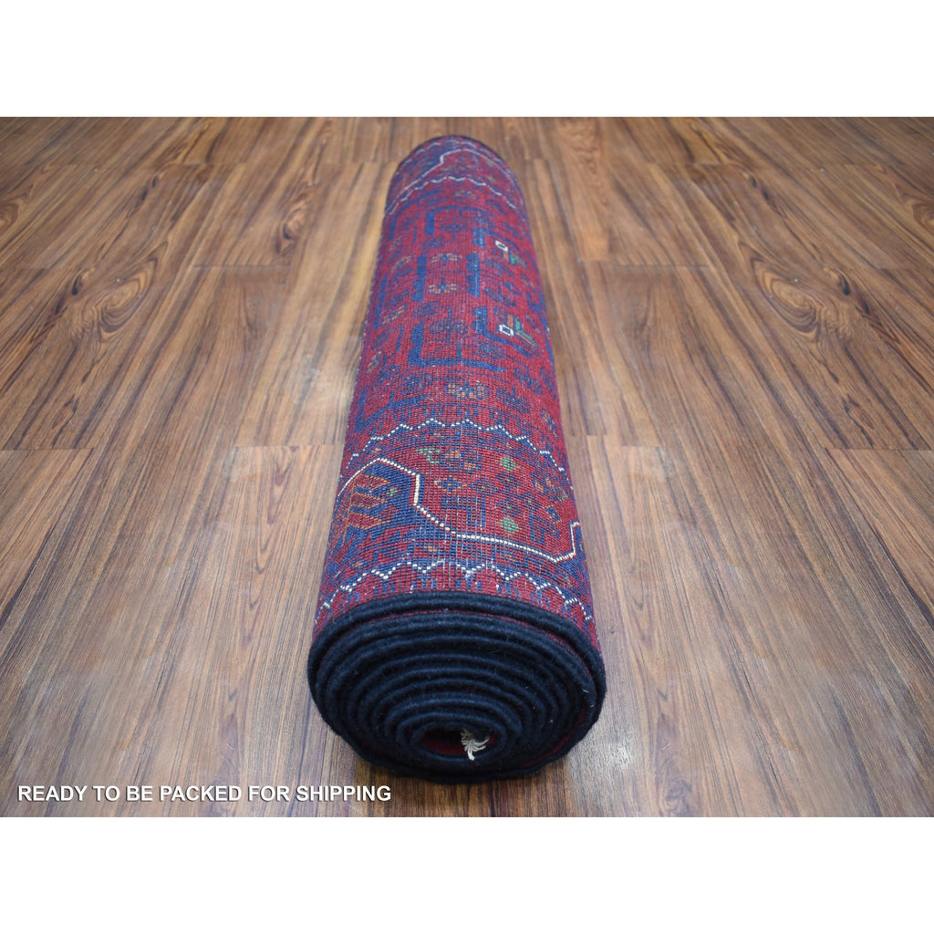 2'8"x12'9" Deep And Saturated Red With Touches Of Navy Blue, Afghan Khamyab With Geometric Medallion, Soft Wool Hand Knotted, Runner Oriental Rug FWR430890