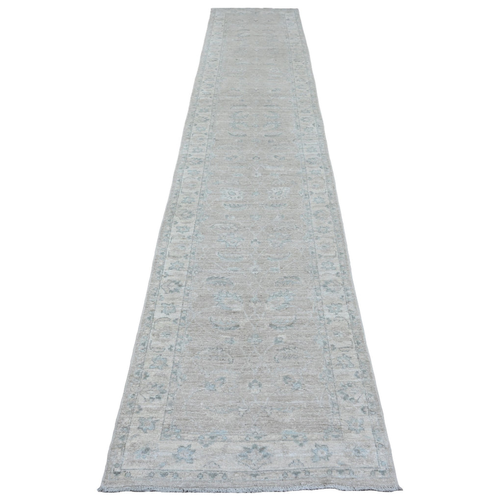 2'8"x14'2" Dark Vanilla Brown, Washed Out Peshawar With All Over Leaf Design, Veggie Dyes, Pure Wool, Hand Knotted, Xl Runner, Oriental Rug FWR124134