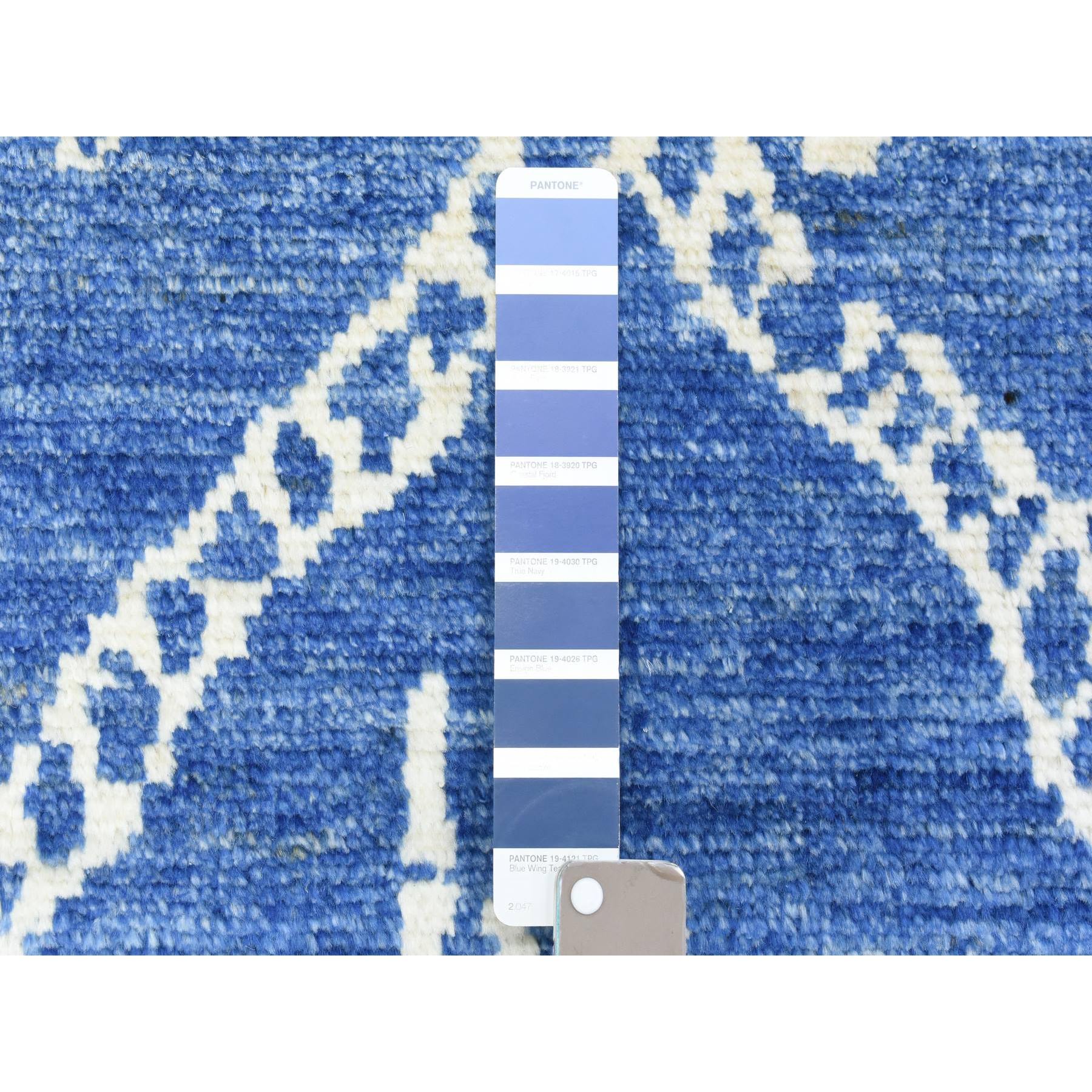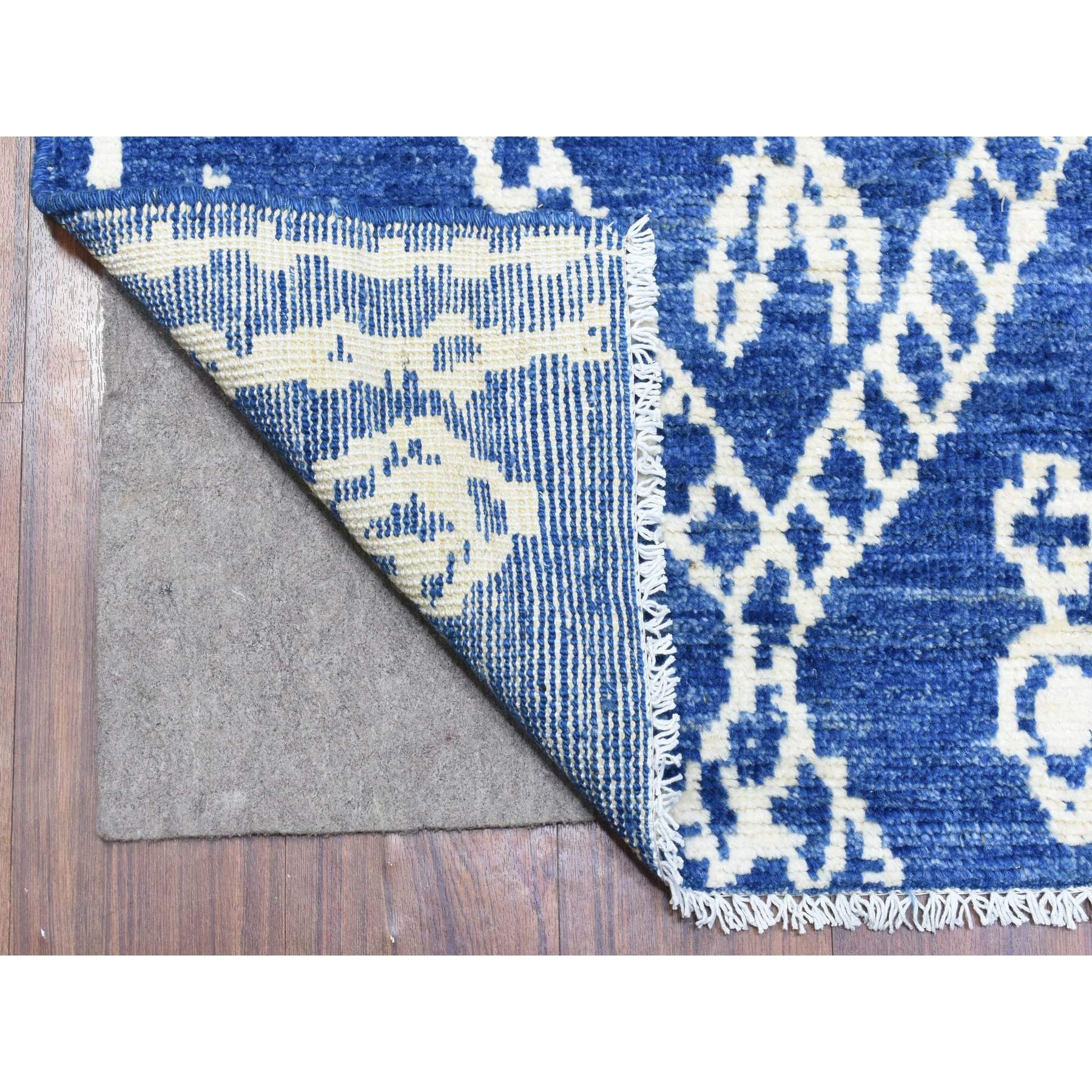 2'8"x15'4" Denim Blue, Soft Organic Wool Hand Knotted, Boujaad Moroccan Berber Design With Geometric Triangular Design, Natural Dyes, Runner Oriental Rug FWR436704