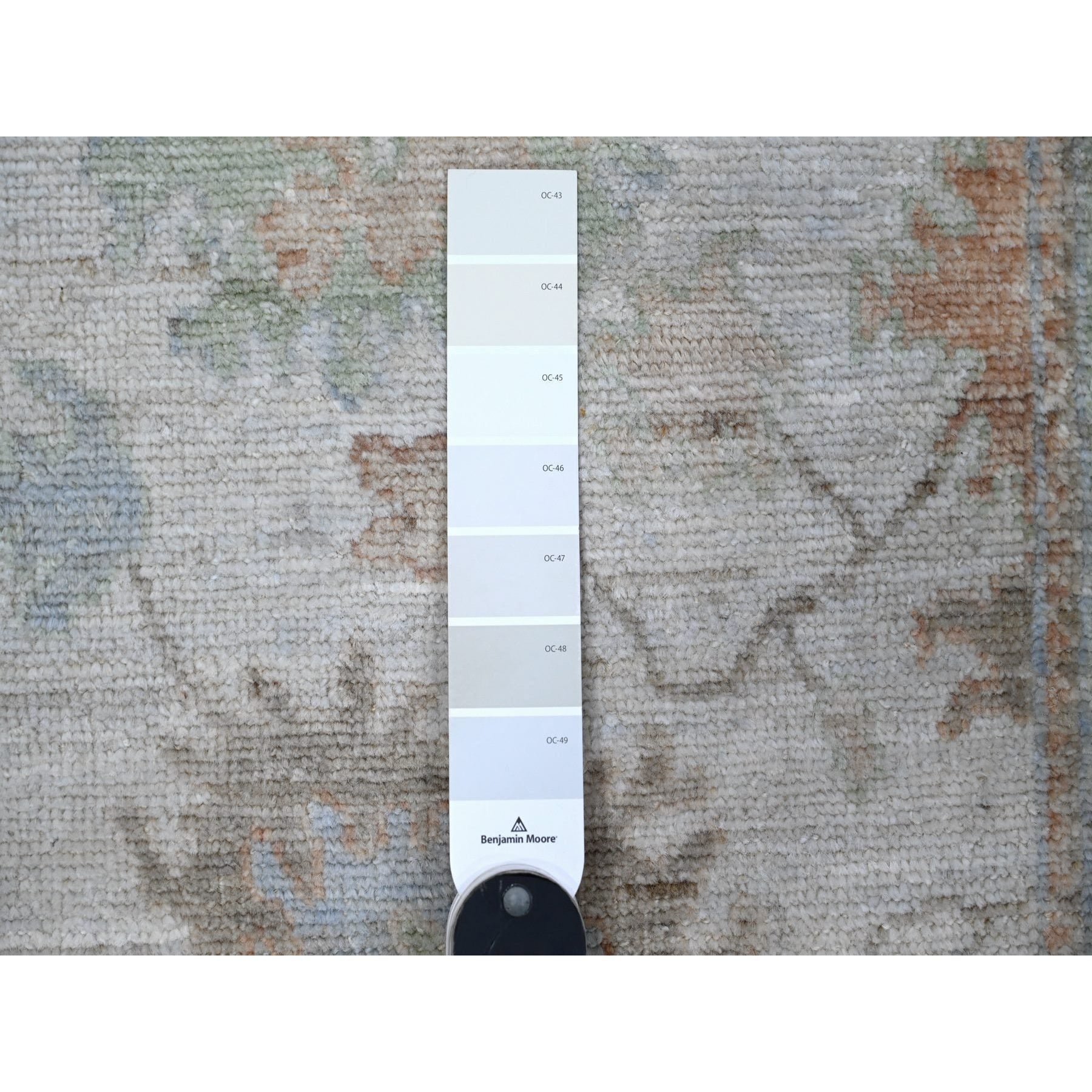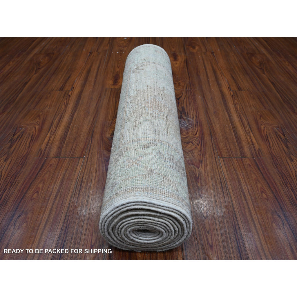 2'8"x15'4" Silver Gray, Vegetable Dyes With Village Flower Design, Hand Knotted, Wool Weft, Afghan Angora Oushak, Xl Runner Oriental Rug FWR533004