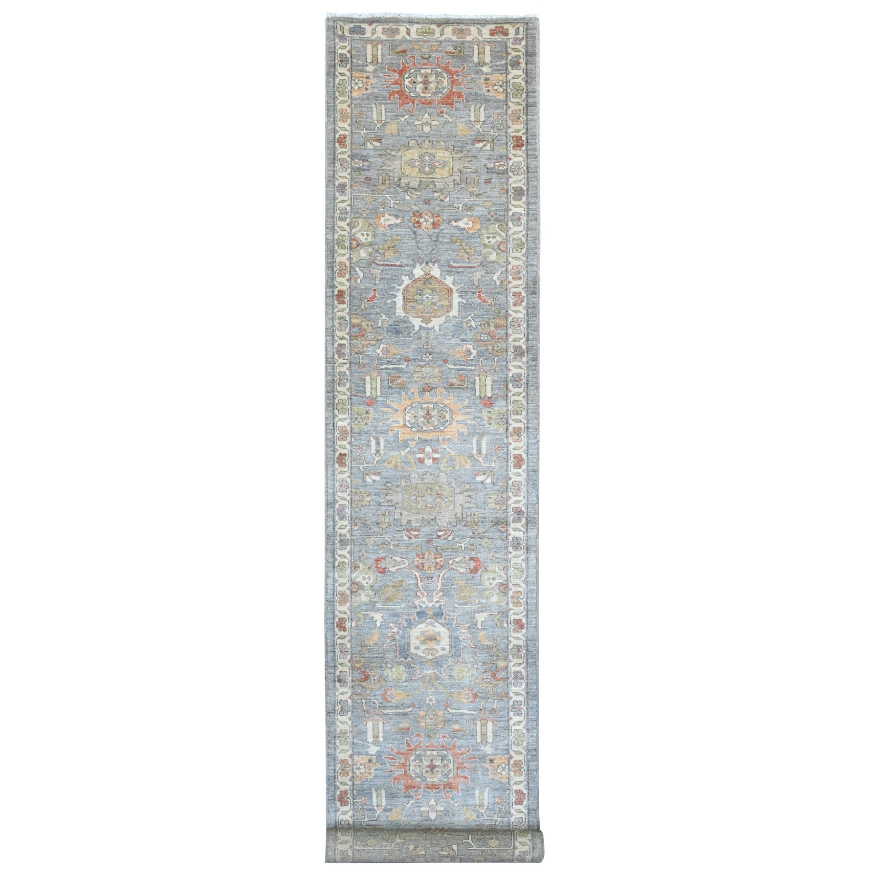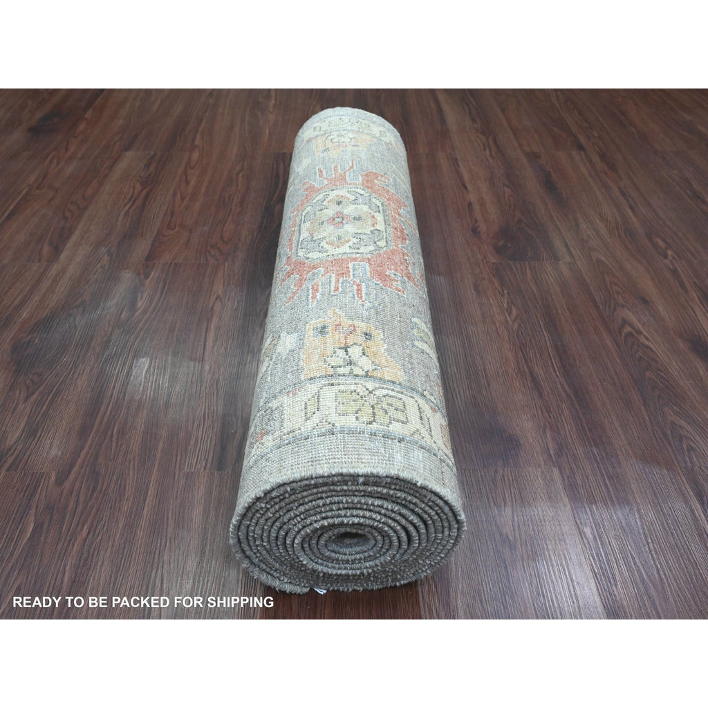 2'8"x15'6" Misty Gray, Aryana Collection, Karajeh Design, Densely Woven, Hand Knotted, 100% Wool, Xl Runner, Oriental Rug FWR125208