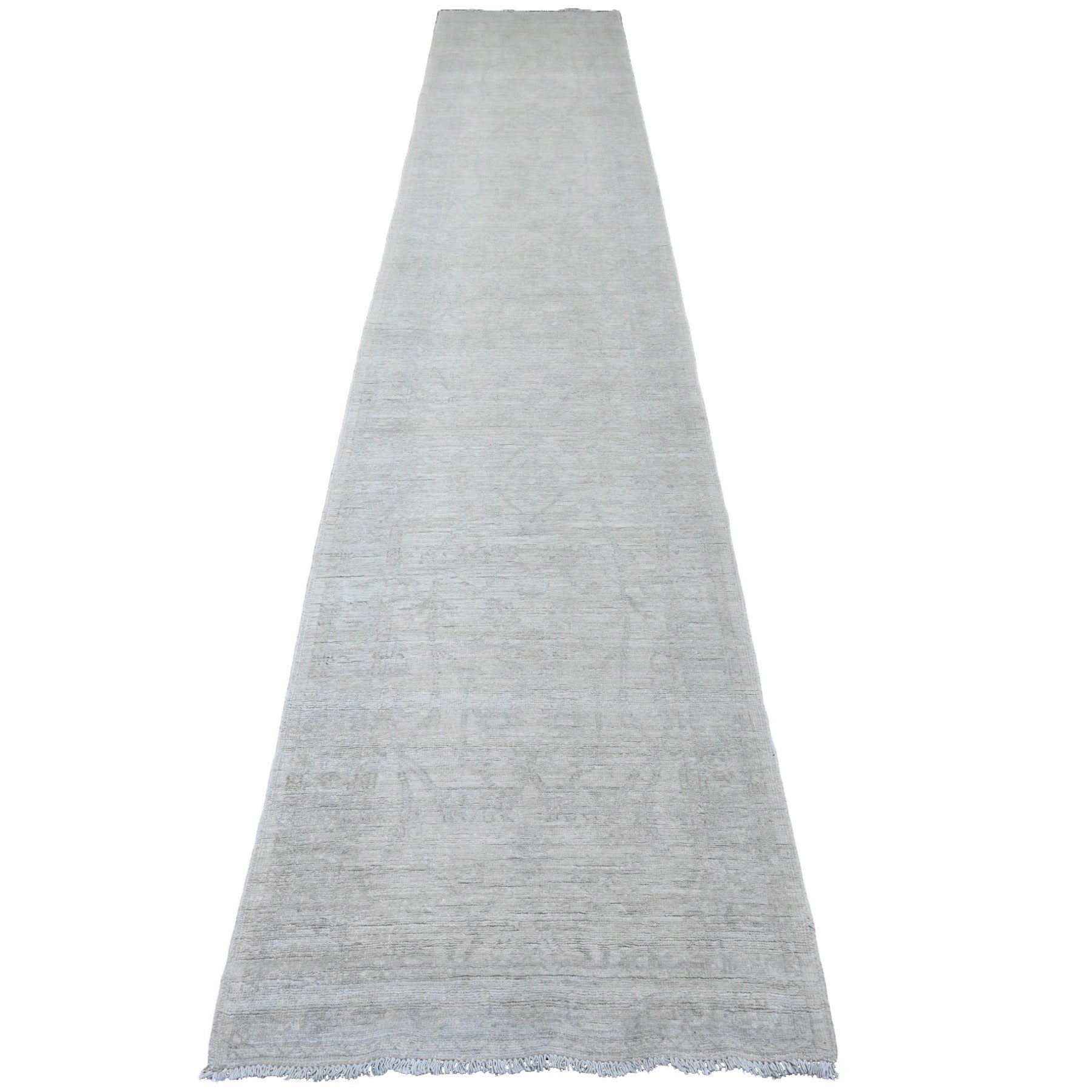 2'8"x15' Cascading White, Hand Knotted, Stone Washed Peshawar With All Over Pattern, Natural Dyes, Pure Wool, Xl Runner, Oriental Rug FWR123006