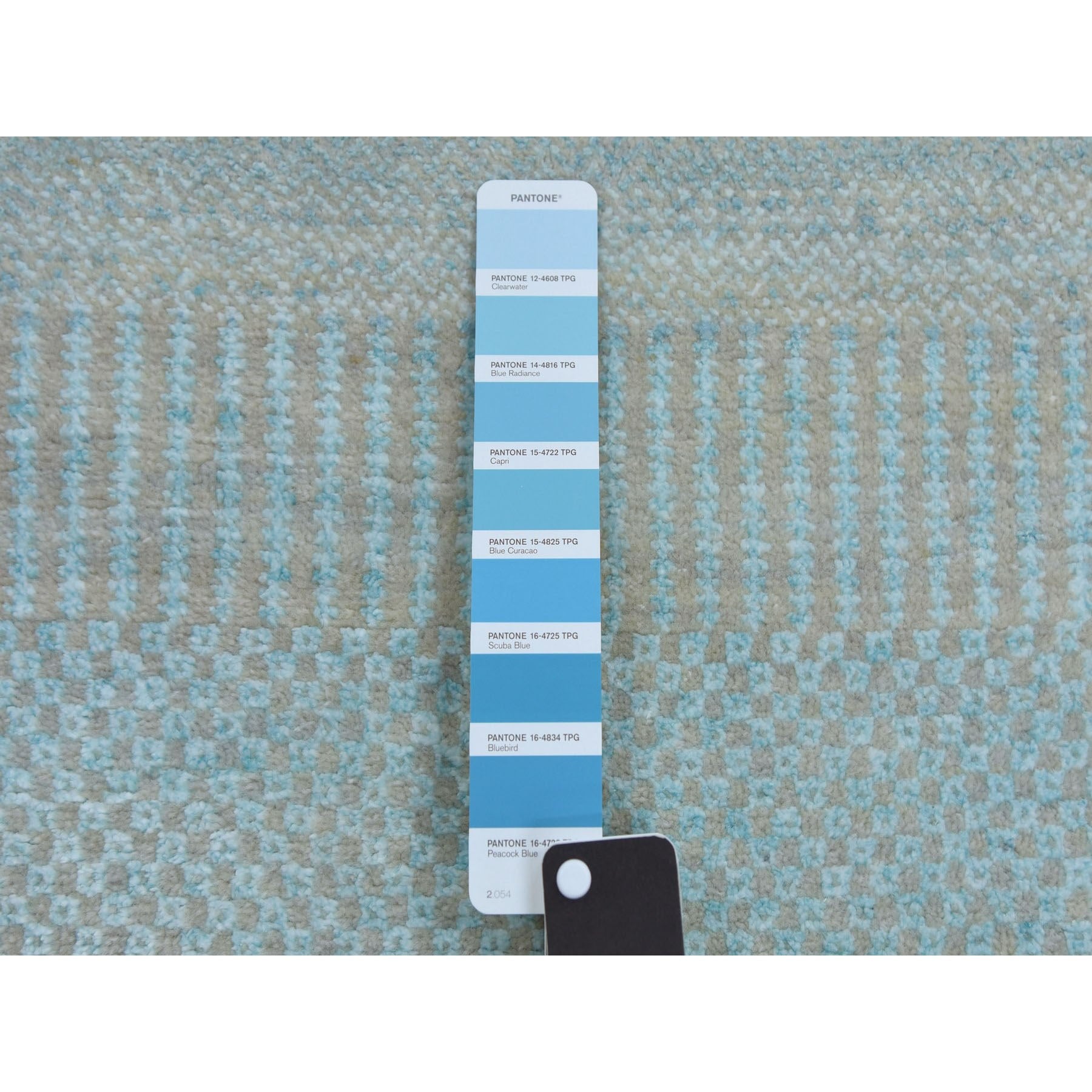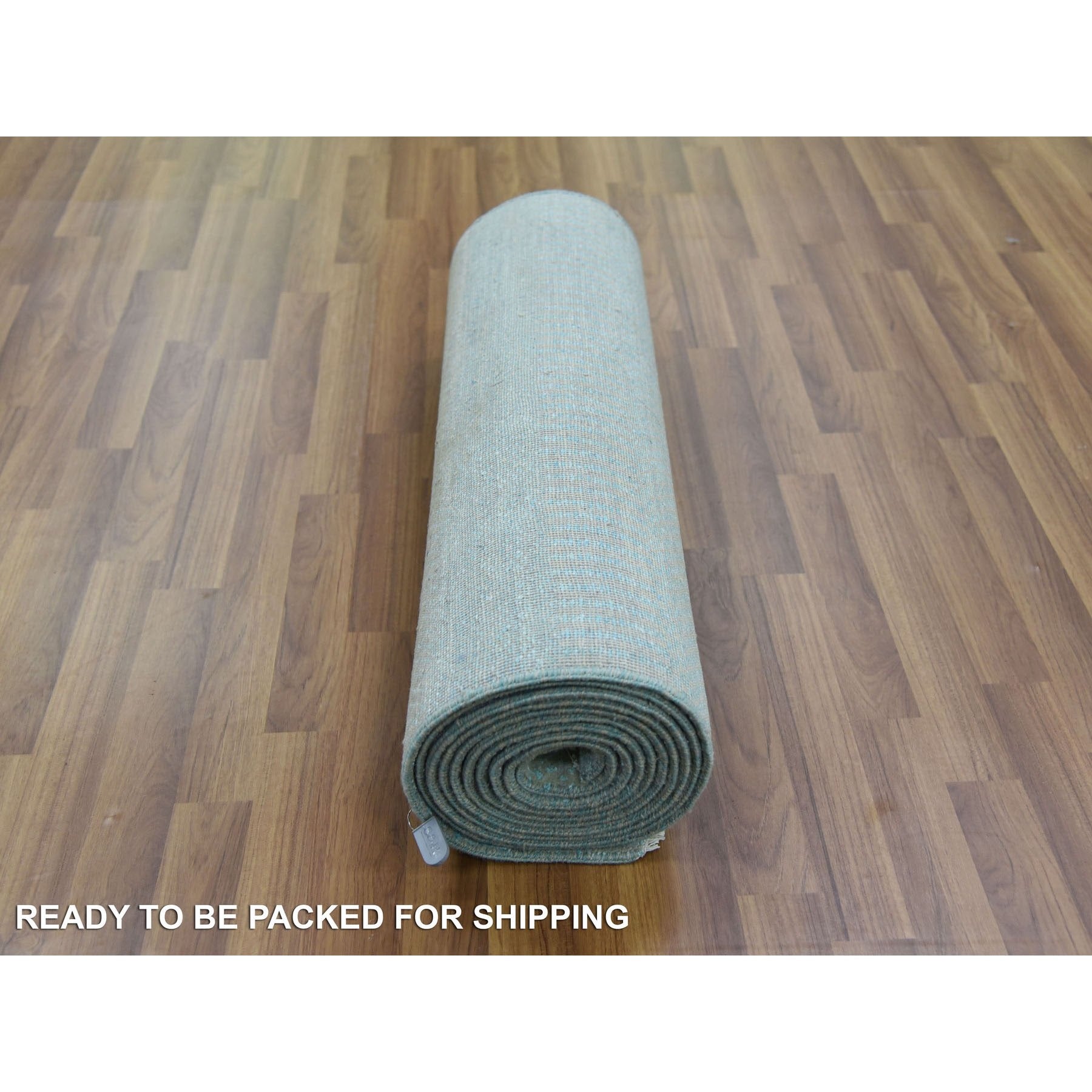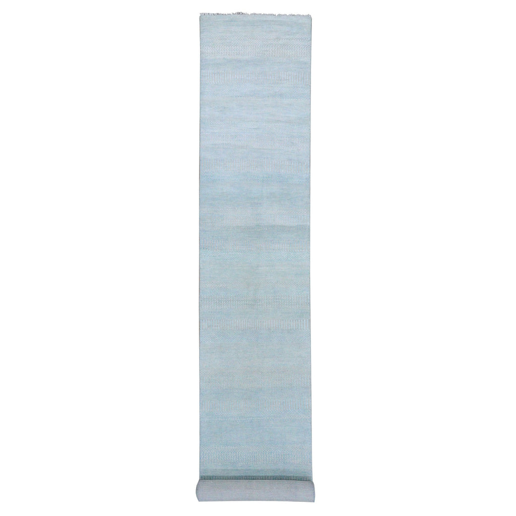 2'8"x15' Light Blue, Hand Knotted Modern Grass Design Gabbeh, Densely Woven Wool And Silk, Xl Runner Oriental Rug FWR474912