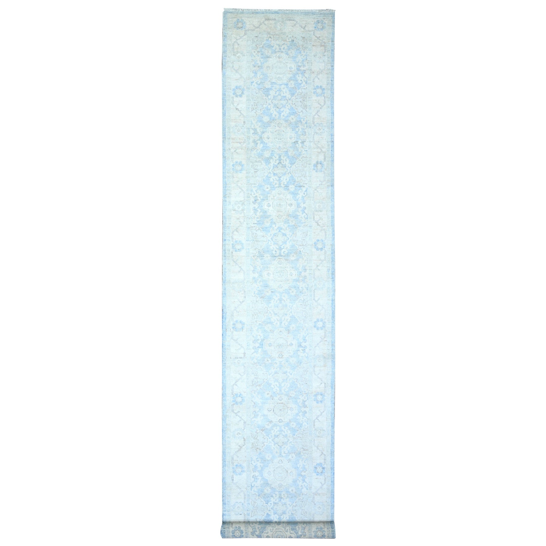 2'8"x16'2" Carolina Blue, Organic Wool Hand Knotted, Vegetable Dyes Finer Peshawar With Faded Colors, Xl Runner Oriental Rug FWR449724