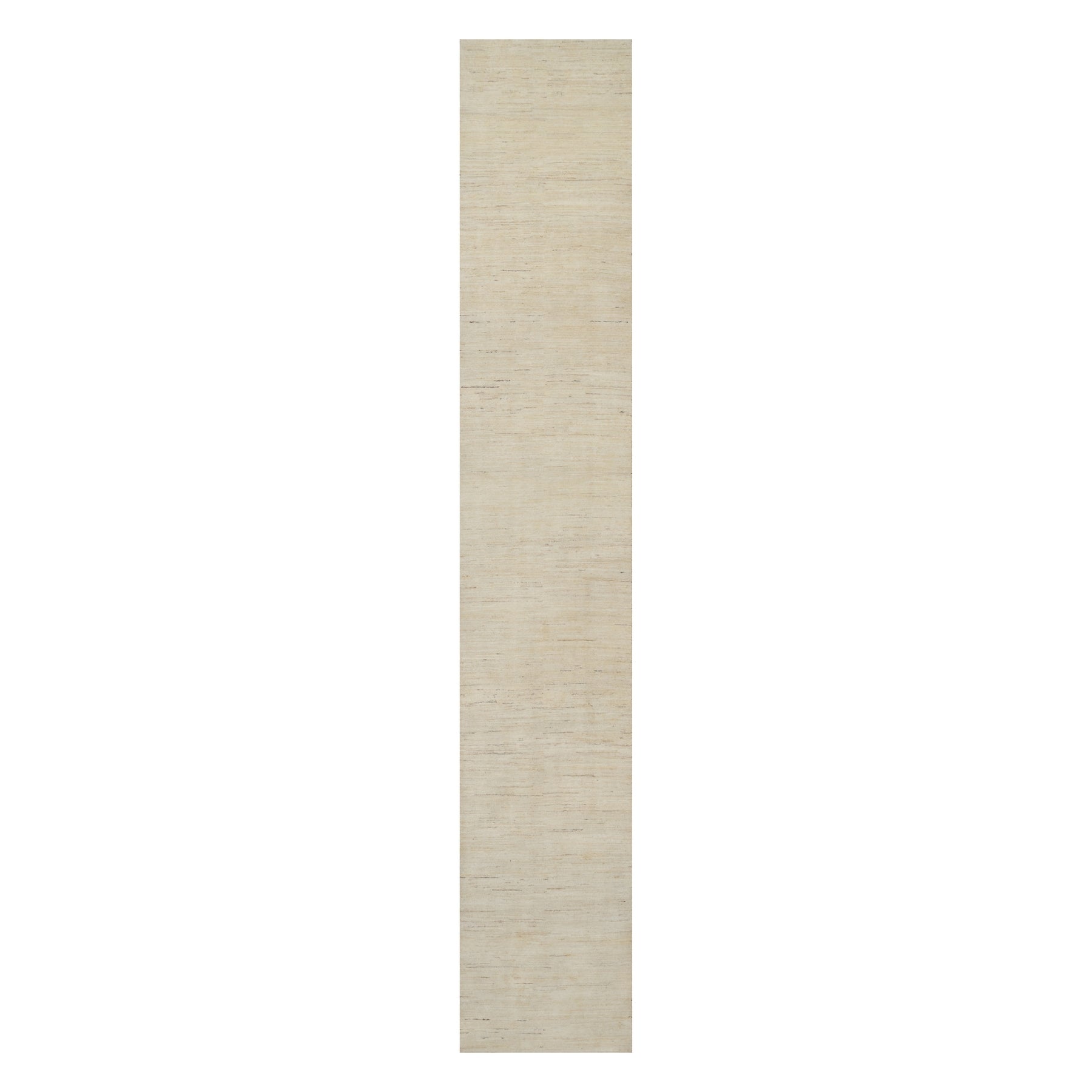 2'8"x16' Bone White, Lori Buft Gabbeh, Modern, Plain Design, Thick And Plush, Pure Wool, Hand Knotted, Xl Runner, Oriental Rug FWR547824