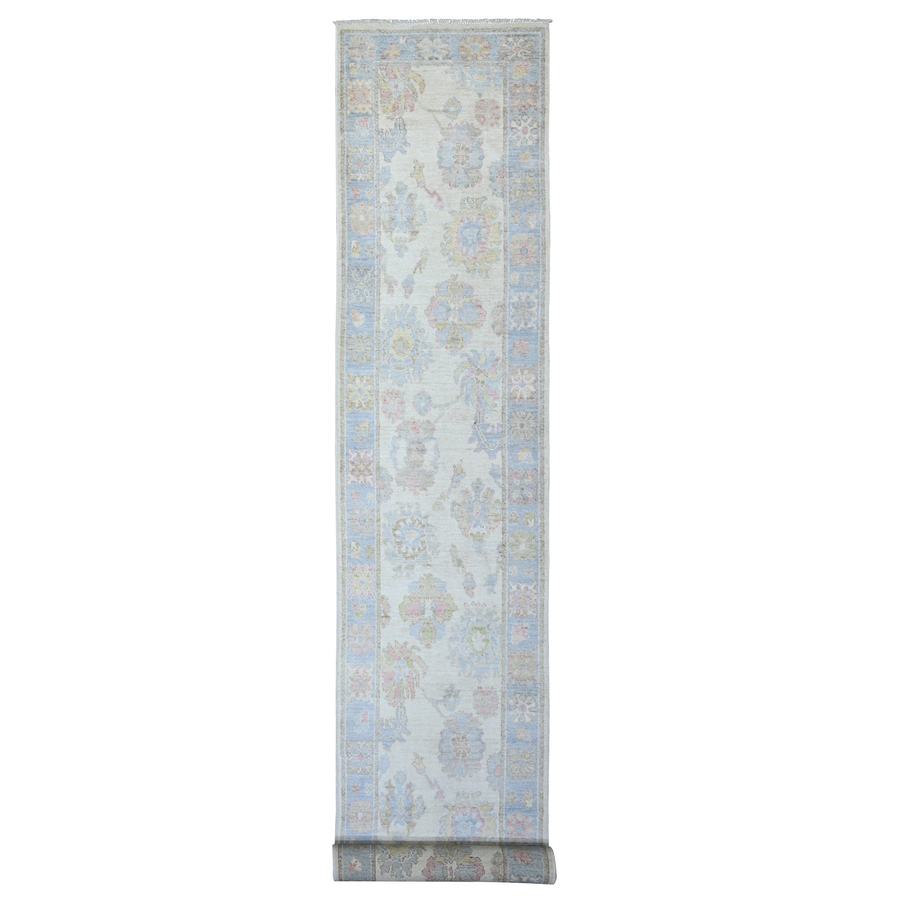 2'8"x19'1" Ivory, 100% Wool Hand Knotted, Afghan Angora Oushak With Floral Motif Natural Dyes, Oversized Xl Runner Oriental Rug FWR441888
