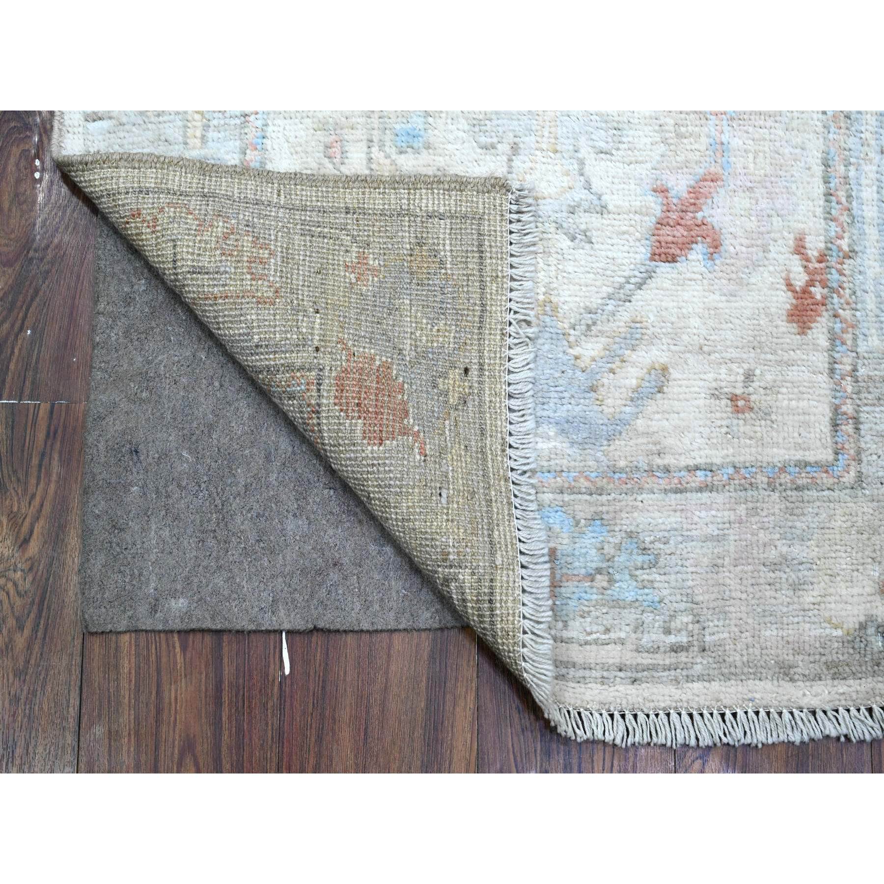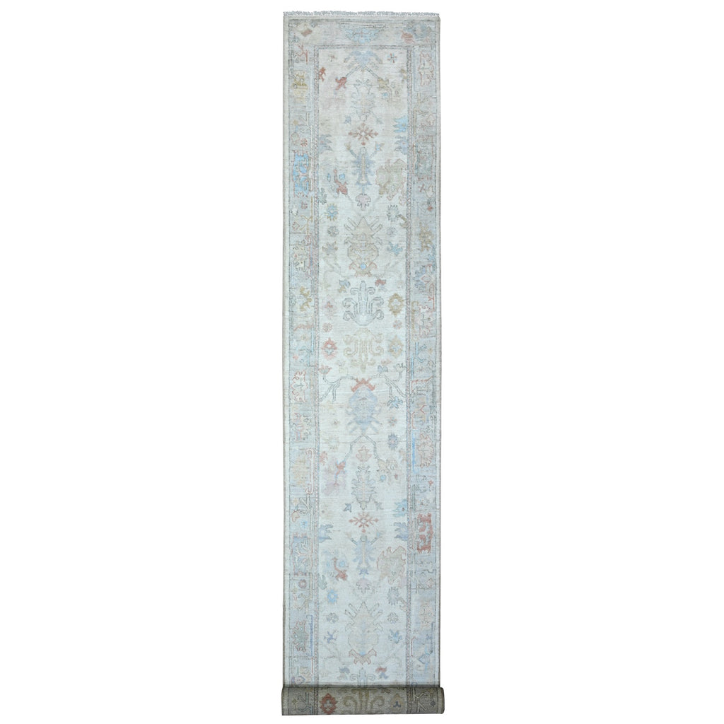 2'8"x19'2" Platinum White, Afghan Angora Oushak, Hand Knotted, Wool Weft, Natural Dyes, Village Motifs All Over Design, Oversized Runner Oriental Rug FWR538062