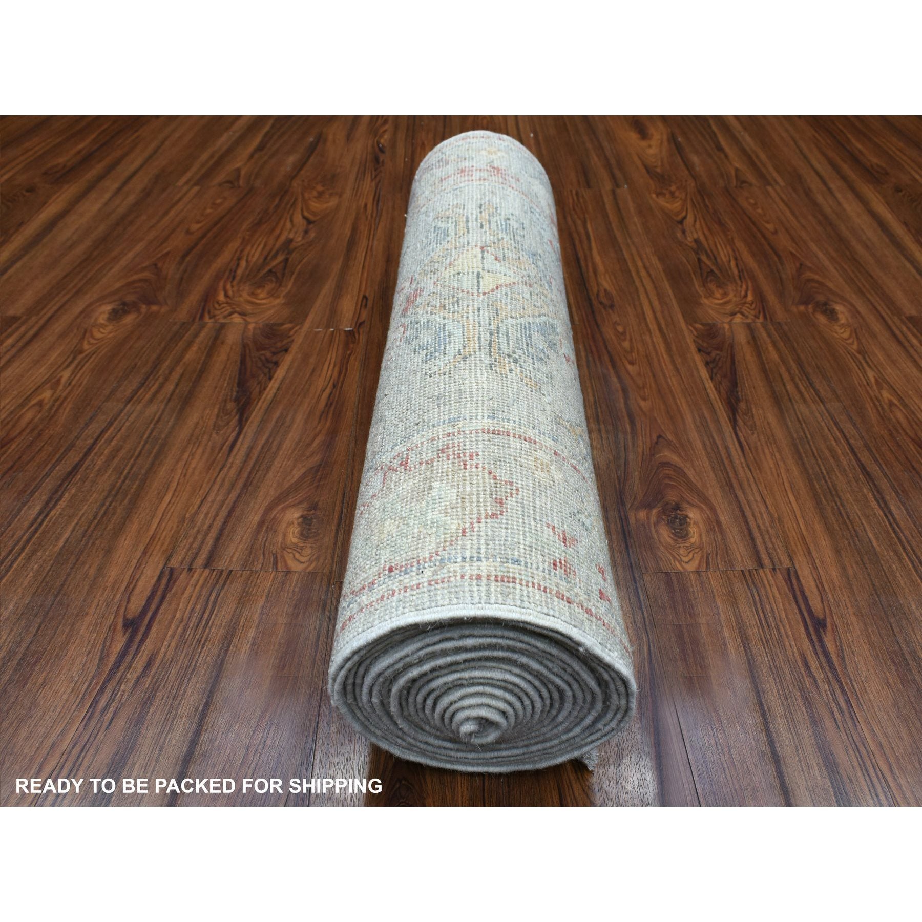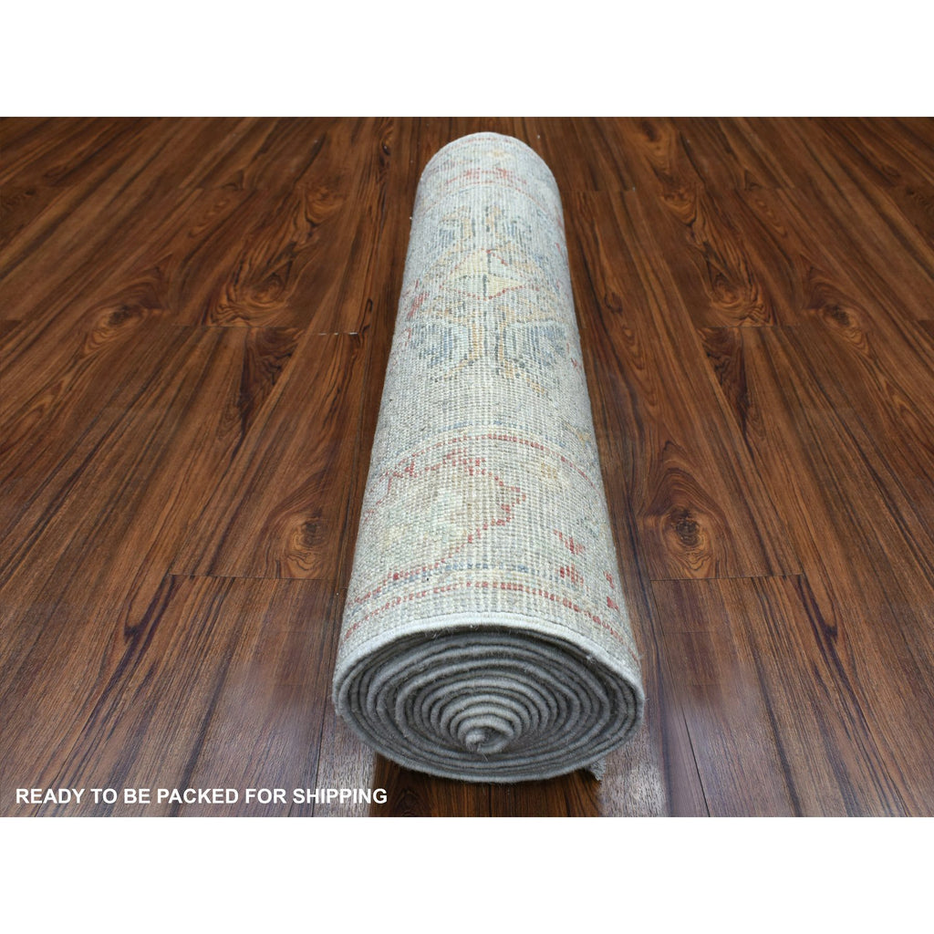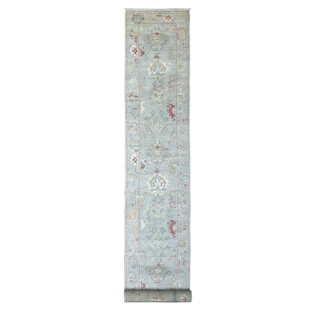 2'8"x19'6" Hand Knotted Gray Afghan Angora Oushak Xl Runner With Geometric Medallions Design And Soft Wool Oriental Rug FWR420300