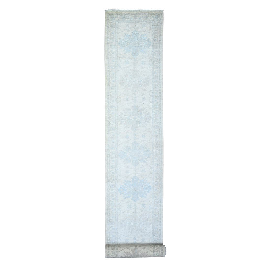 2'8"x20'5" White Wash Peshawar With Large Medallions Natural Dyes, Pure Wool Hand Knotted, Xl Runner Oriental Rug FWR442374