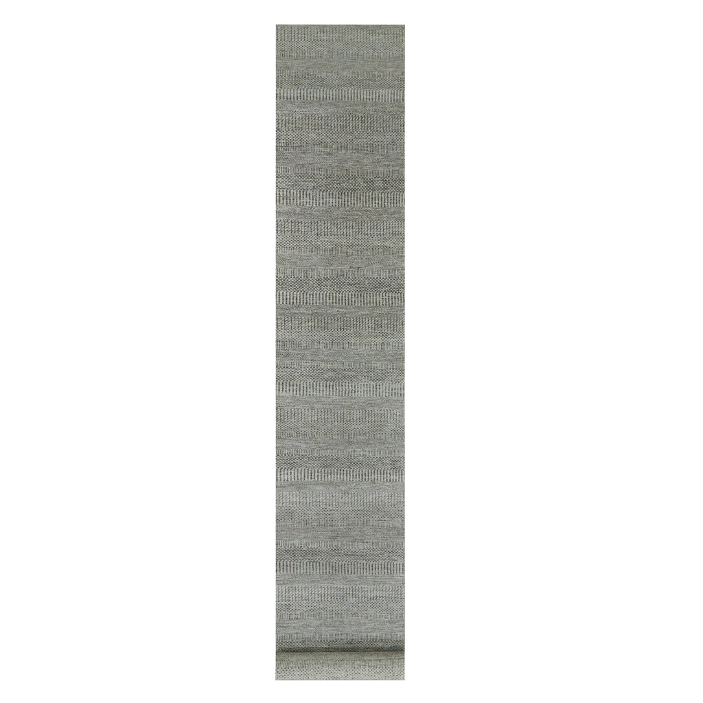 2'8"x20' Owl Gray, Hand Knotted, Tone On Tone, Modern Grass Design, Xl Runner 100% Undyed Wool Oriental Rug FWR478218