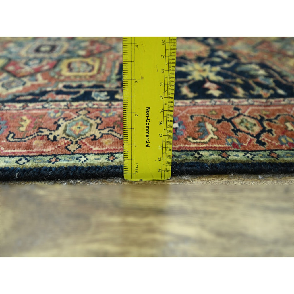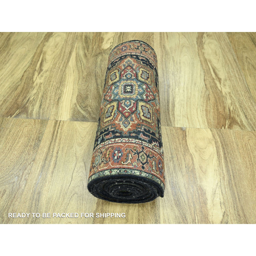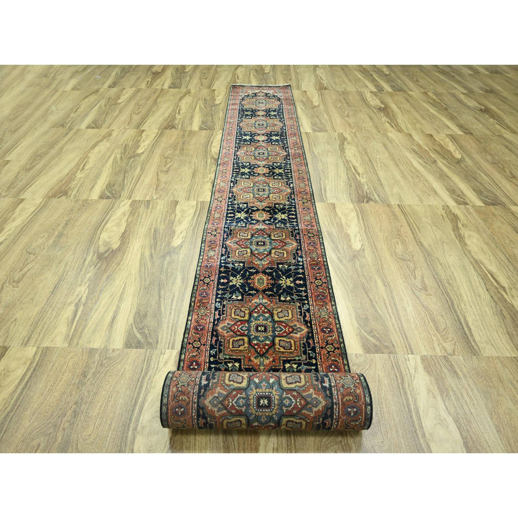 2'8"x21'8" Midnight Blue, Heriz With Geometric Medallions Design, Natural Dyes, Hand Knotted, Soft Pile, Hand Spun New Zealand Wool, Xl Runner, Oriental Rug FWR457392