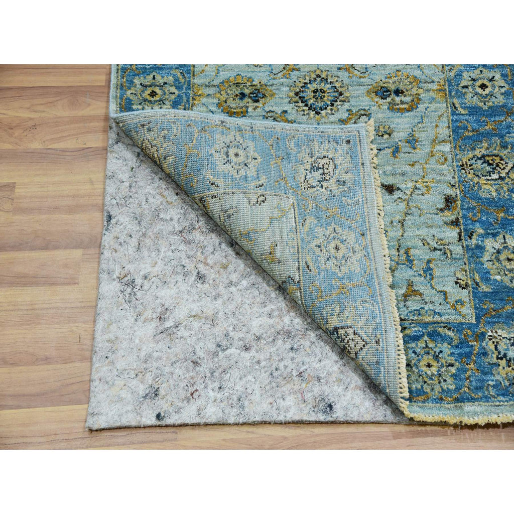 2'8"x22' Aqua Frost Blue, Extra Soft Wool, Agra, Shah Abbas With Floral Motifs, Hand Knotted, Vegetable Dyes Denser Weave, Oriental Xl Runner Rug FWR456312