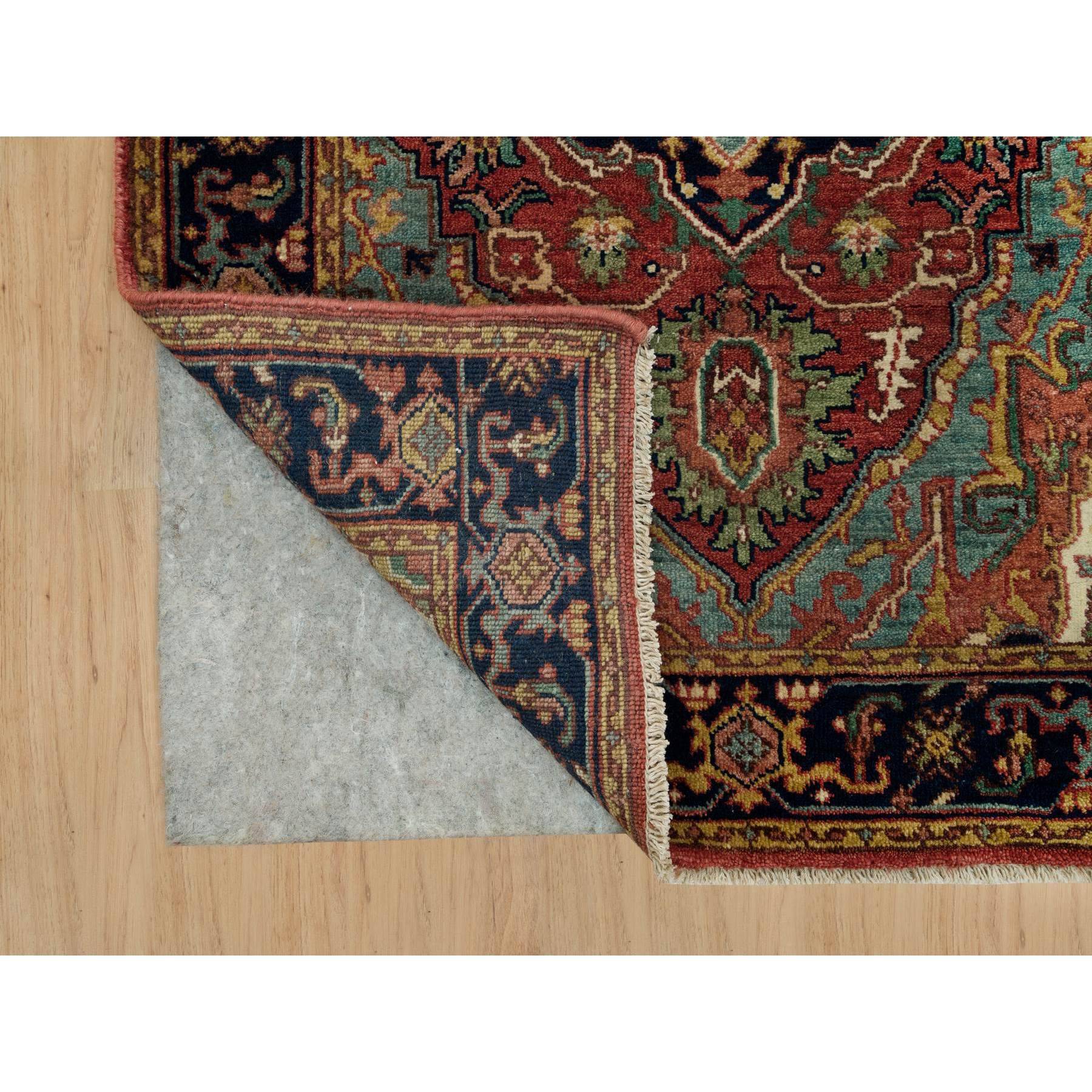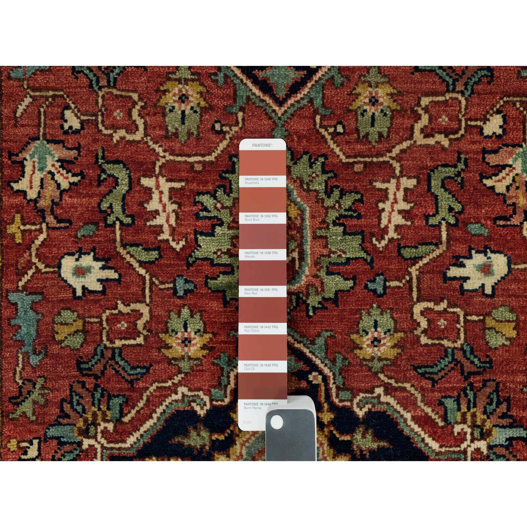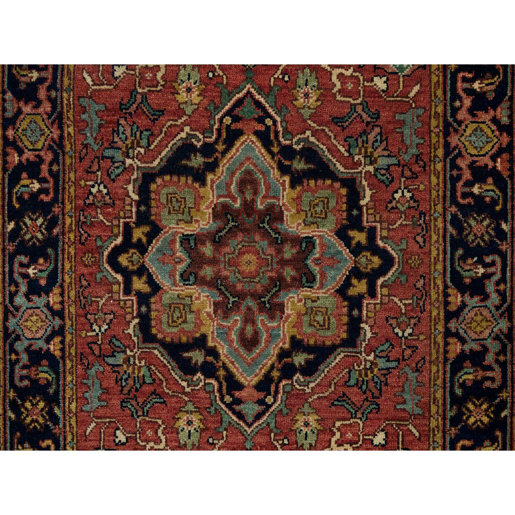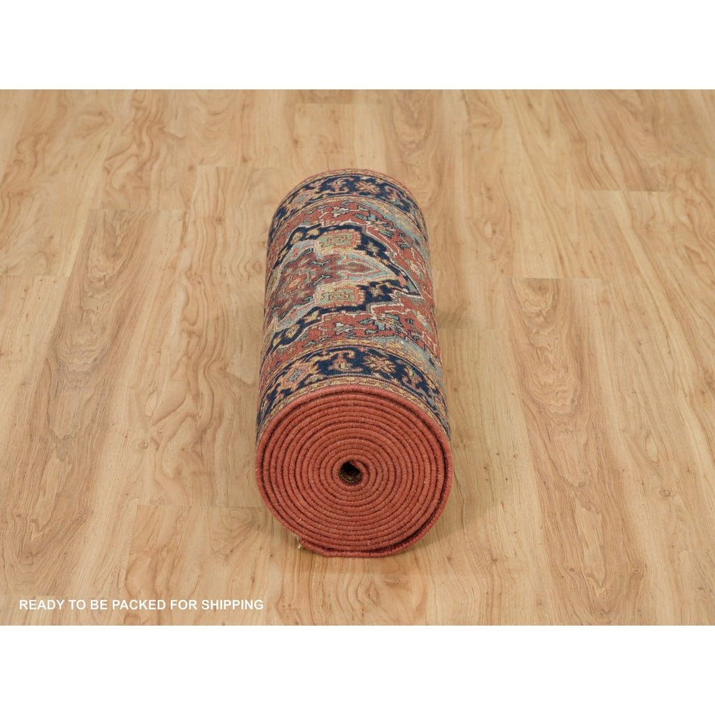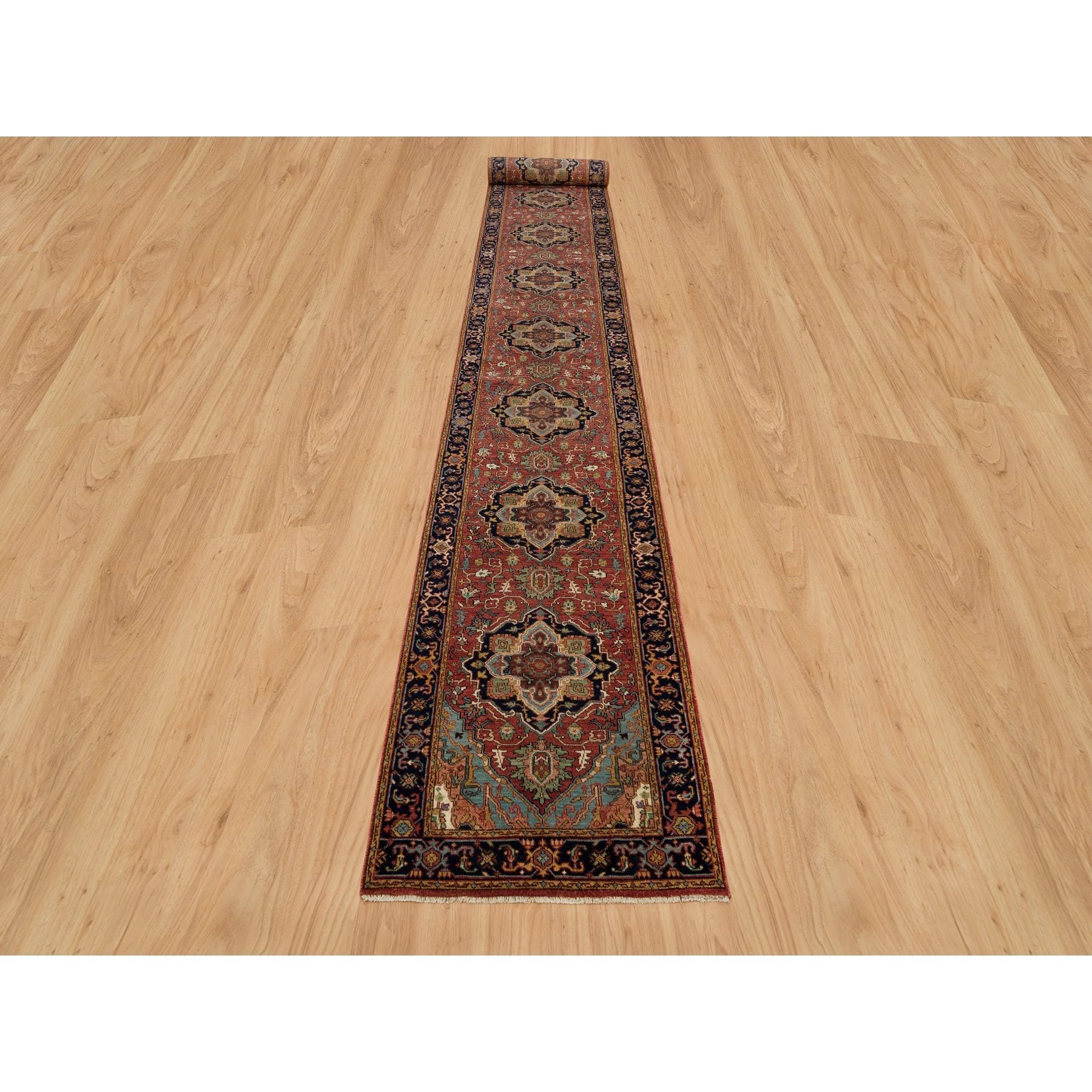 2'8"x22' Carmine Red And Dallas Cowboys Blue, Vegetable Dyes, Antiqued Heriz Re-creation With Geometric Medallions, Extra Soft Wool, Soft And Lush Pile, Xl Runner Oriental Hand Knotted Rug FWR541620