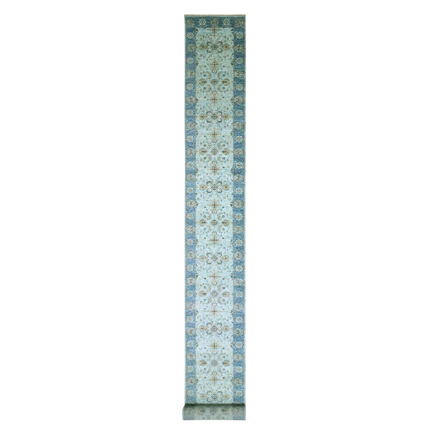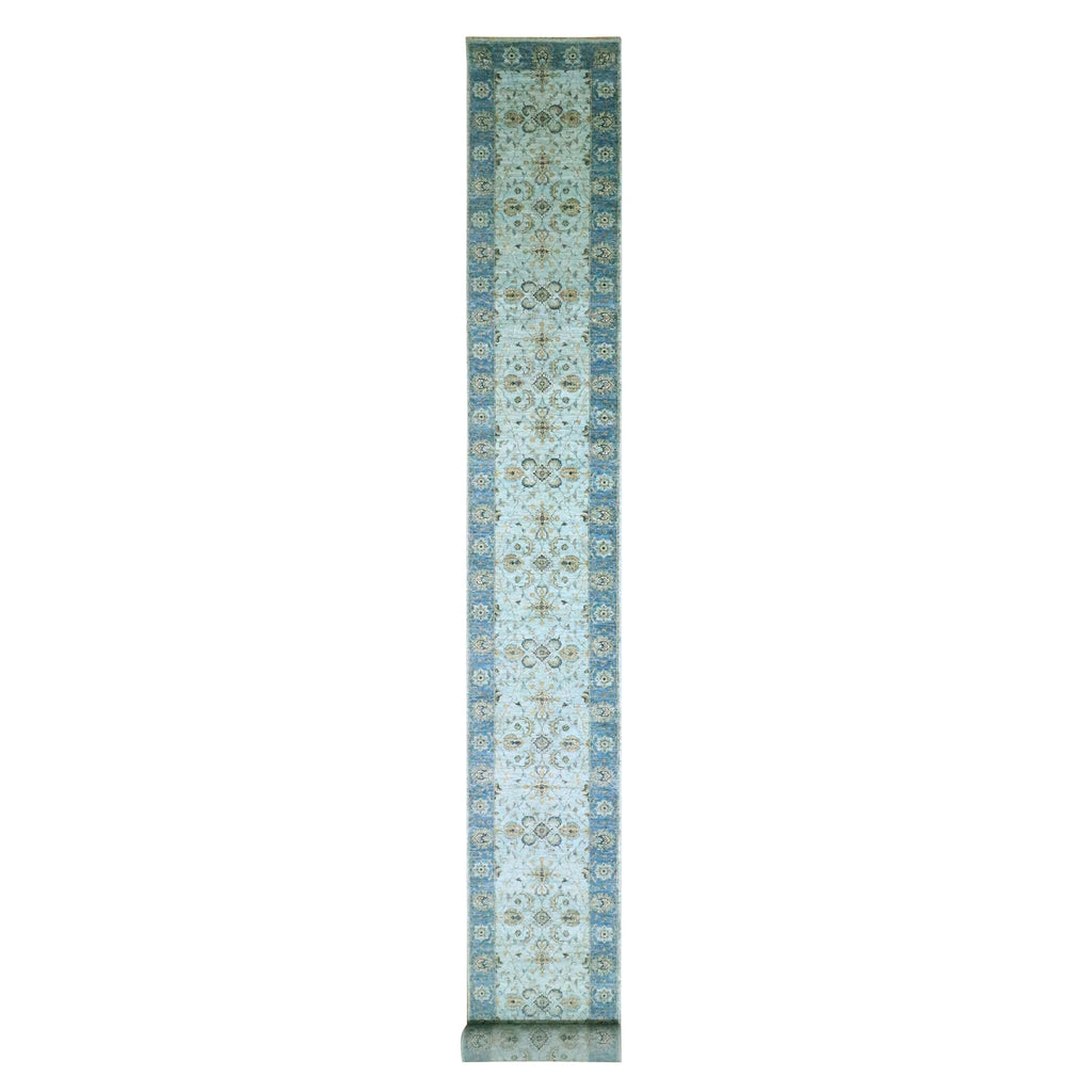 2'8"x24'1" Ultramarine Blue, Agra, All Over Shah Abbas Flower Design, Natural Dyes, Densely Woven, Pure Wool, Hand Knotted, Xl Runner, Oriental Rug FWR456756