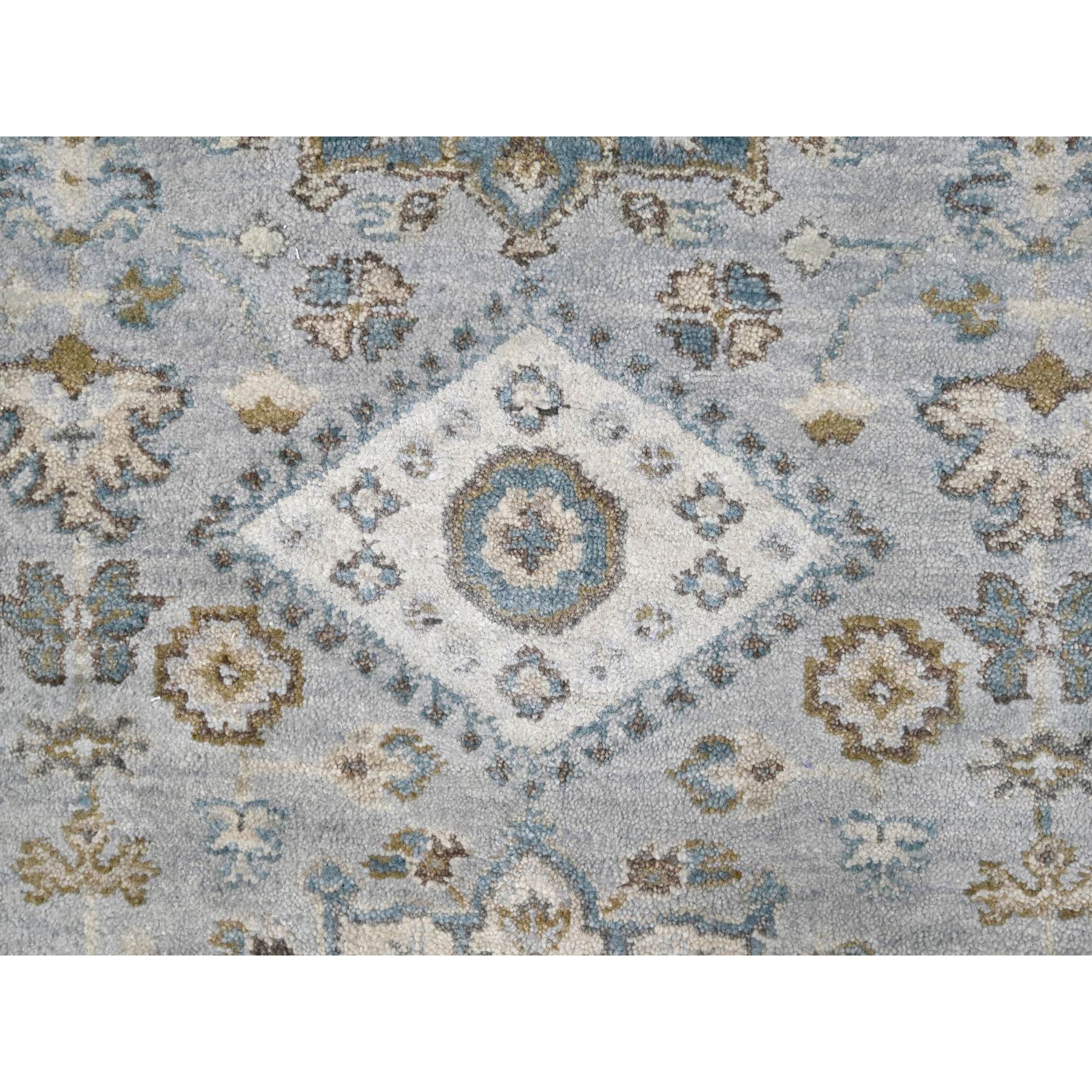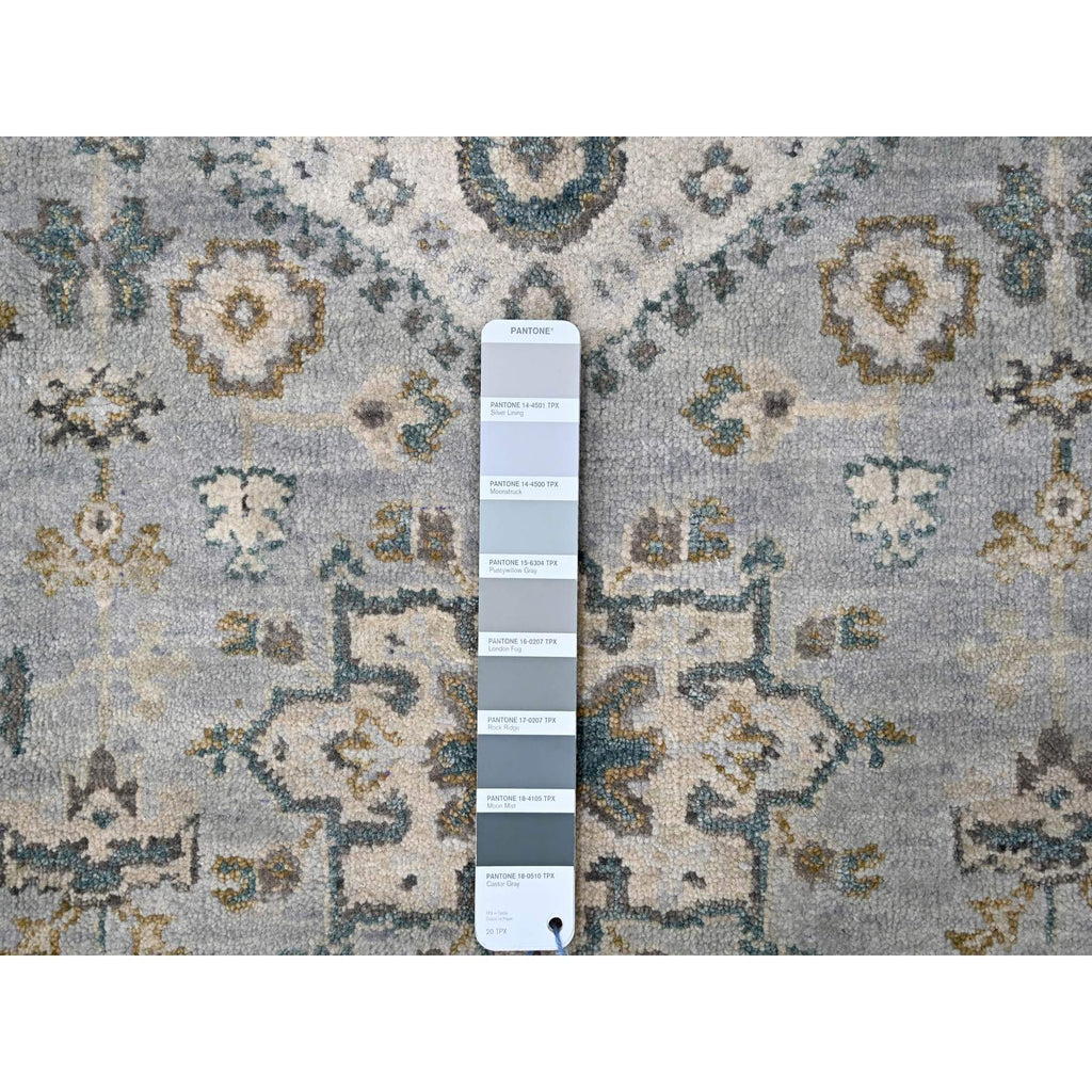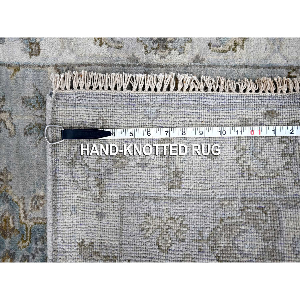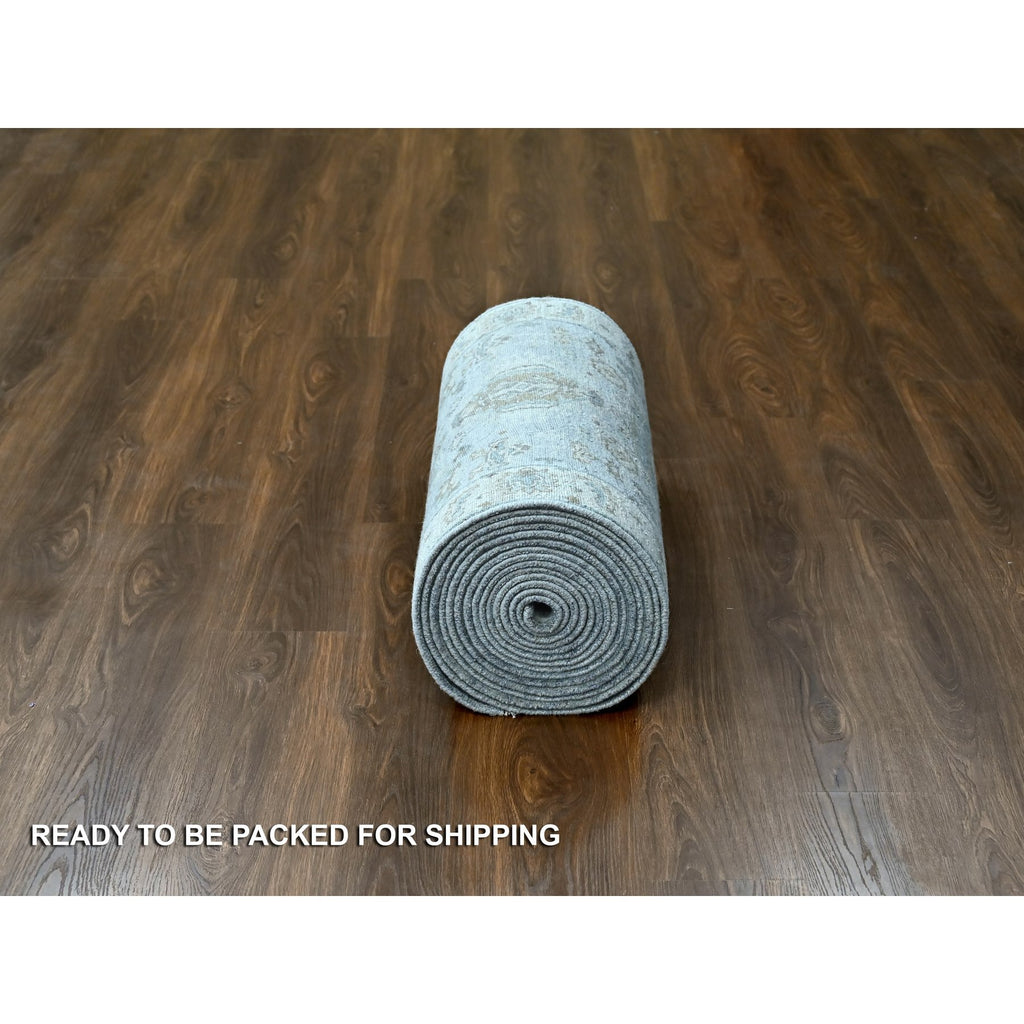 2'8"x27'9" Rock Ridge Gray With Alabaster White Border, Soft Pile And Velvety Wool, Natural Dyes, Hand Knotted Karajeh Geometric Design, Oriental Xl Runner Rug FWR509892