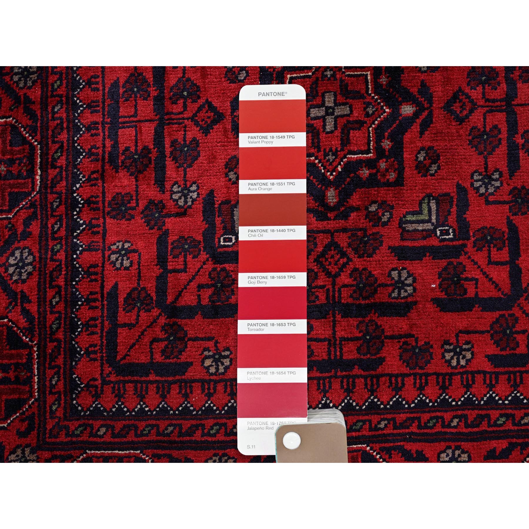 2'8"x4' Berry Red, Afghan Khamyab With Geometric Design, Hand Knotted, Soft Wool, Natural Dyes, Mat, Sample, Oriental Rug FWR4206