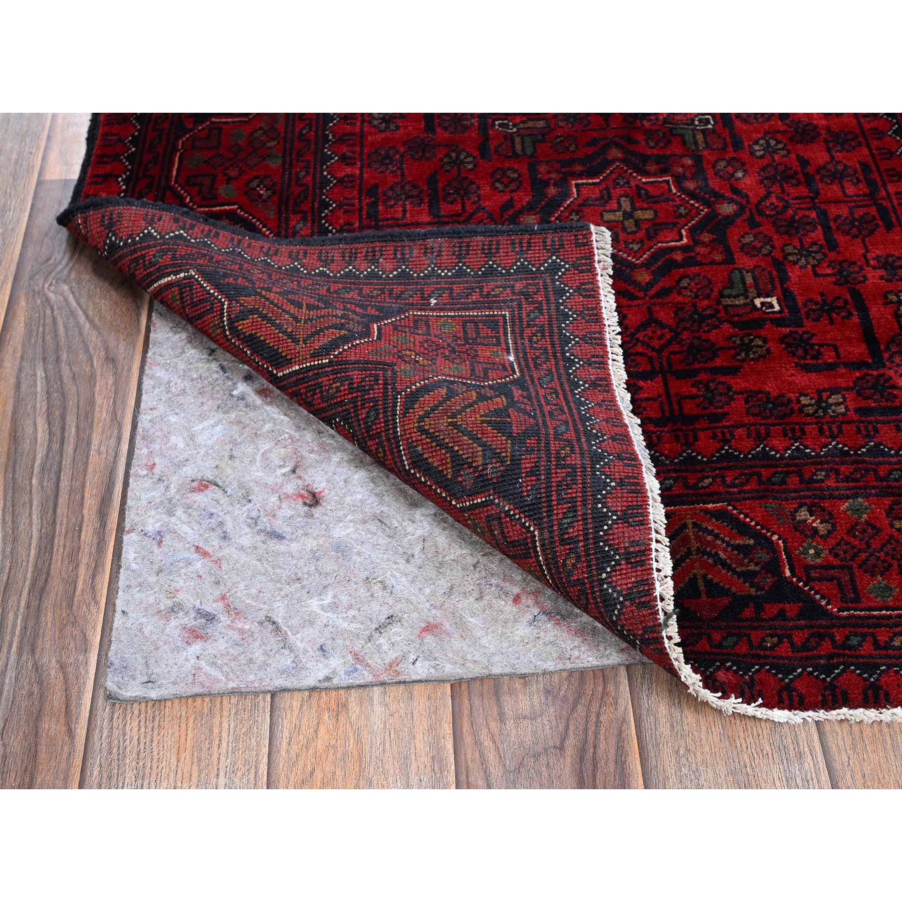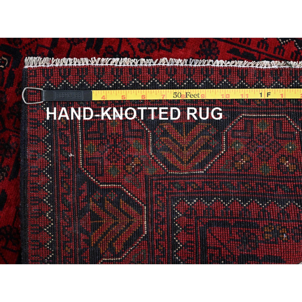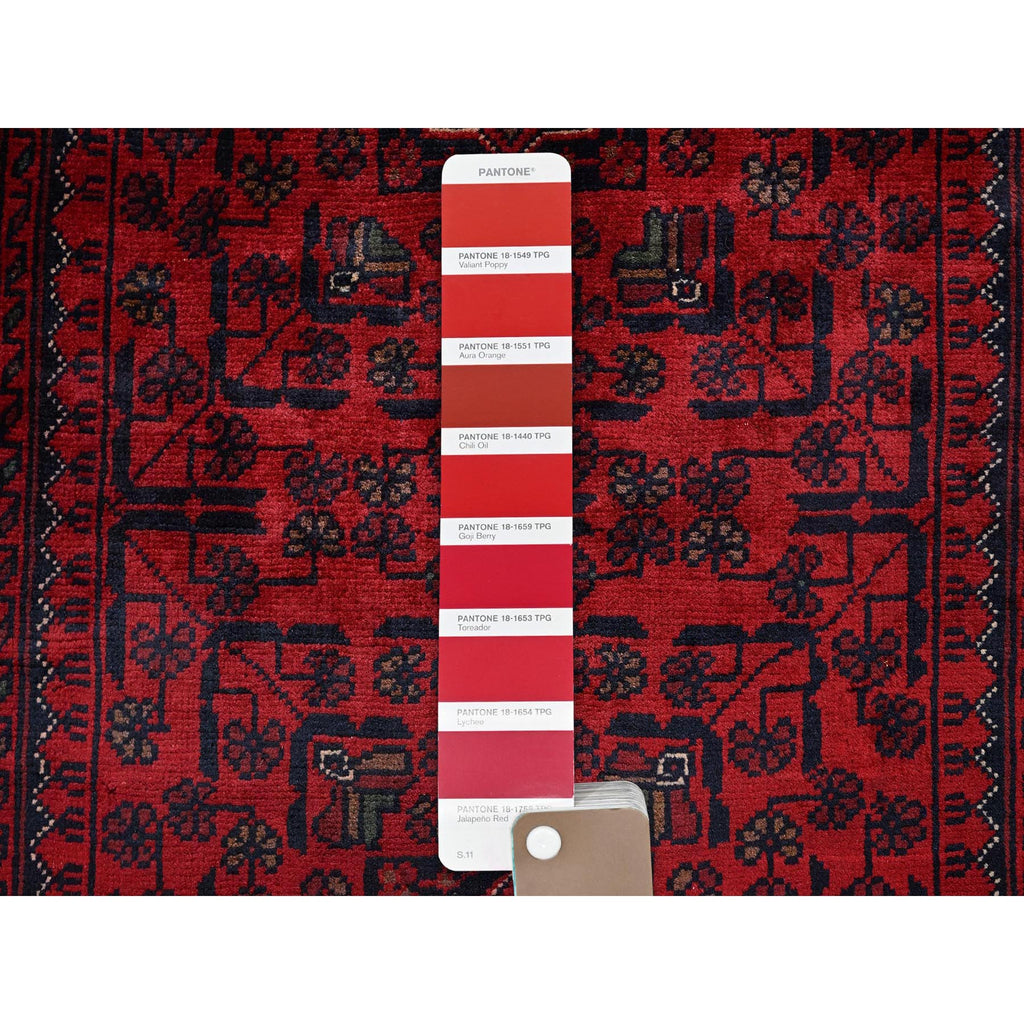 2'8"x4' Berry Red, Afghan Khamyab With Tribal Design, Soft And Shiny Wool, Vegetable Dyes, Hand Knotted, Mat, Sample, Oriental Rug FWR4356
