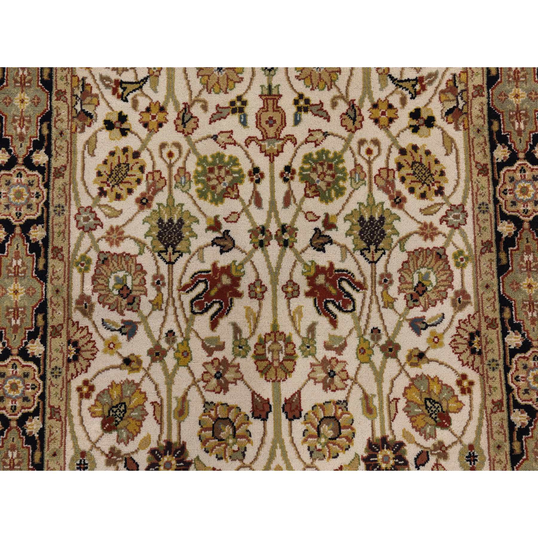 2'8"x6'1" Chiffon White, Hand Knotted, 300 Kpsi, Hand Spun New Zealand Luxurious Wool, Persian Tabriz Vase Design, Runner, Oriental Rug FWR470178