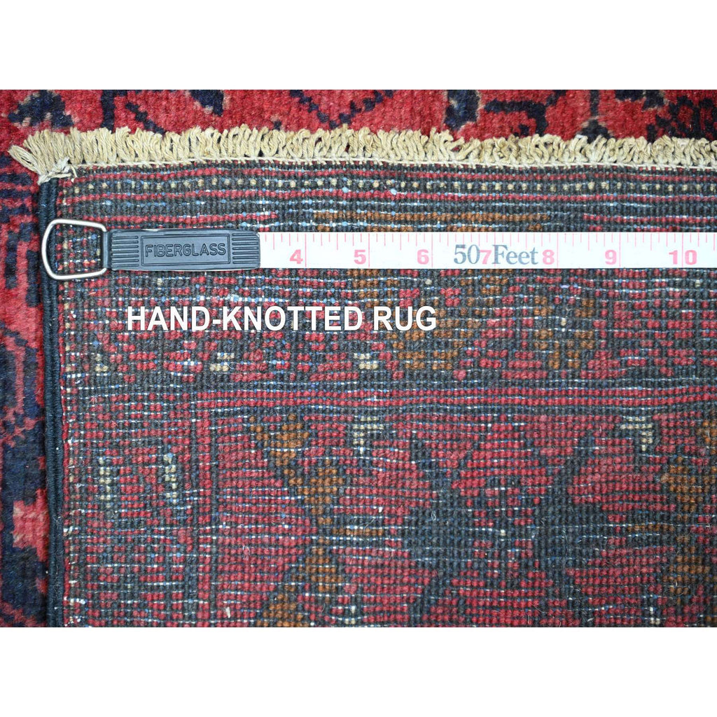 2'8"x6'2" Auburn Red, Hand Knotted, Afghan Andkhoy With Geometric Design, Soft Wool, Natural Dyes, Runner, Oriental Rug FWR124338