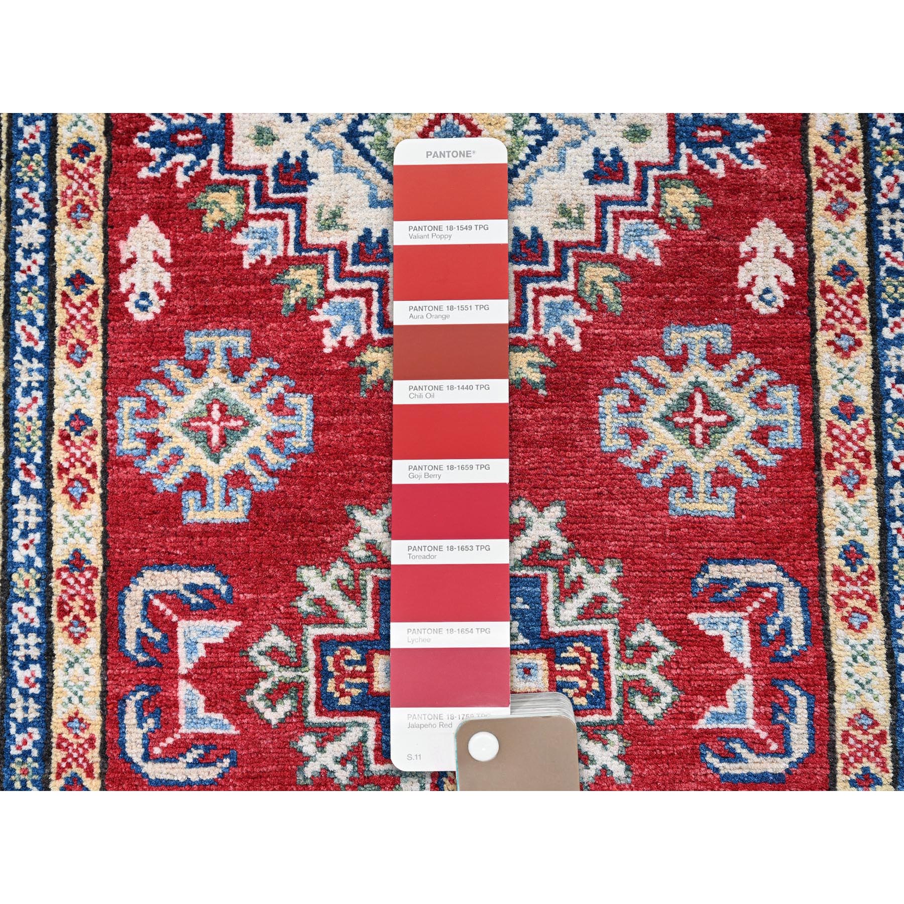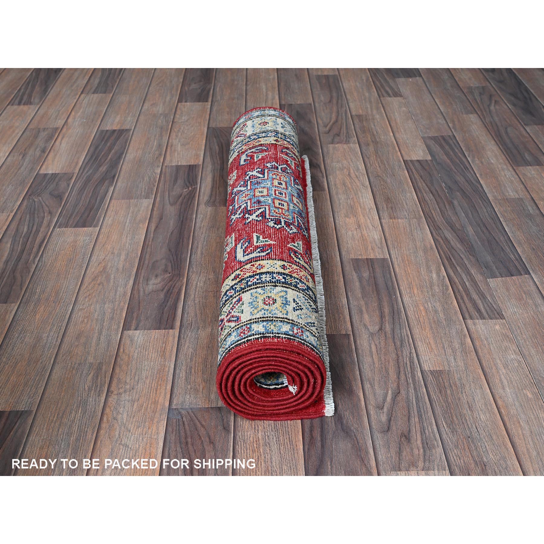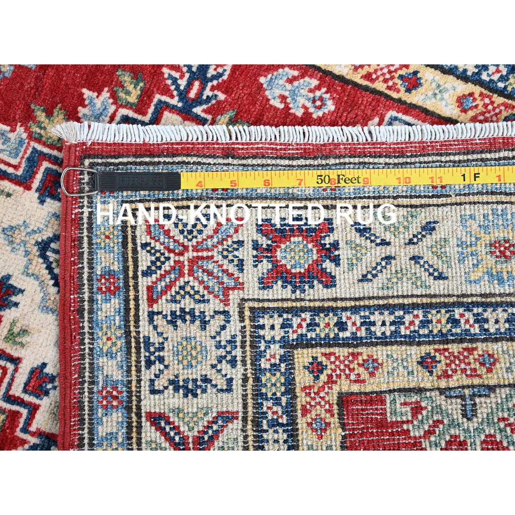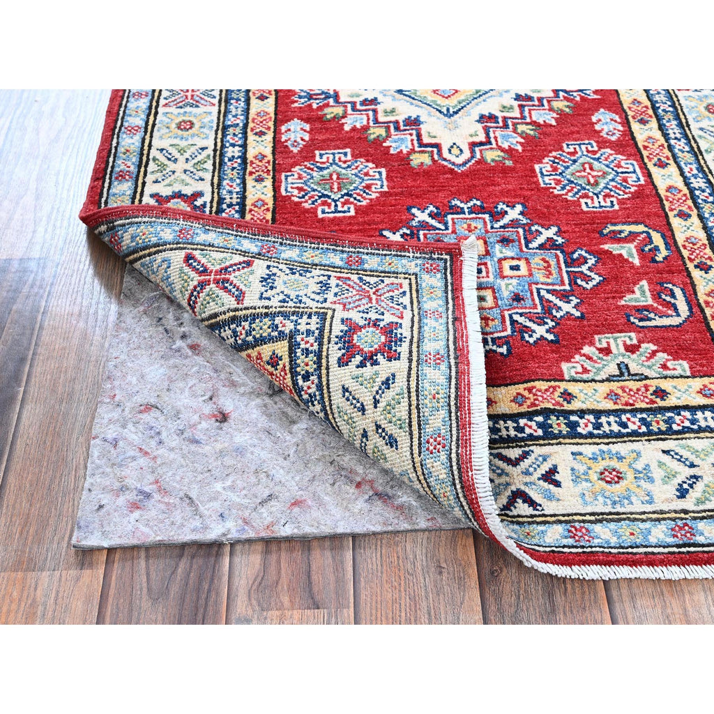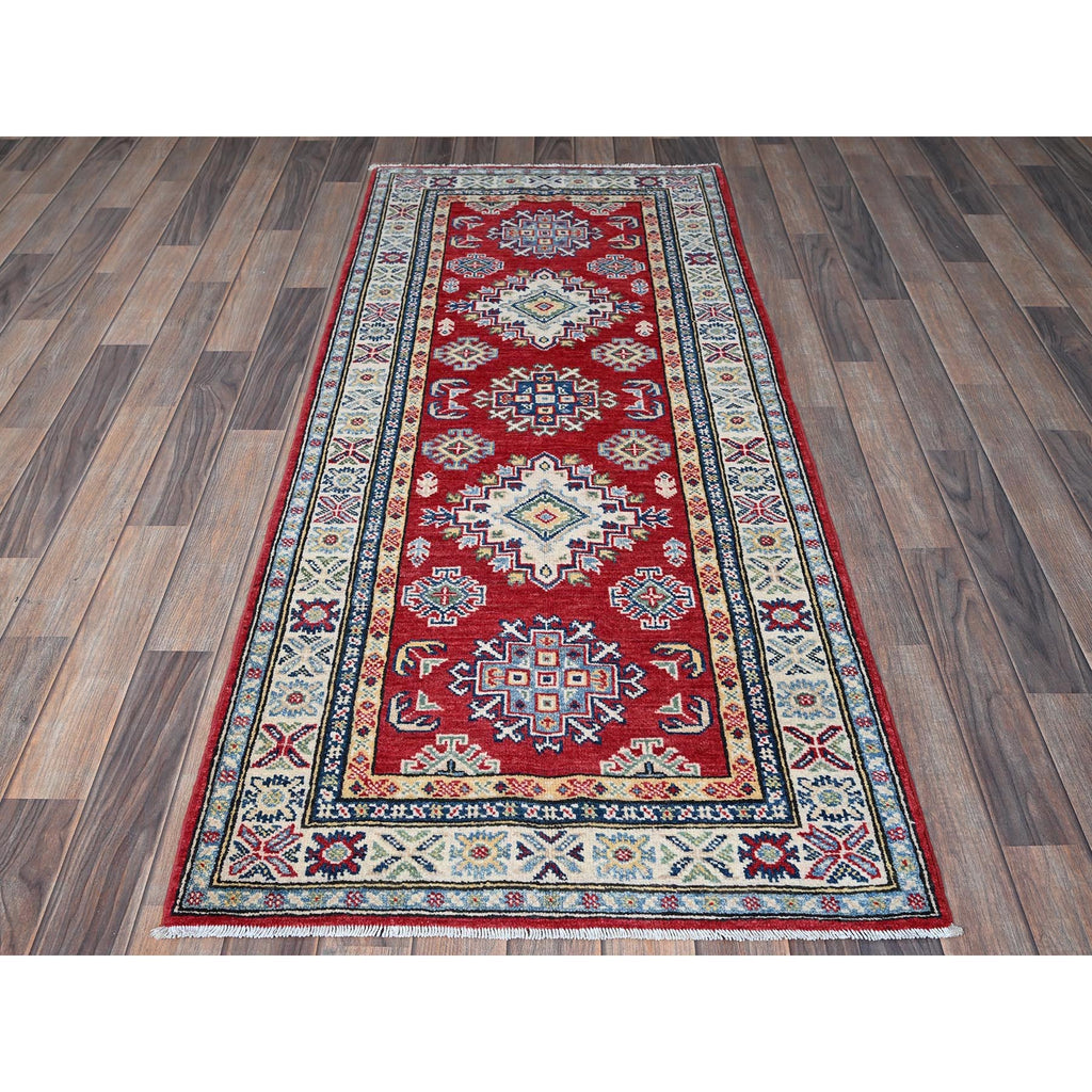 2'8"x6'4" Berry Red, Kazak With Geometric Medallions Design, Hand Knotted, Soft And Velvety Wool, Vegetable Dyes, Denser Weave, Runner, Oriental Rug FWR2664