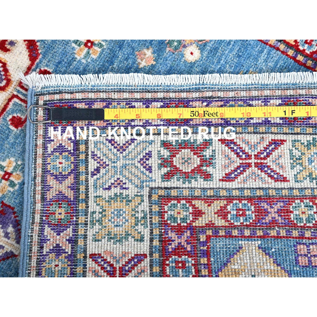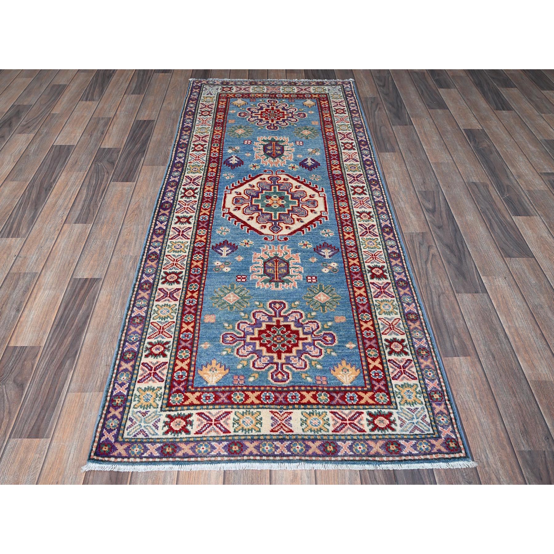 2'8"x6'4" Maya Blue, Kazak With Tribal Medallion Design, Soft And Shiny Wool, Hand Knotted, Vegetable Dyes, Denser Weave, Runner, Oriental Rug FWR2676