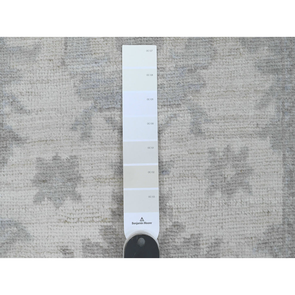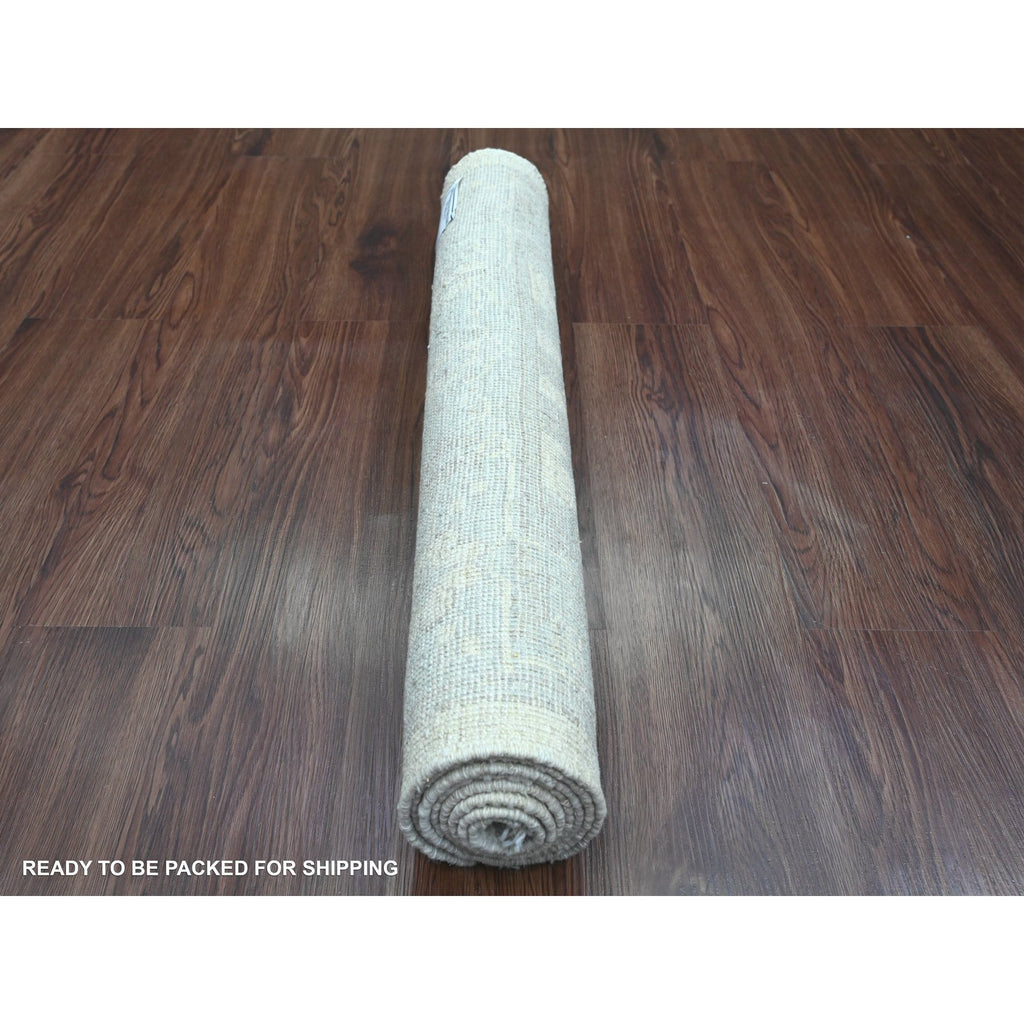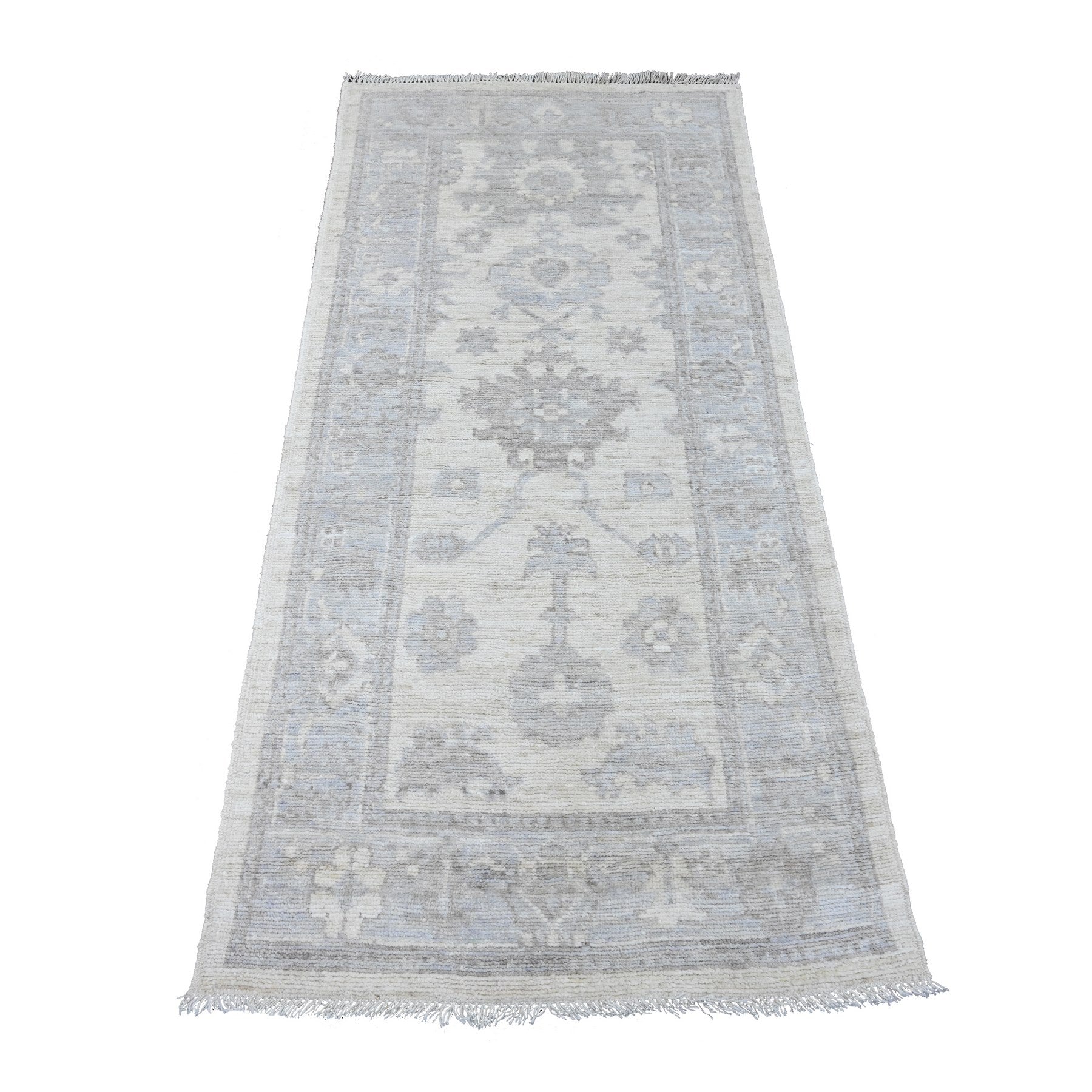 2'8"x6' Vista White, Natural Dyes, Afghan Angora Oushak With Floral Design, 100% Wool, Hand Knotted, Runner, Oriental Rug FWR539256